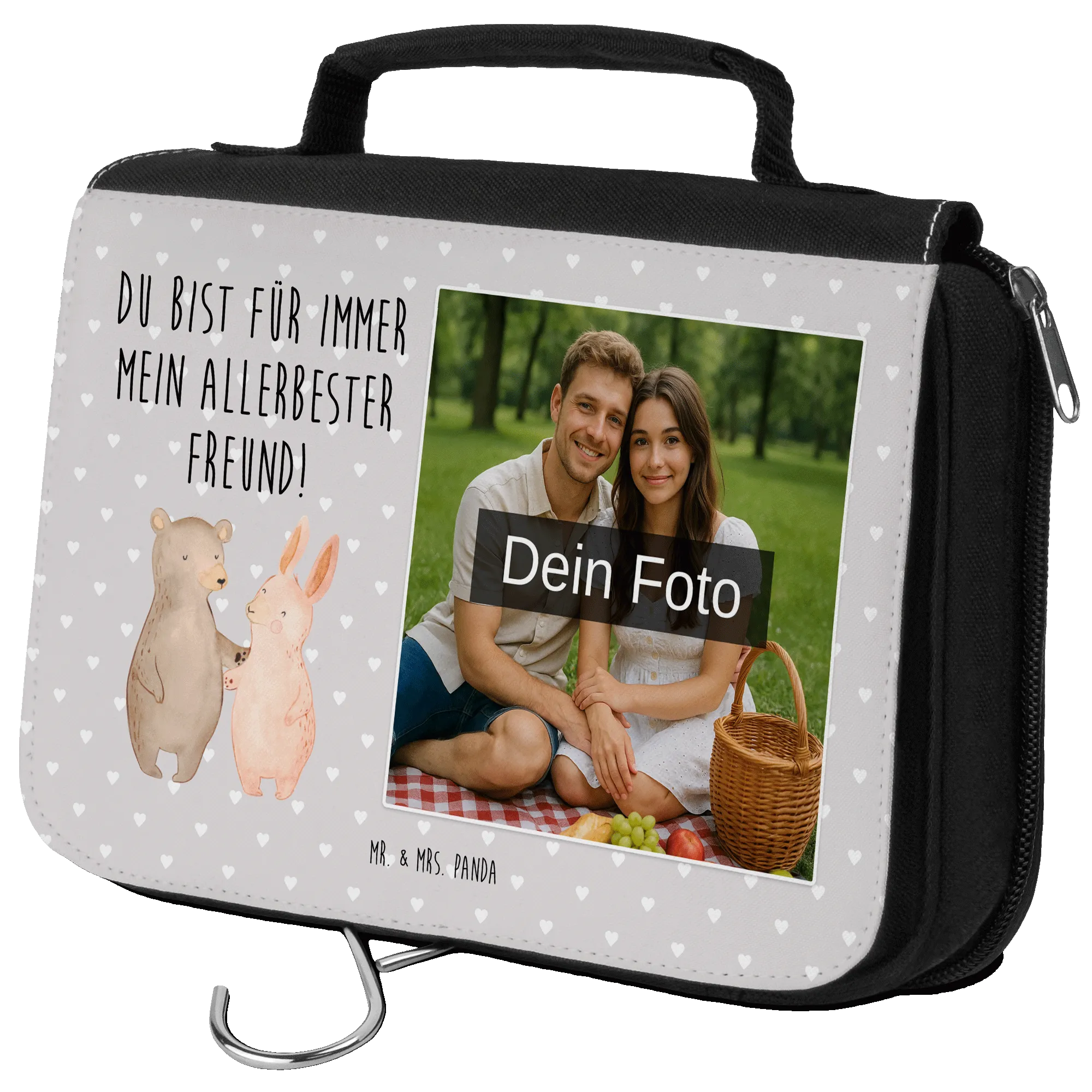 🐼 Personalised Photo Toiletry Bag, printed with cute motifs and your photo; perfect gift.