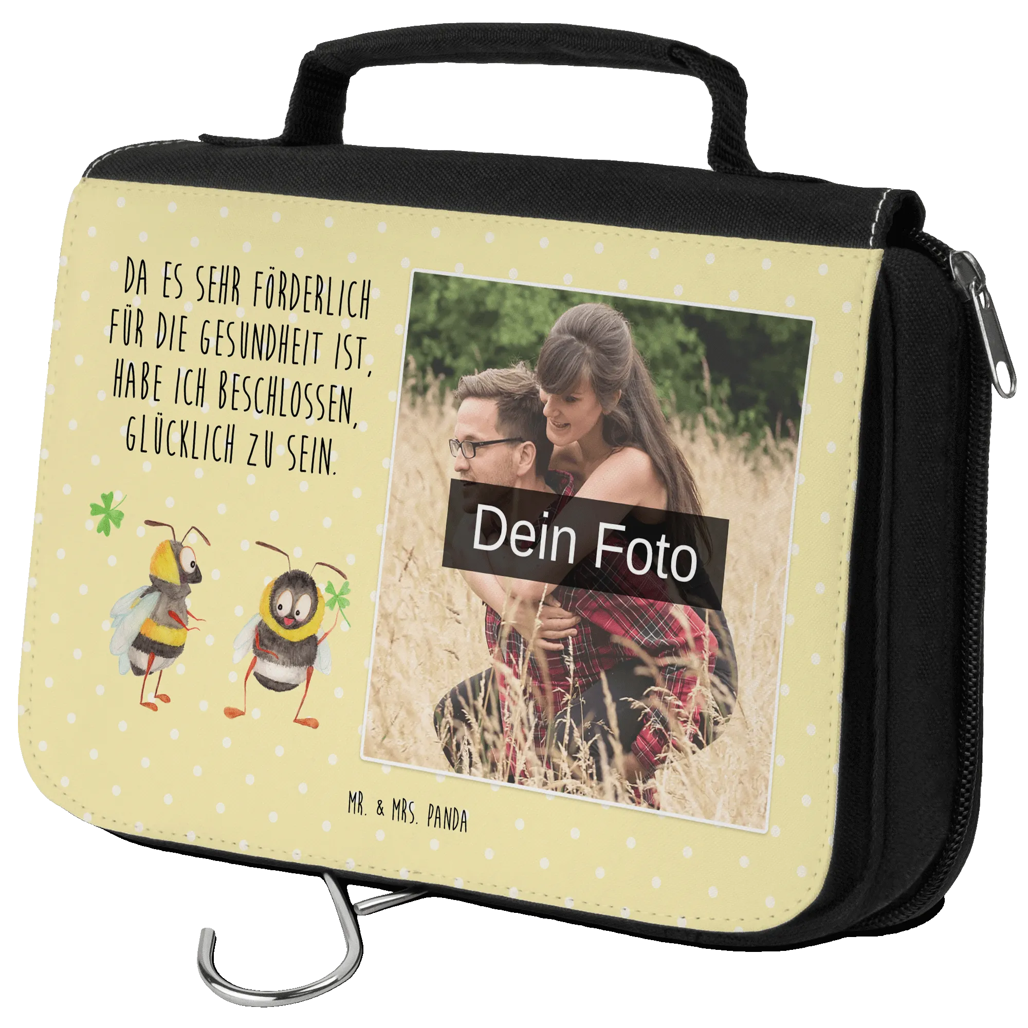 🐼 Photo toiletry pouch with cute Mr. & Mrs. Panda motifs and your photo; unisex, durable and water-repellent.