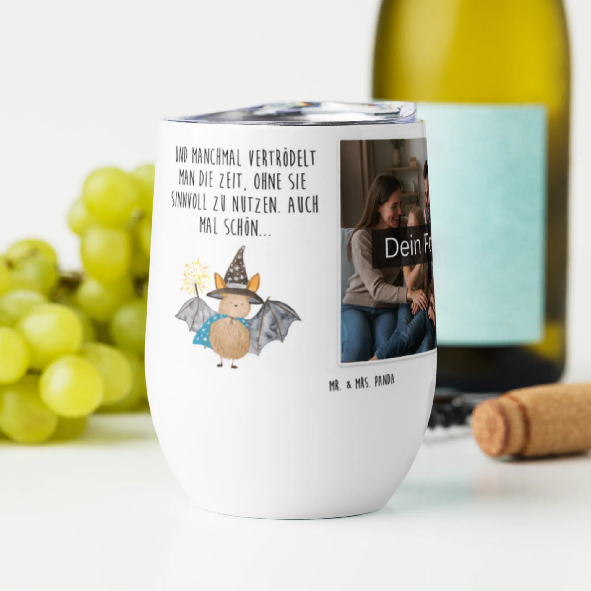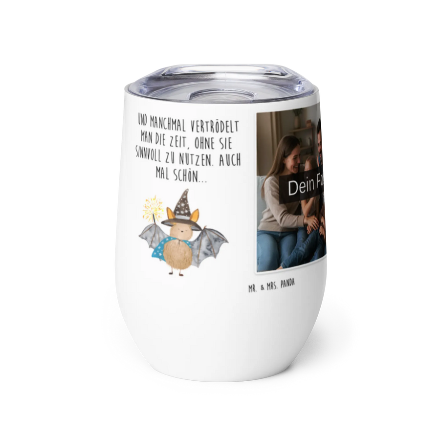 🐼 PHOTO WINE GLASS MUG: 375 ml insulated stainless steel, personalized with your photo and sayings.
