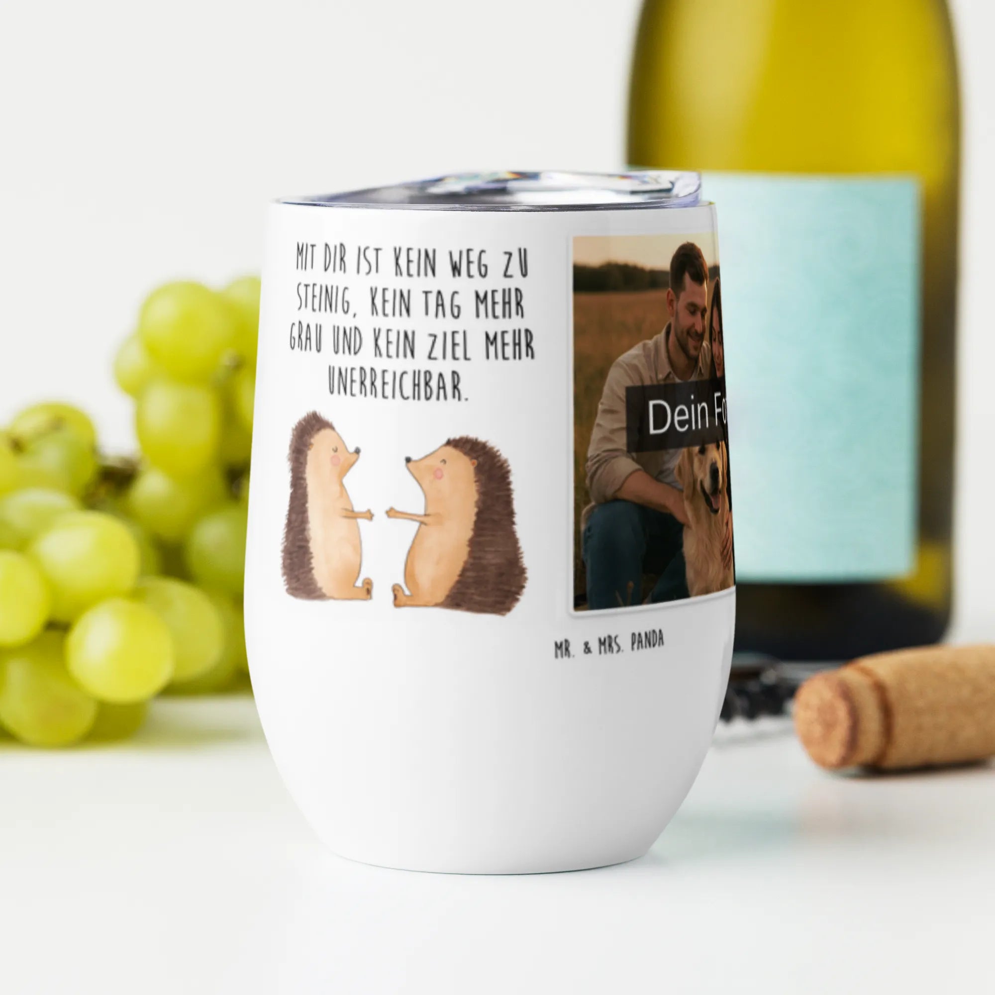 Personalized Photo Wine Mug Hedgehogs in love