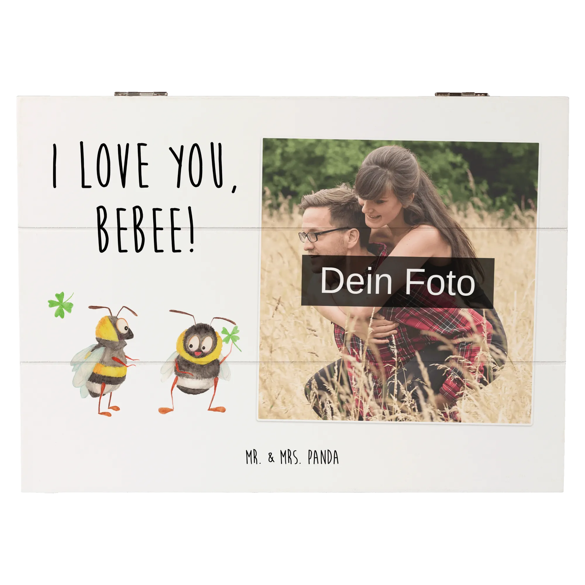 Personalized Photo Wooden Box bees Pair – Mr. & Mrs. Panda