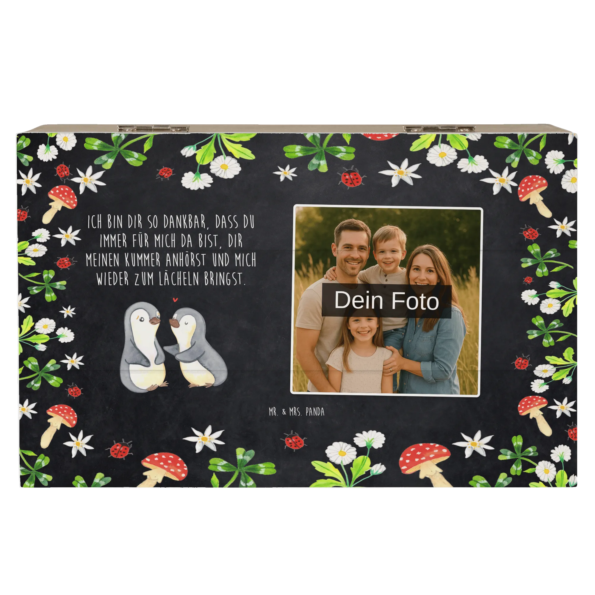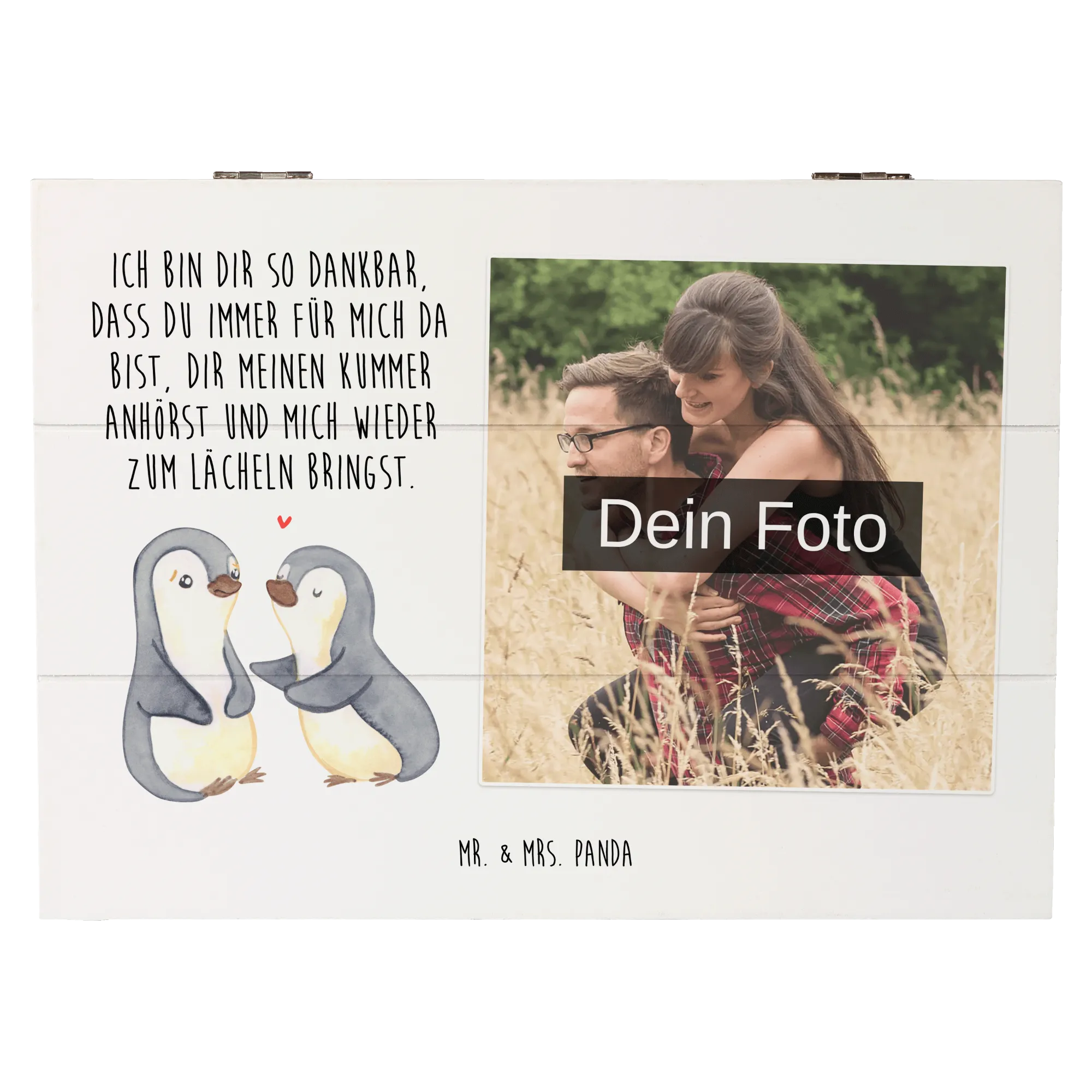 Personalized Photo Wooden Box penguins console - 22 x 15 cm - White