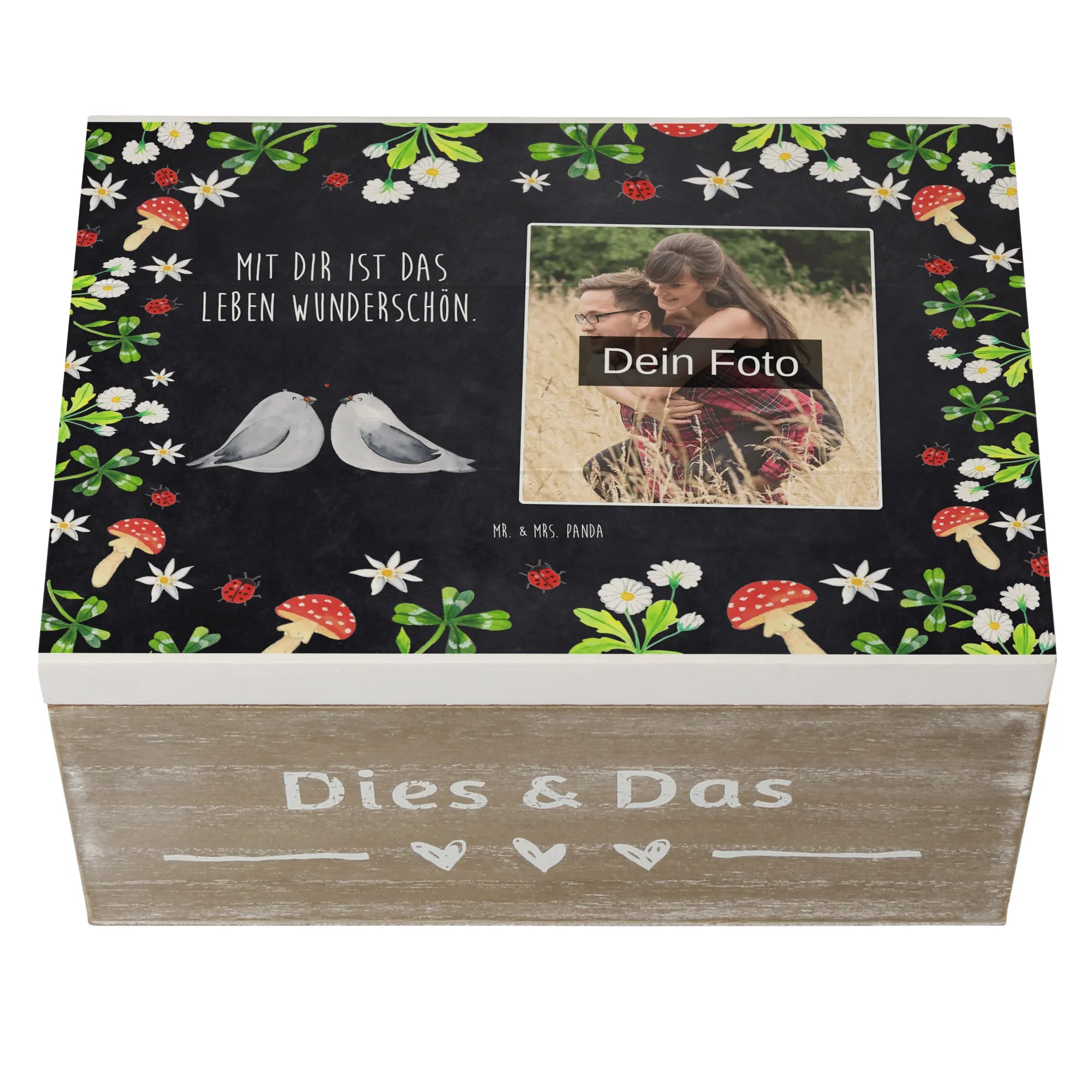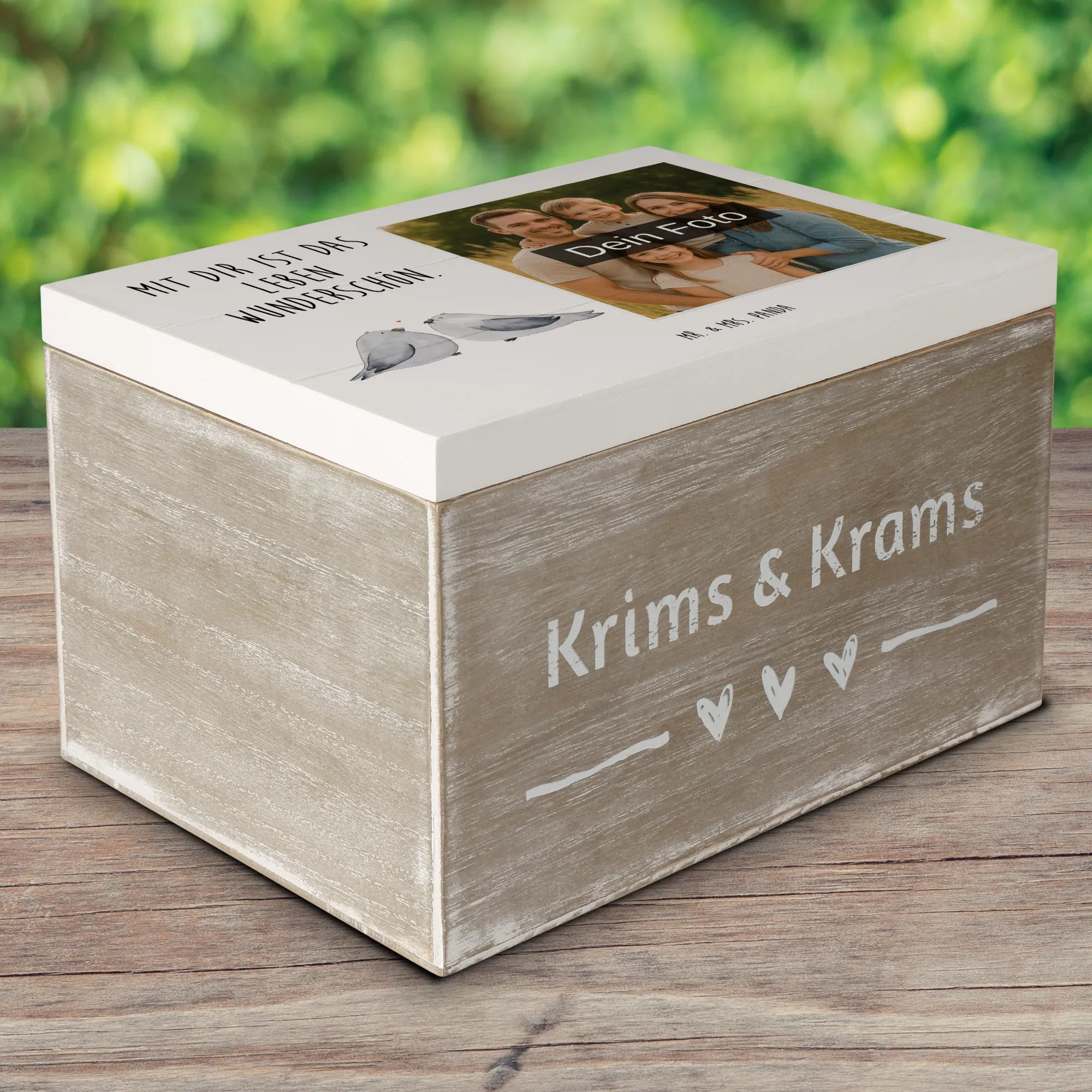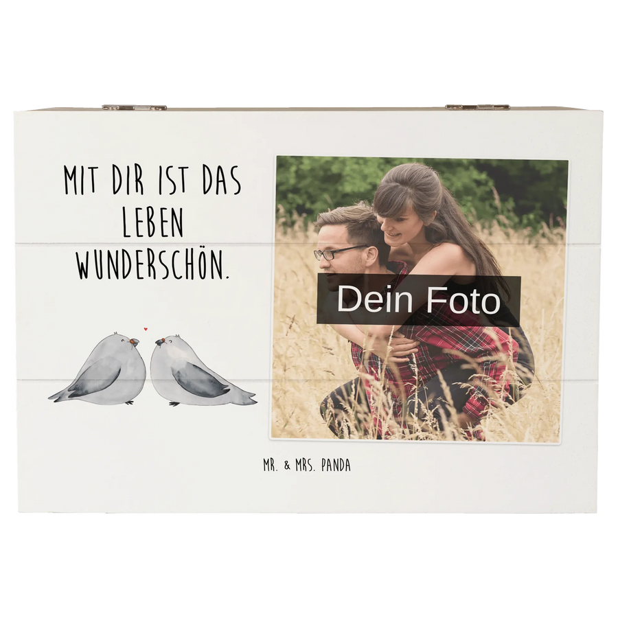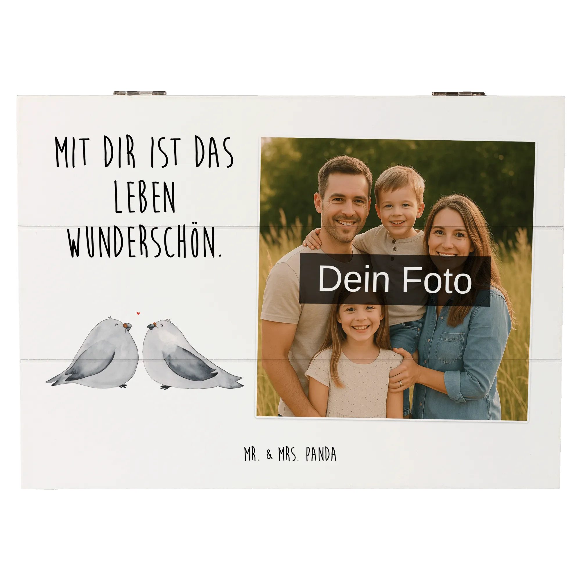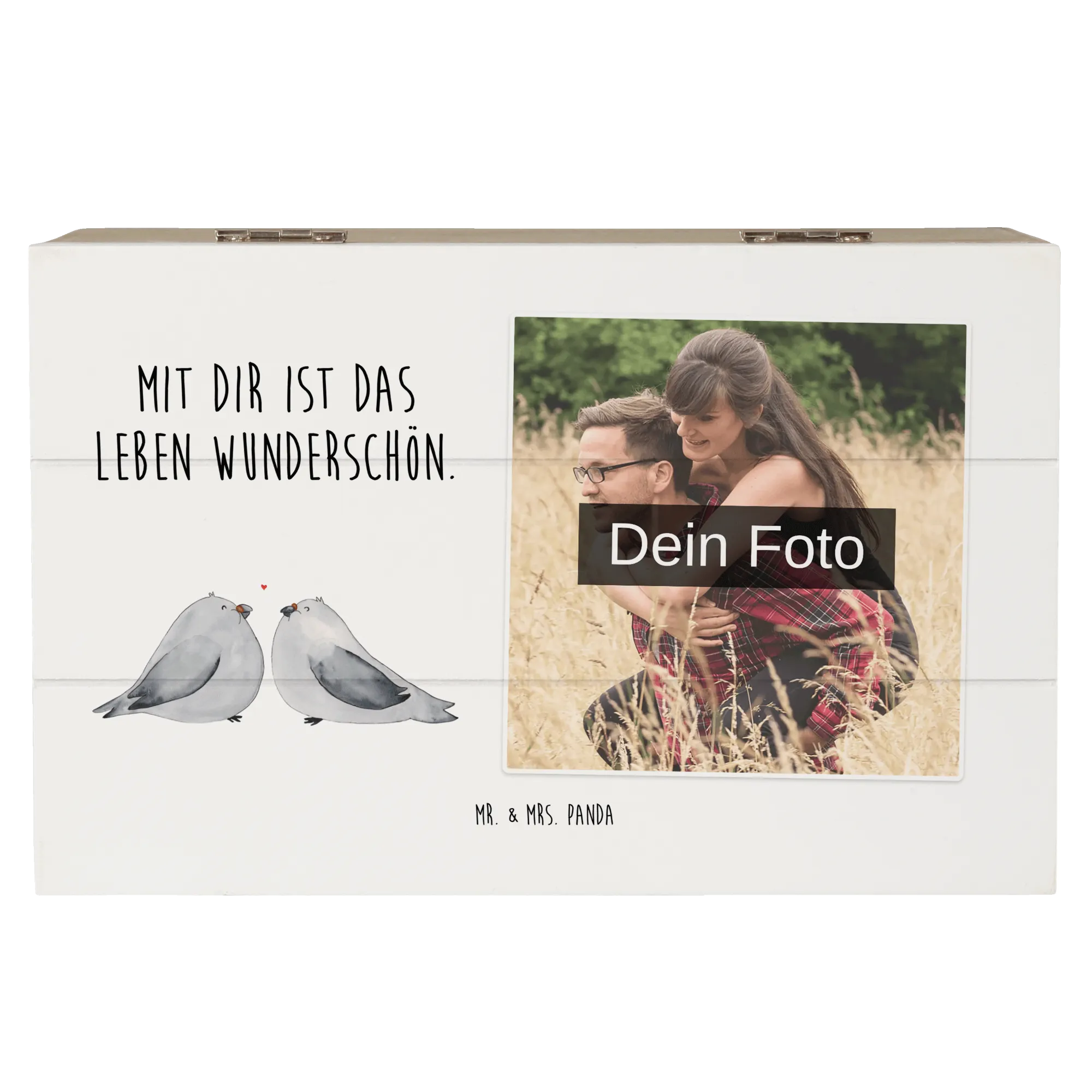 Personalized Photo Wooden Box Turtledoves in love - 22 x 15 cm - White