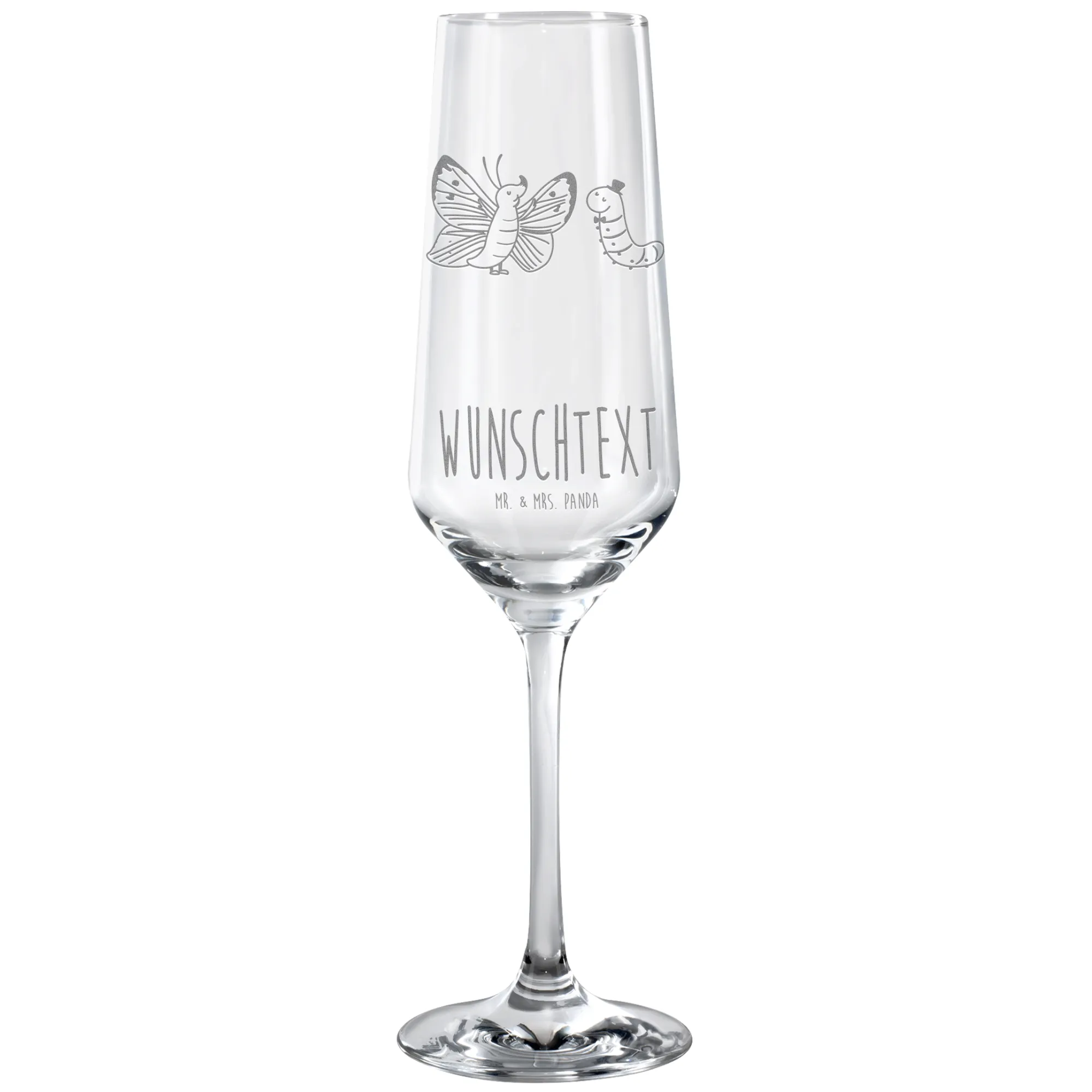Personalized Sparkling Wine Glass Caterpillar butterfly