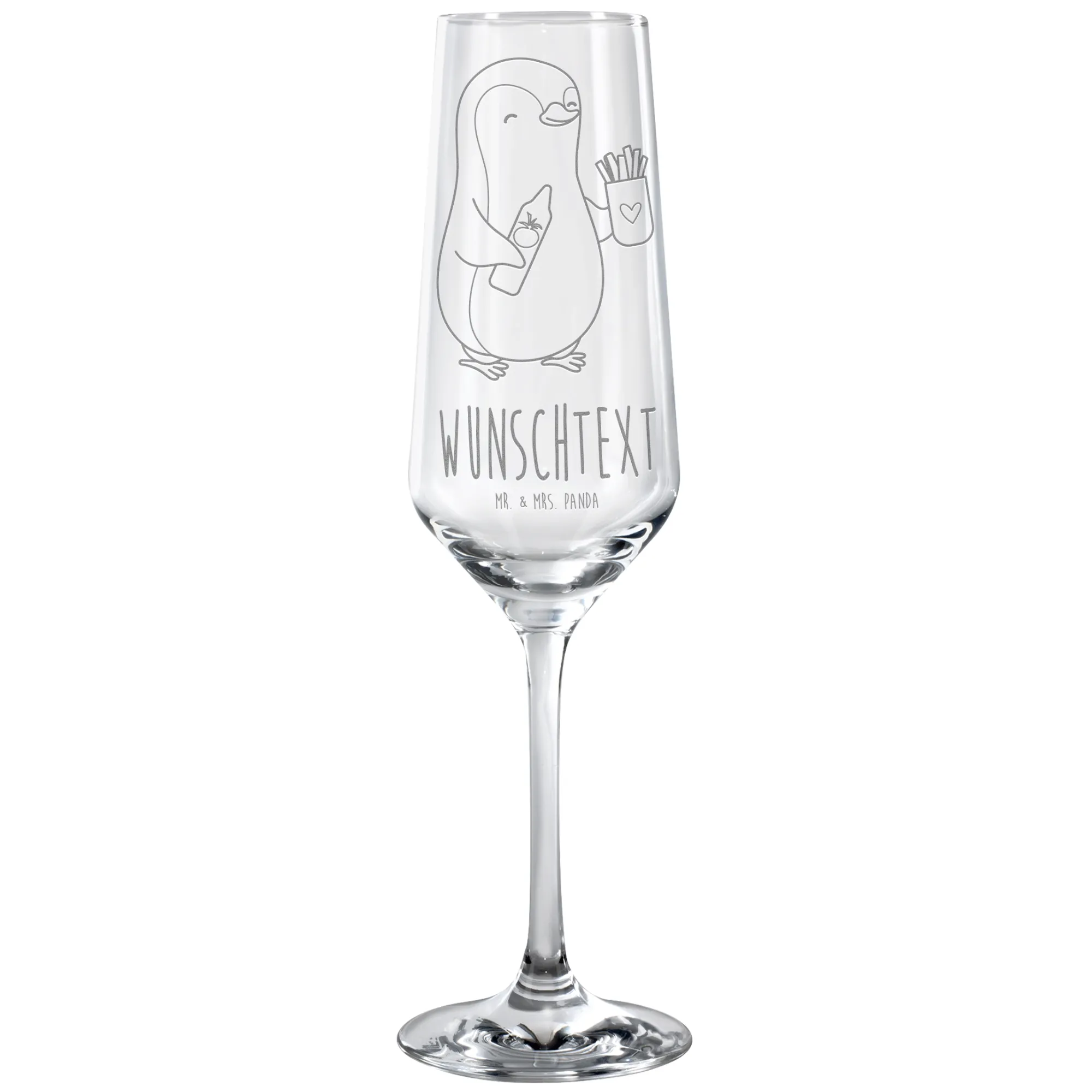 Personalized Sparkling Wine Glass penguin French fries
