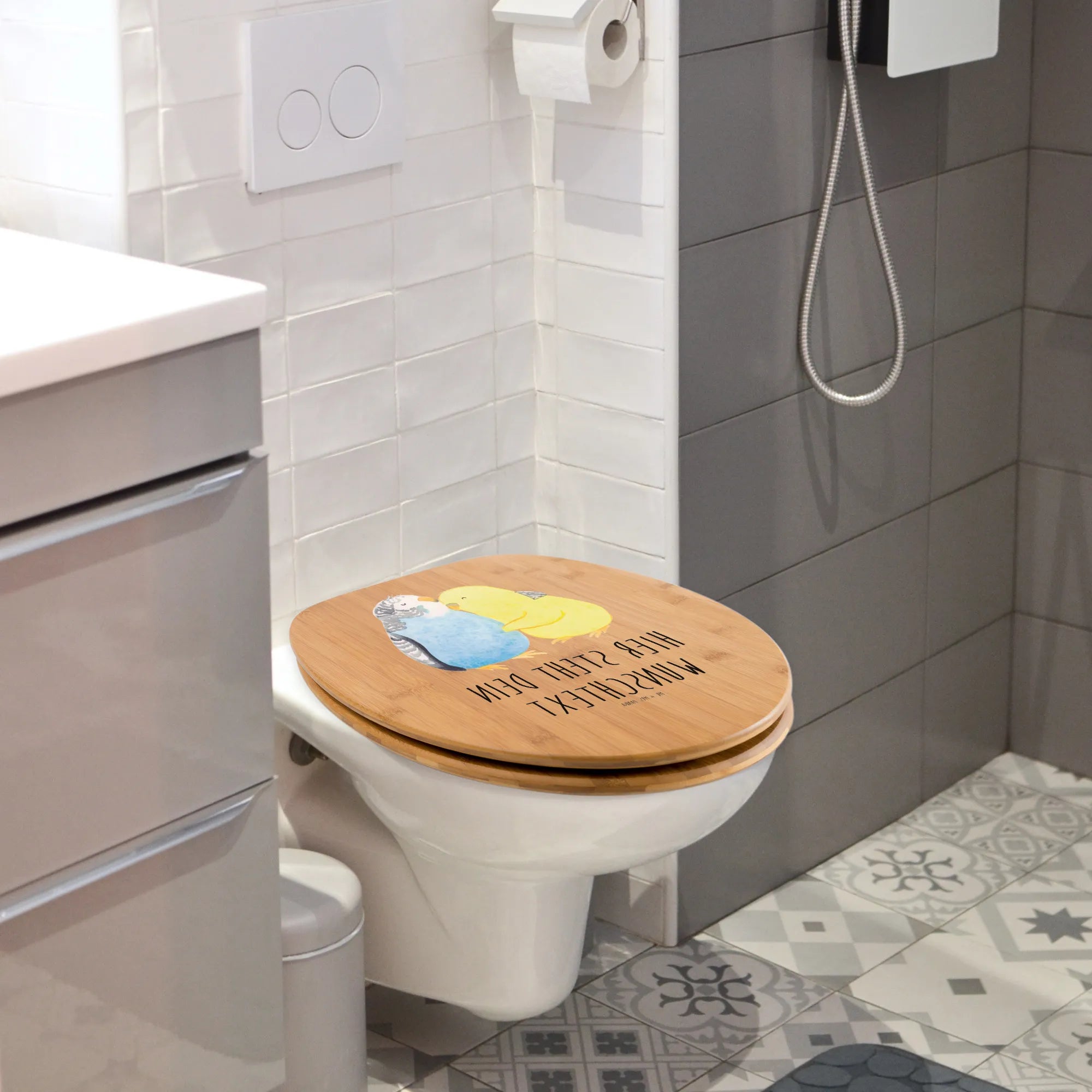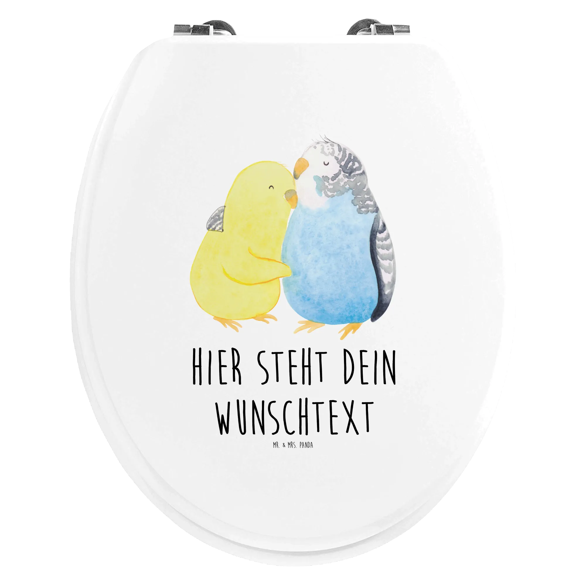 Personalized Toilet Seat Design Parakeets in love - Hartfaser Holzkern Weiß