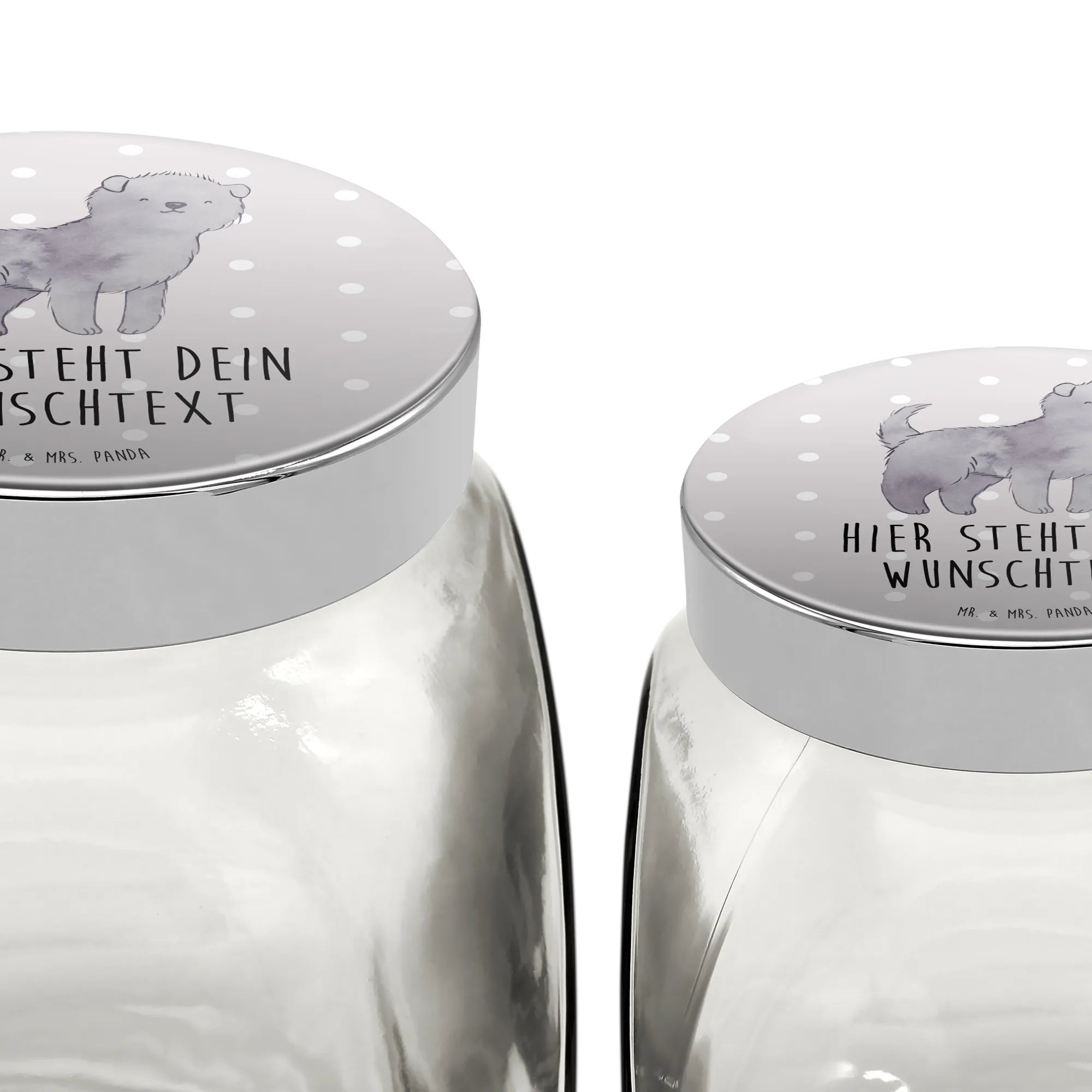 Light up your pet's treat time with the Personalized Treat Jar from Mr. & Mrs. Panda! This enchanting jar, holding an impressive 870 ml (29 oz) and weighing 400 g (14 oz), is crafted to be both practical and adorable. Adorned with beautiful designs and phrases, it can be personalized to suit your pet's style! The durable glass jar comes with a gleaming silver screw lid that preserves treats' freshness. Ideal for dogs, cats, or any pet, this versatile jar can also be used for candies, tea, or even spices, making it a wonderful addition to any kitchen. Show love for your pets and create memories every time they reach for their favorite goodies with this charming treat jar!