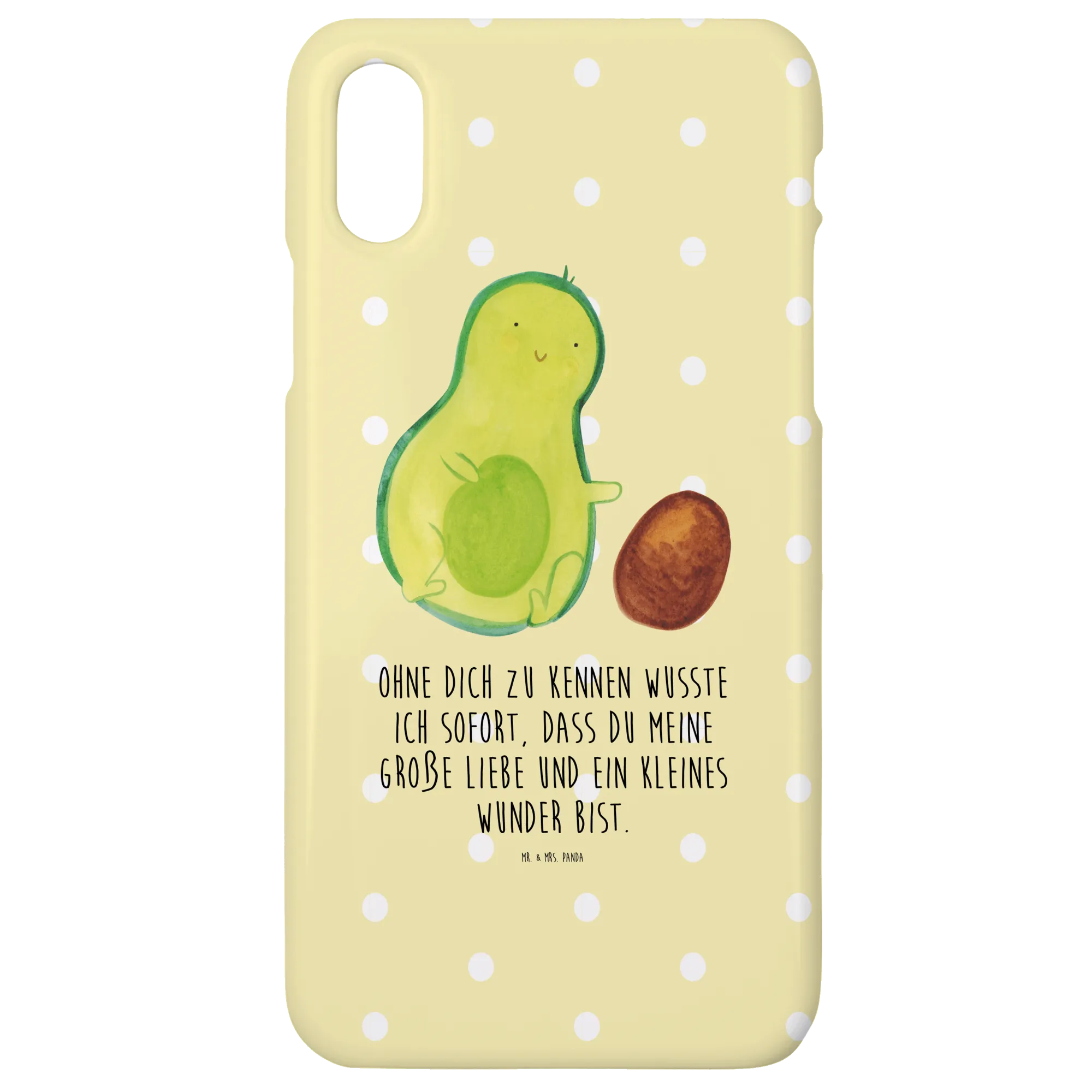 Made from high-quality 3D premium plastic, this mobile phone sleeve ensures that the iPhone XR is well-protected from scratches, bumps, and everyday hazards. Whether it's for a new parent celebrating the arrival of their first child or a close friend with a passion for healthy living, this phone sleeve provides a practical solution without compromising on style. The charming avocado motif, hand-drawn with love by Mrs. Panda, depicts a cute little avocado rolling its pit in a playful scene that brings smiles and warmth.