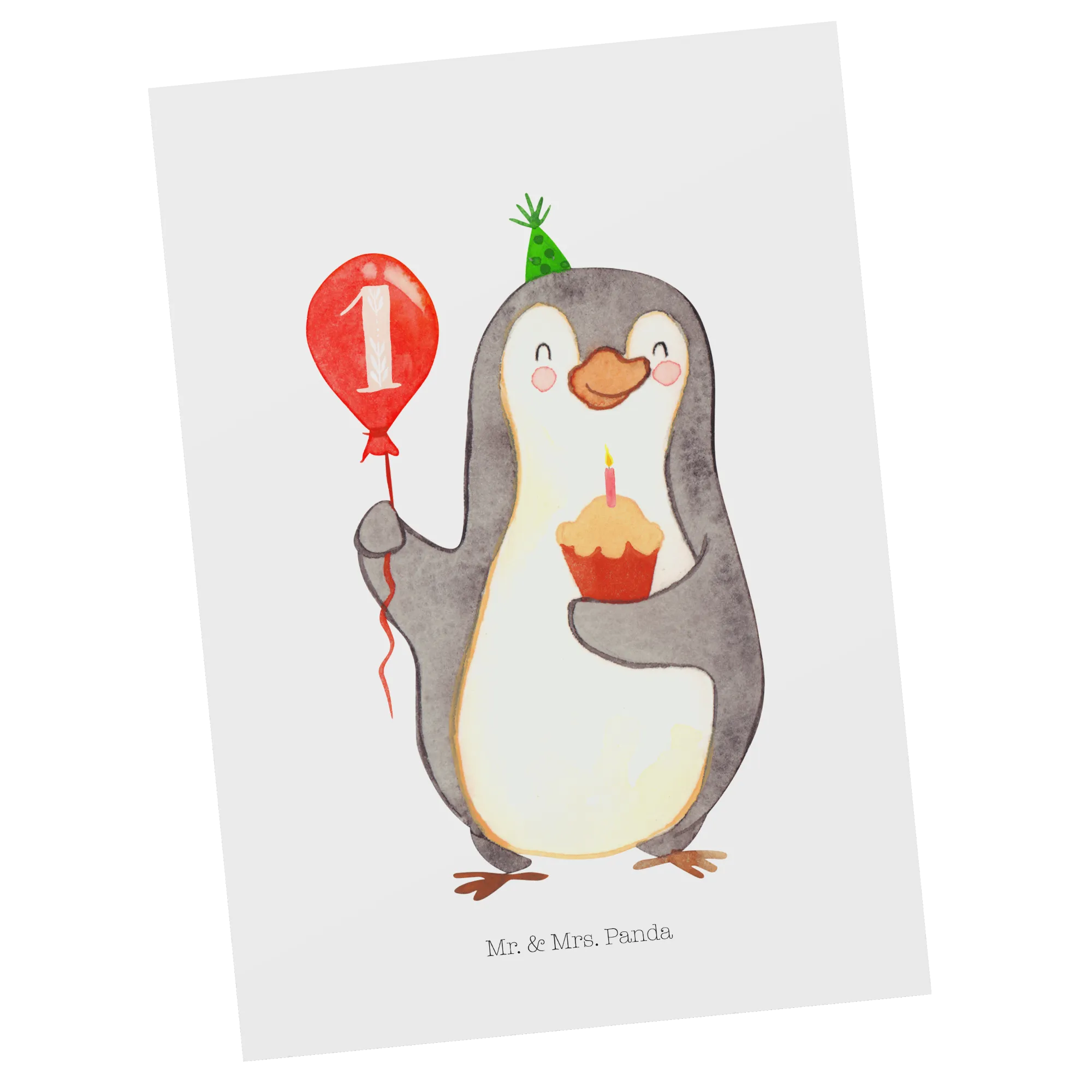 Celebrate a magical milestone with our delightful '1st Birthday Penguin Balloon' postcard from Mr. & Mrs. Panda! 🎉 This adorable design features a cheerful little penguin wearing a party hat, expertly holding a colorful balloon, making it the perfect card to mark a little one's first year.