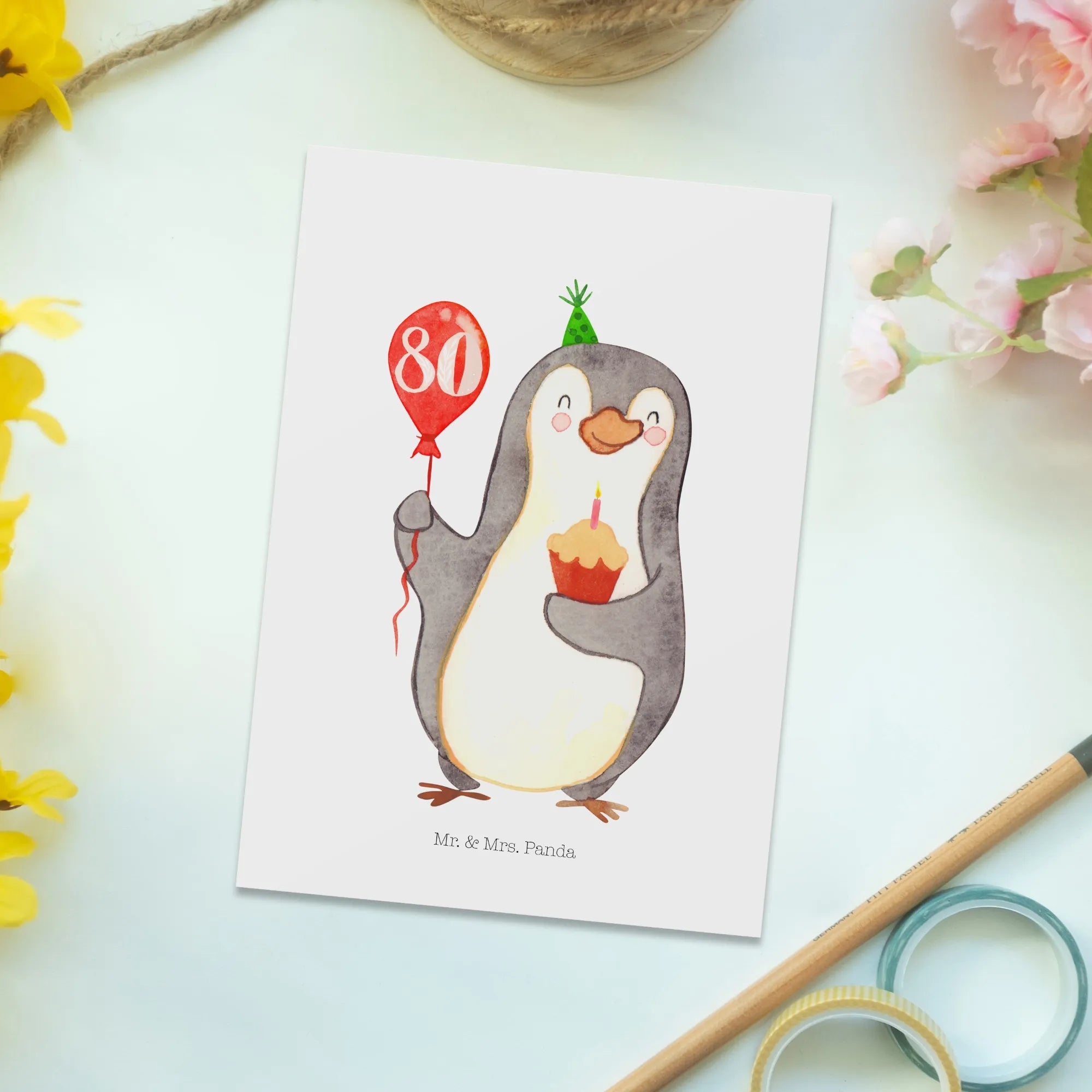 Celebrate a milestone birthday like no other with our adorable Mr. & Mrs. Panda Postcard featuring a charming penguin holding a balloon! This delightful postcard is more than just a card; it's a heartfelt message wrapped in cuteness, perfectly designed for an 80th birthday celebration. Whether you are marking this special occasion for a beloved family member or dear friend, this postcard is sure to bring smiles and joy.