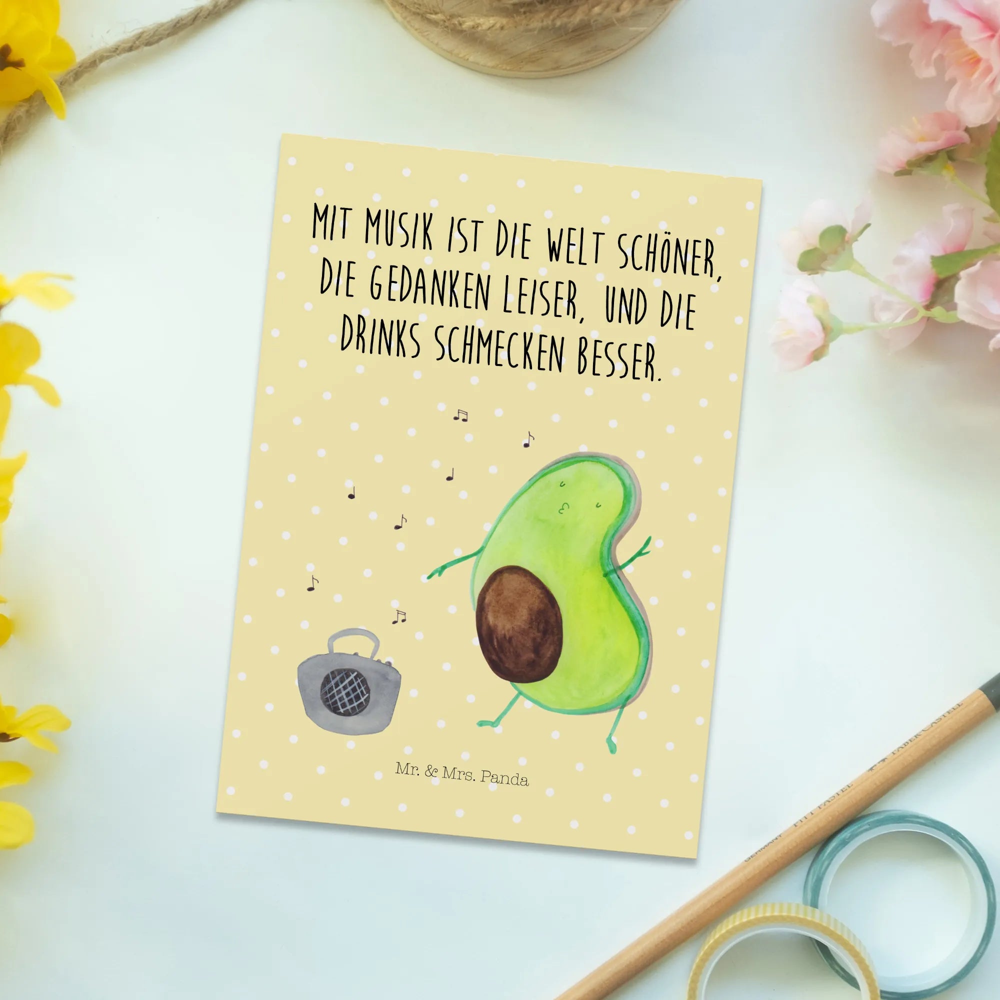 Postcard avocado Dance - with a saying - Yellow Pastel
