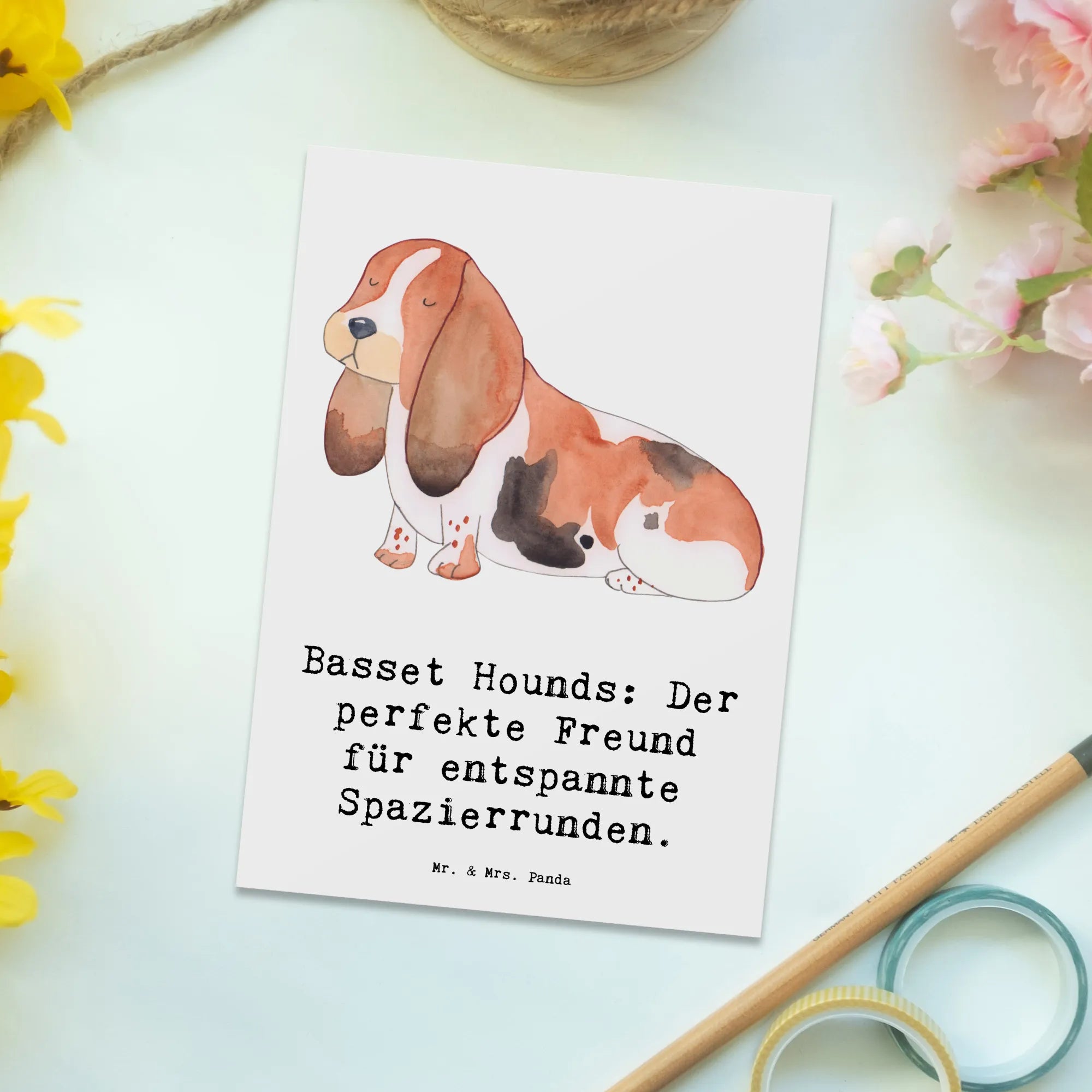 Postcard Basset Hounds: Der perfekte Freund für entspannte Spazierrunden. - White