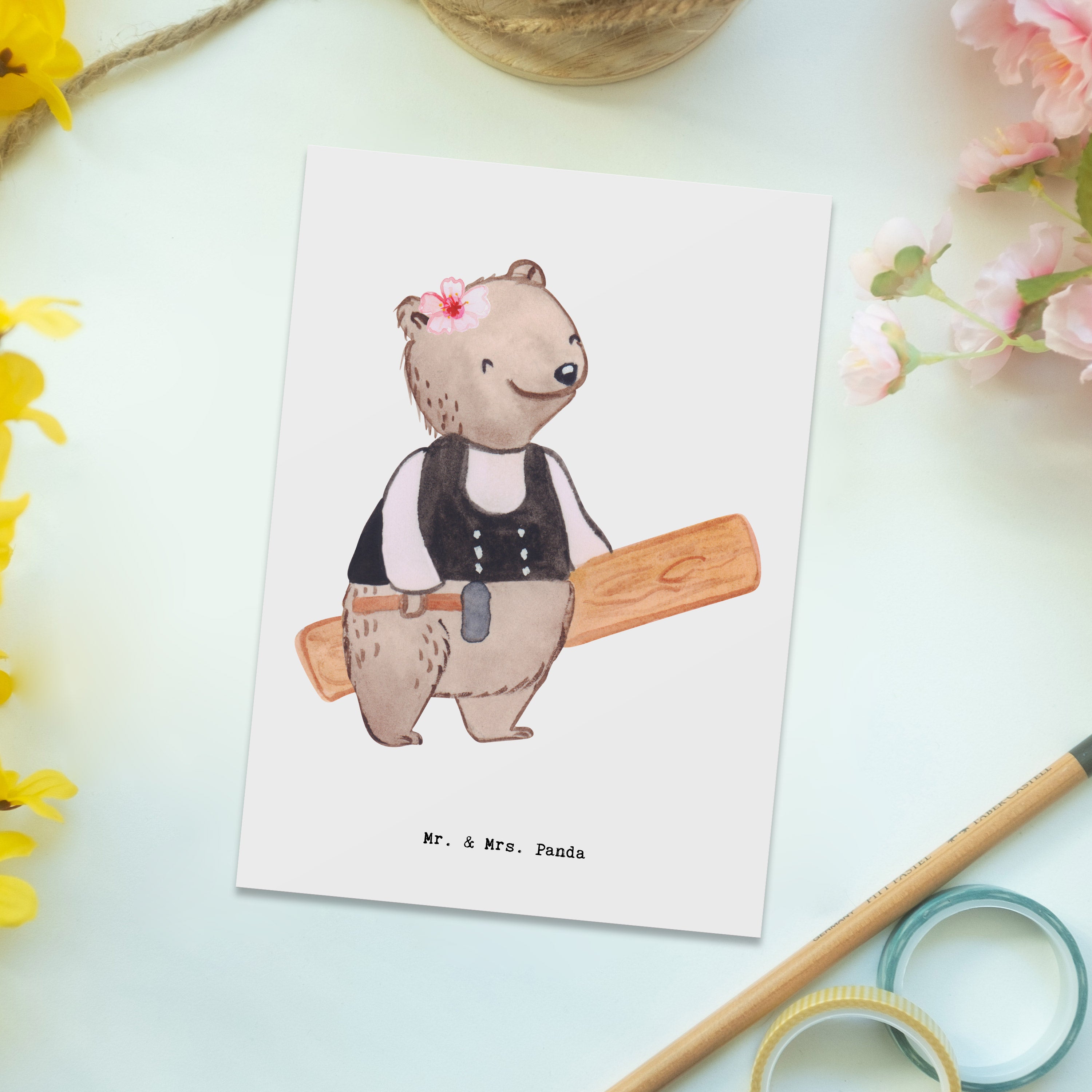 Postcard Carpenter (female) heart - with a saying - White