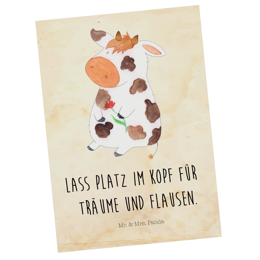 Crafted from high-quality 300 grams cardboard, this postcard delivers a noble appearance with a glossy front that catches the eye, while the matte back ensures your handwritten notes glide smoothly. The charming cow gracing the front carries a beautiful flower in its hand, exuding pure sweetness and cuteness that anyone would adore. This is more than just a postcard; it’s an invitation to let your imagination run wild – as our slogan suggests, ‘Make Room in Your Head for Dreams and Nonsense!’
