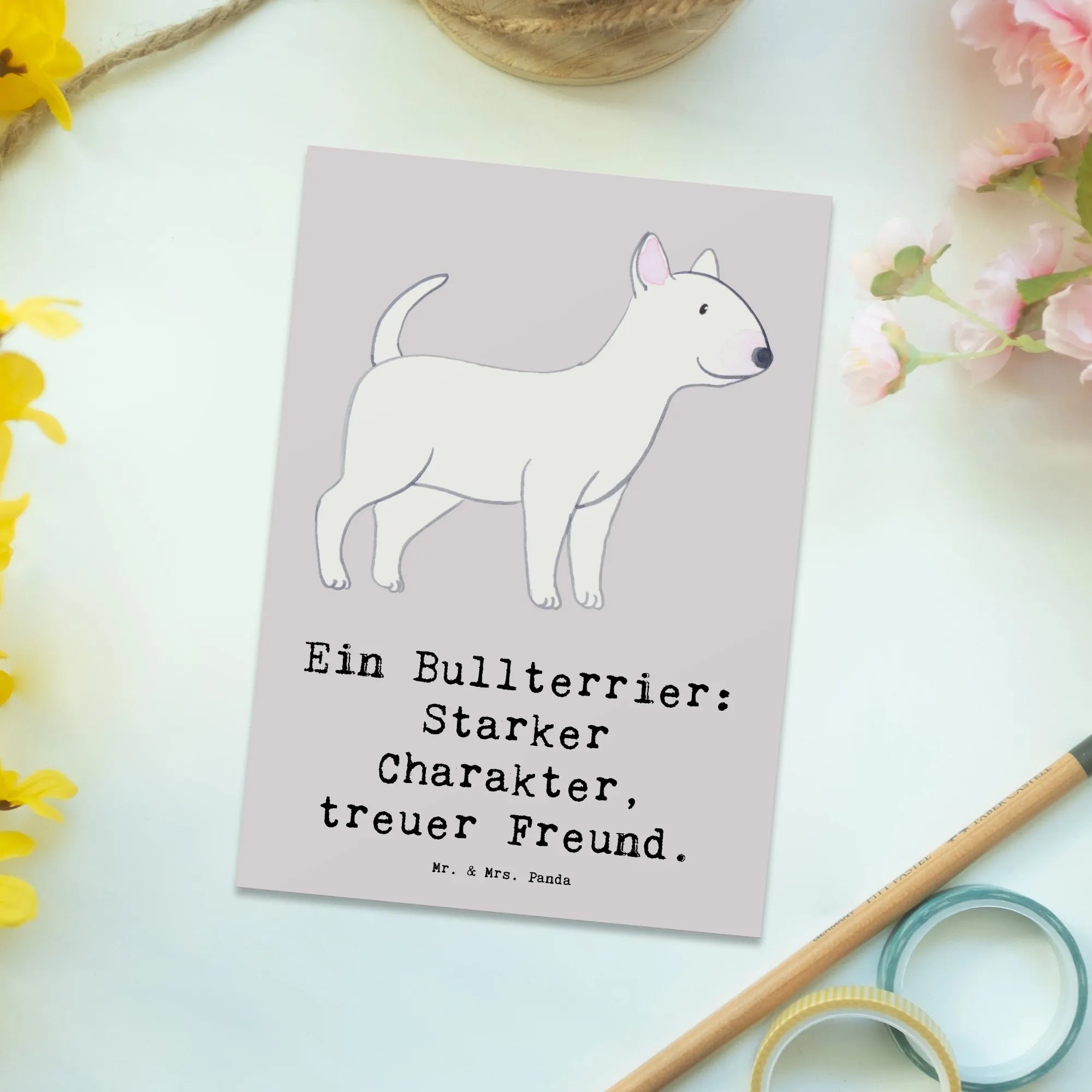 Postcard Ein Bullterrier: Starker Charakter, treuer Freund. - White