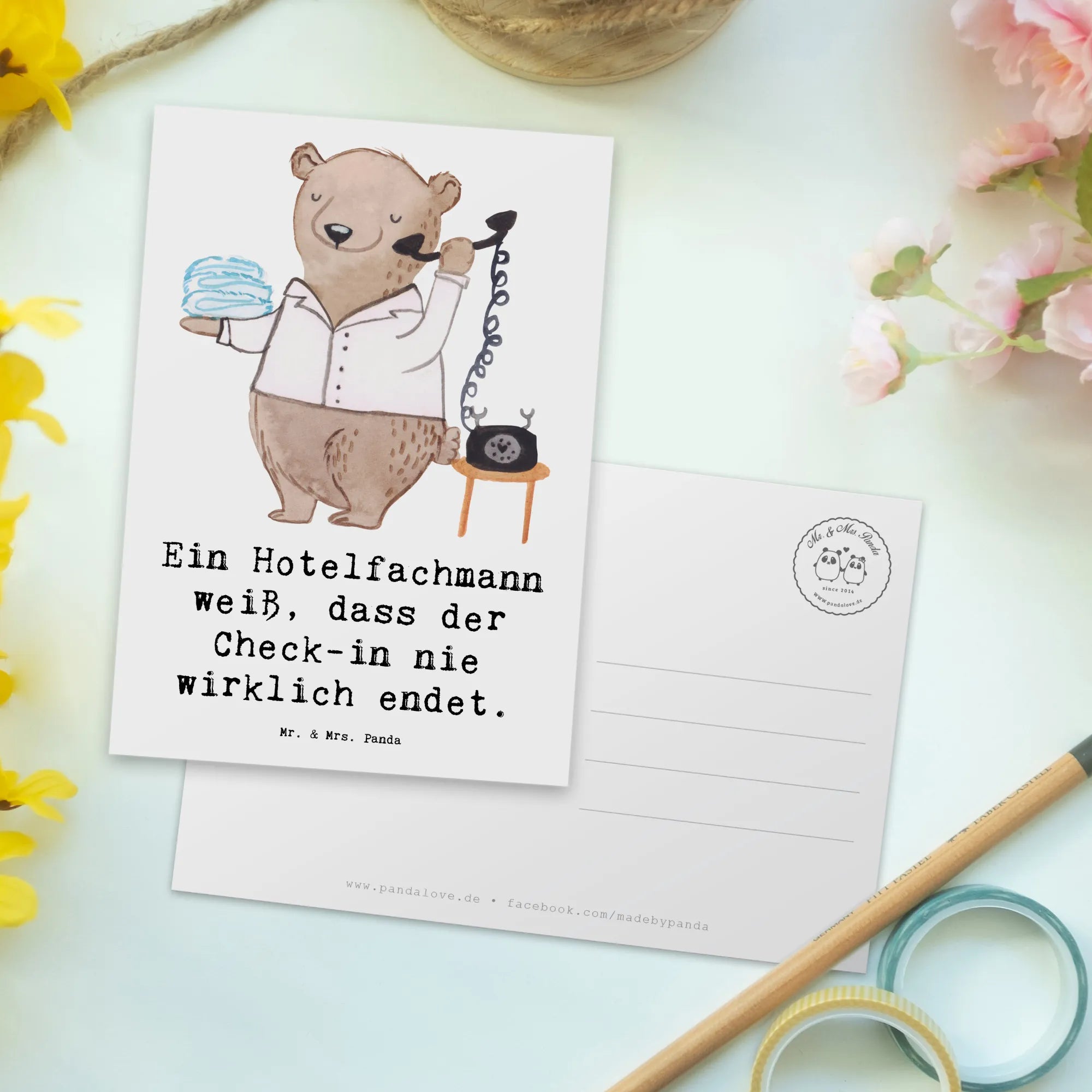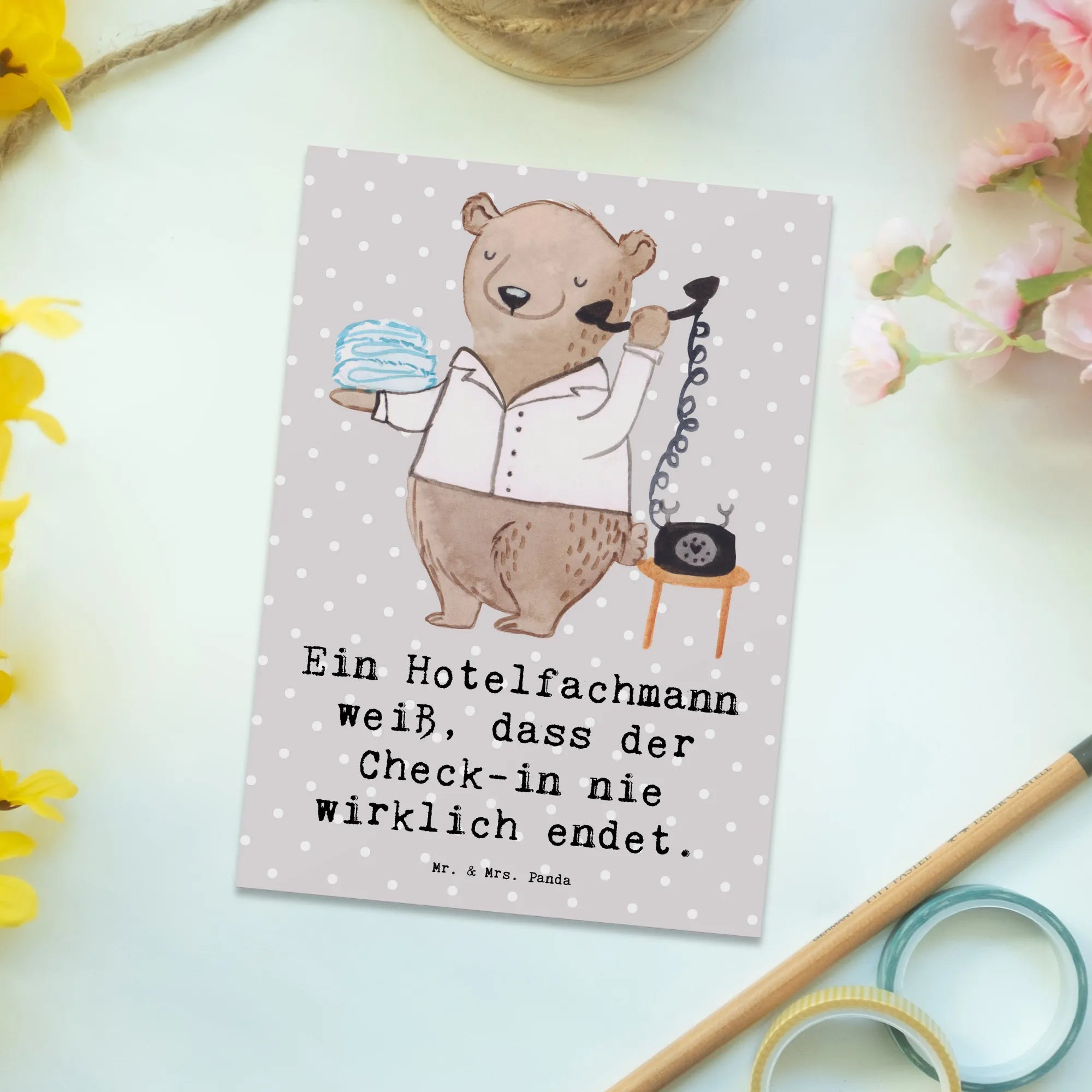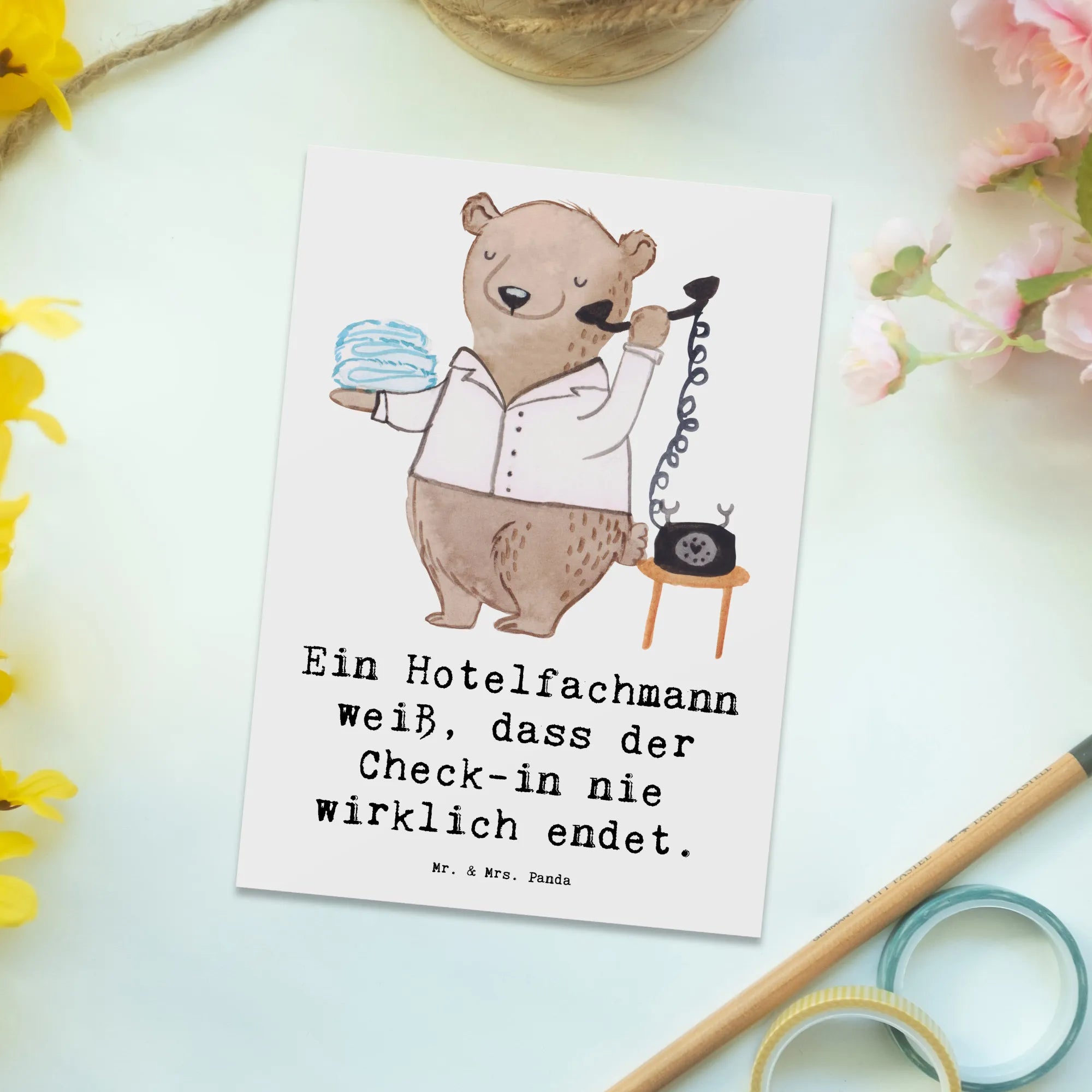 Postcard Ein Hotelfachmann weiß, dass der Check-in nie wirklich endet. – Mr. & Mrs. Panda