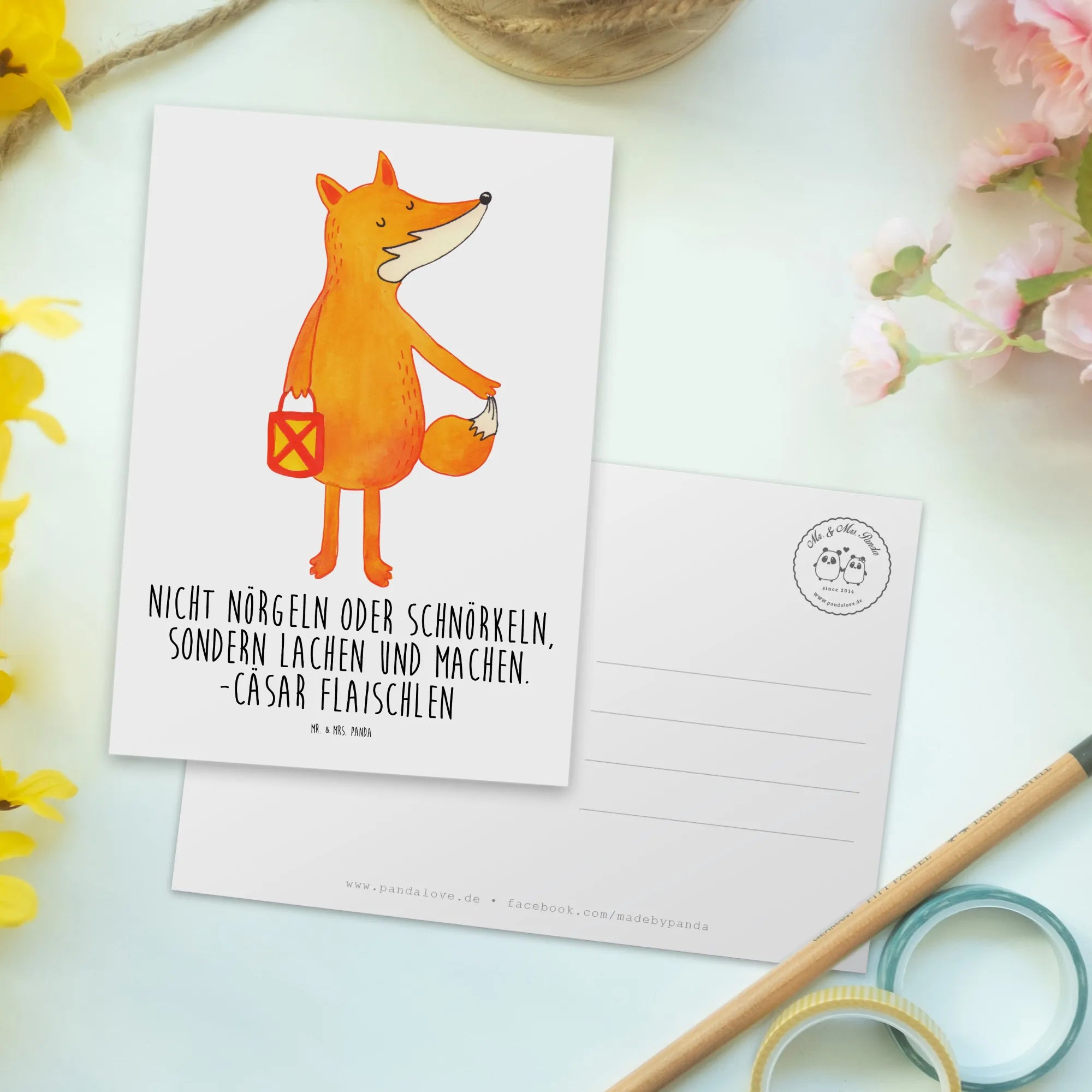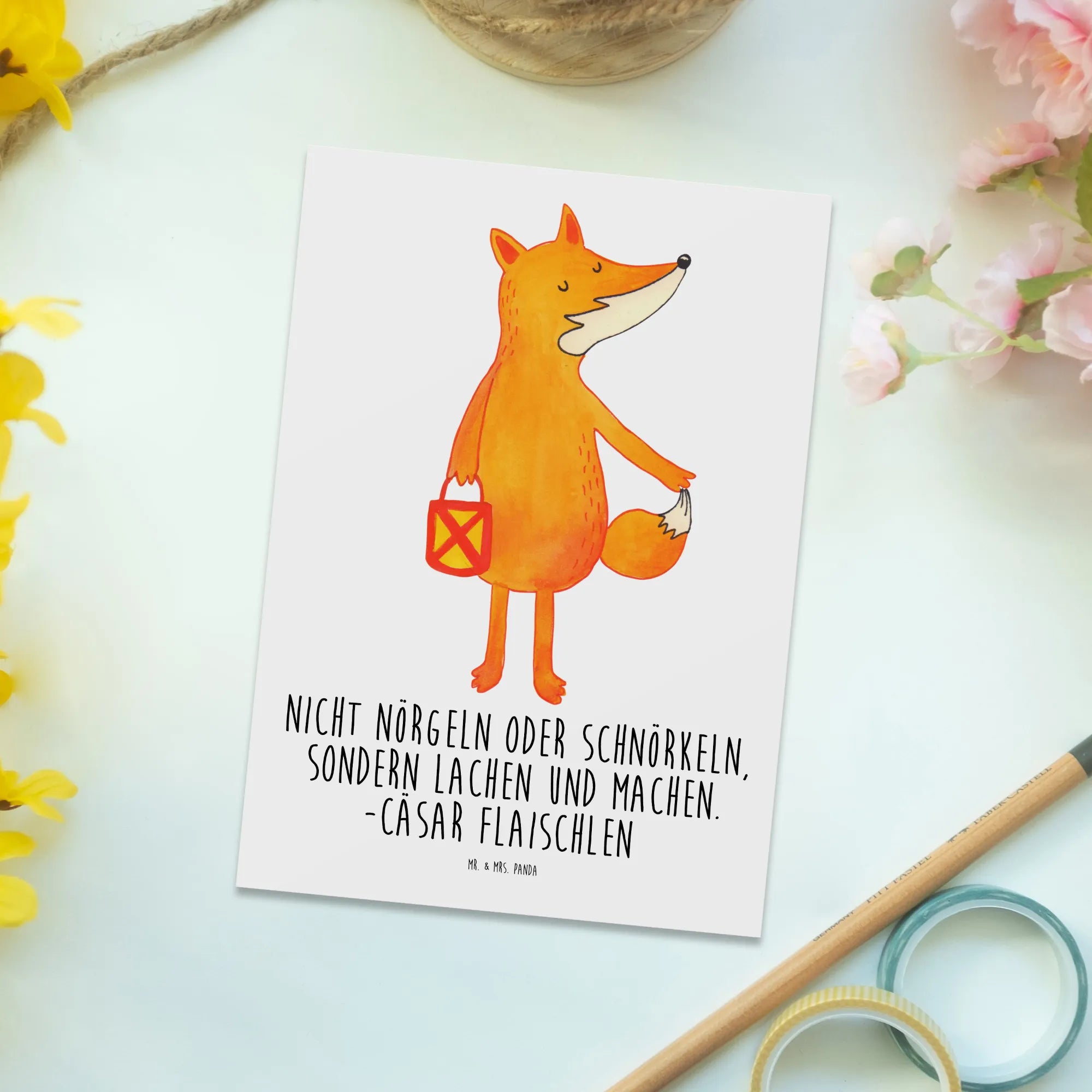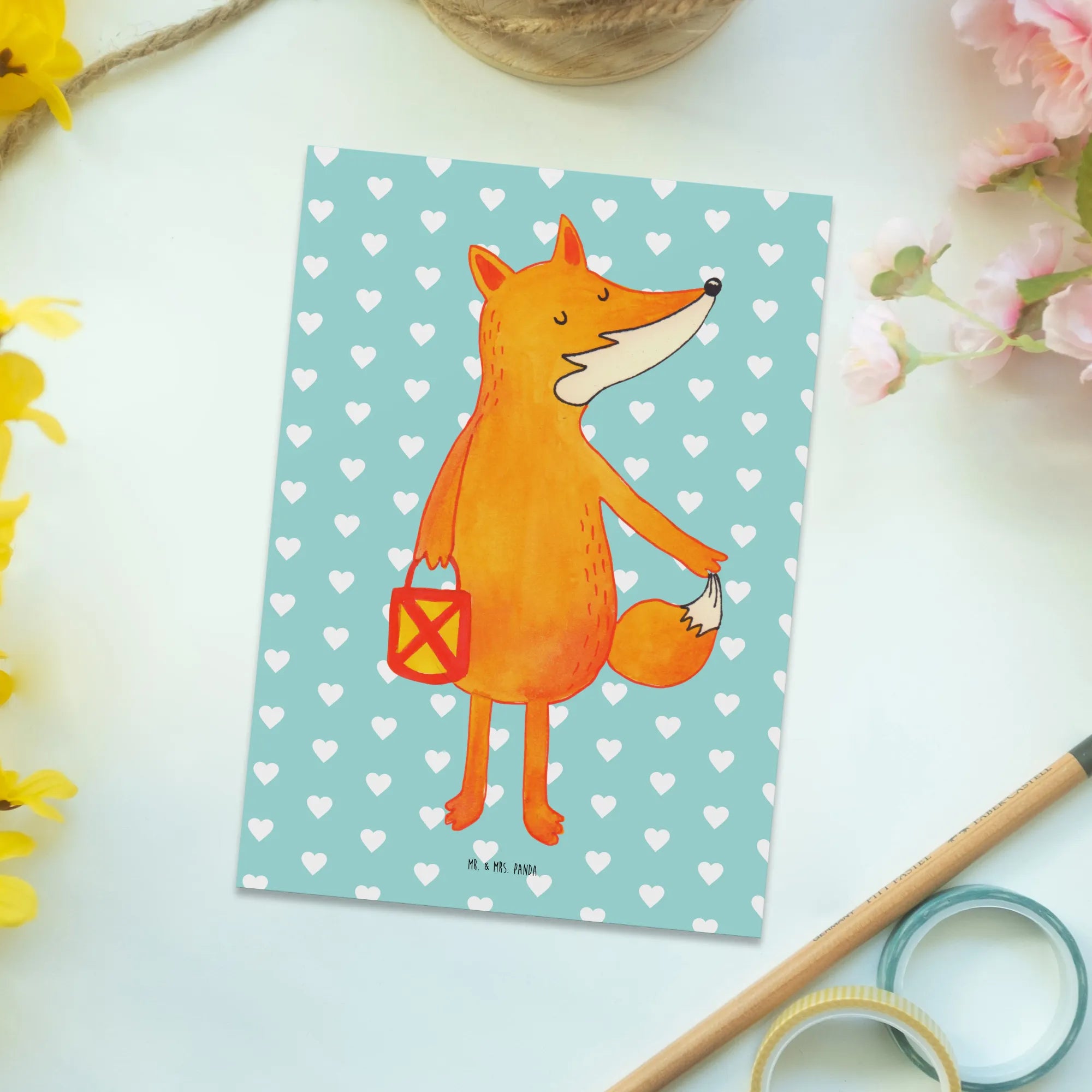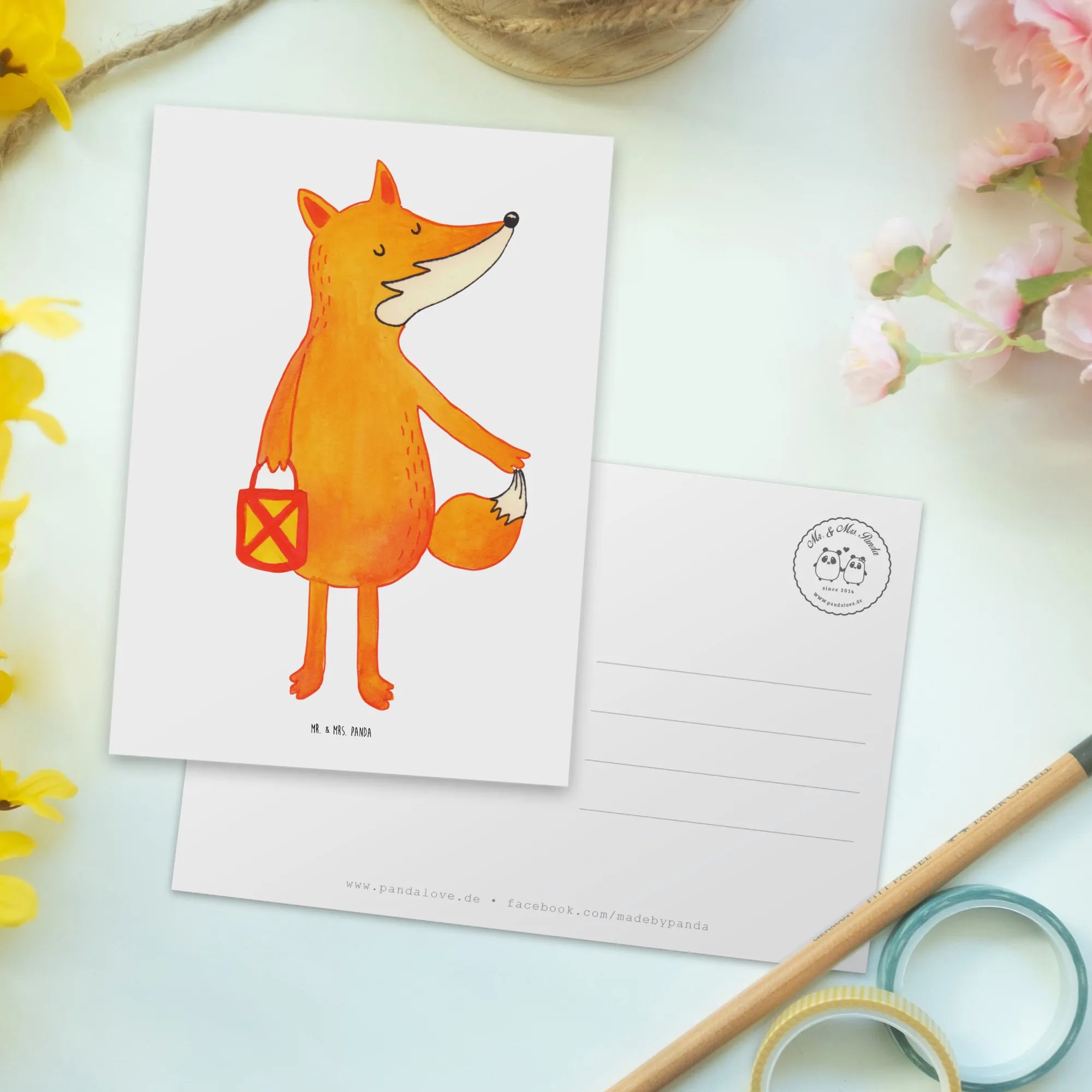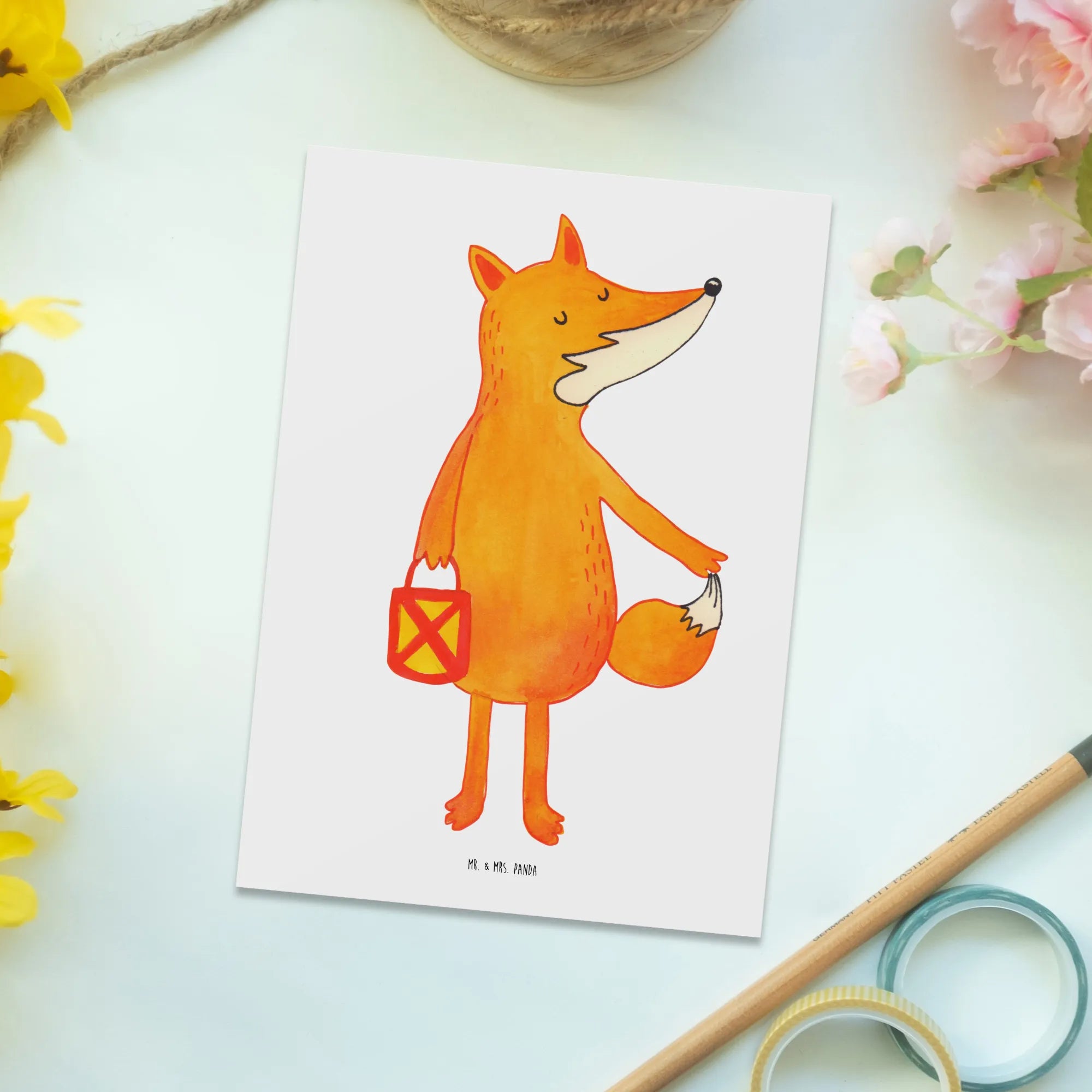 Zauberhafte Postkarte „Fuchs Laterne“ aus der Fuchs-Kollektion von Mr. & Mrs. Panda