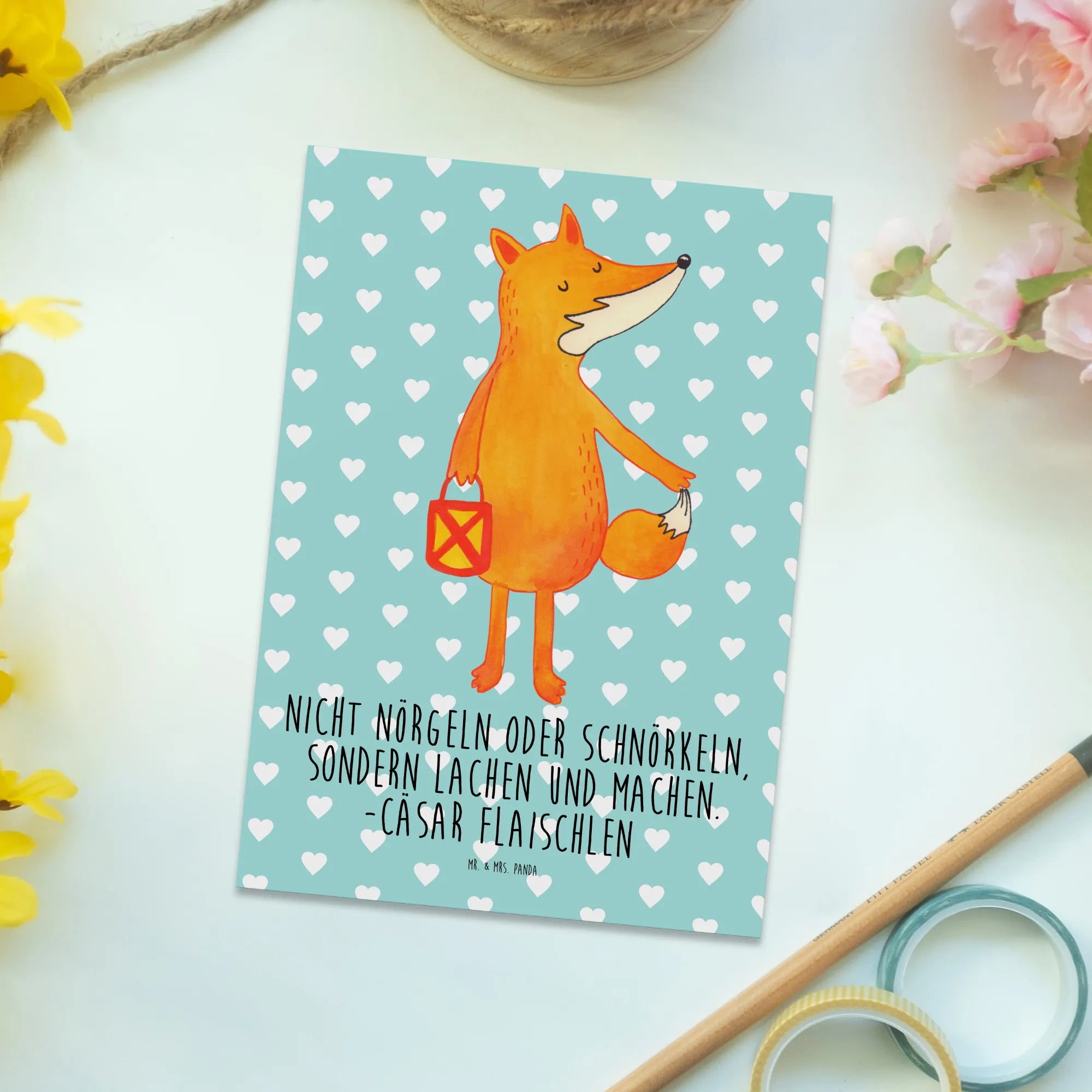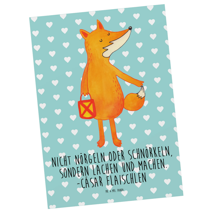 Postcard Fox Lantern - with saying - Turquoise Pastel