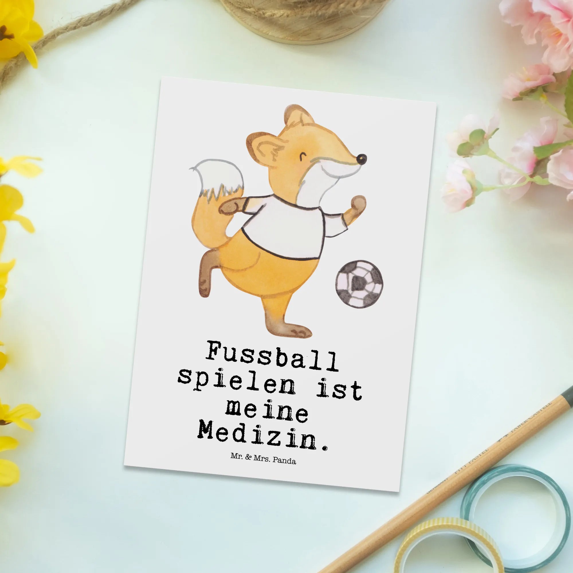 Picture this: a delightful little fox, filled with energy and joy, bounding across a gorgeous meadow to chase after a colorful football. There’s something truly special about the way it plays, reflecting the essence of fun and a carefree heart. The slogan 'Fussball spielen ist meine Medizin' captures this beautifully, reinforcing that football is not just a pastime, but a delightful remedy for the soul. Each moment spent on the field, whether practicing dribbles or sharing laughs with friends, is like a fresh bolt of happiness injected into our lives. This enchanting motif invites you to remember those blissful moments, encouraging you to step outside, kick the ball, and let your spirit soar.
