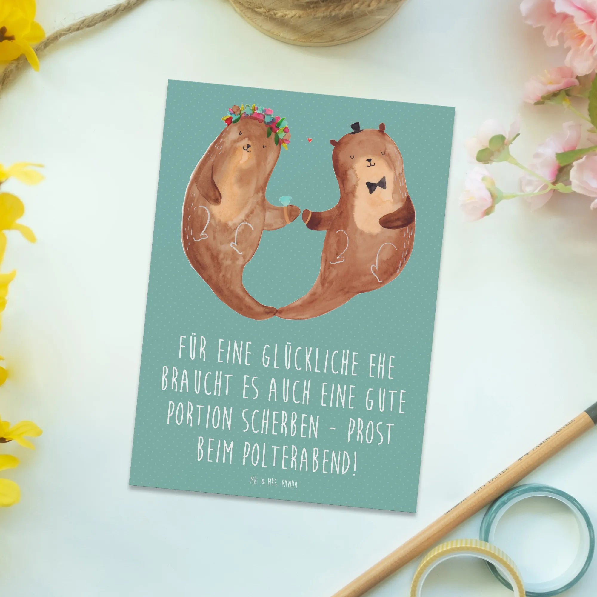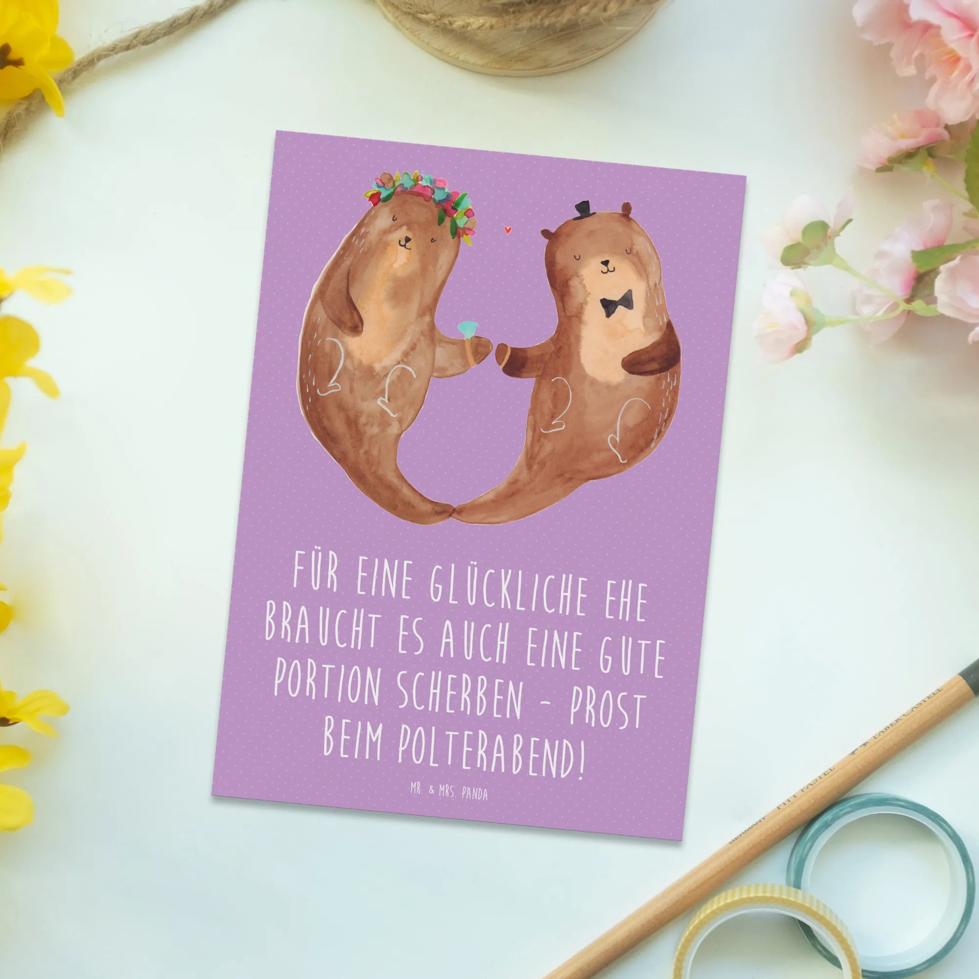 Postcard Für eine glückliche Ehe braucht es auch eine gute Portion Sch – Mr. & Mrs. Panda