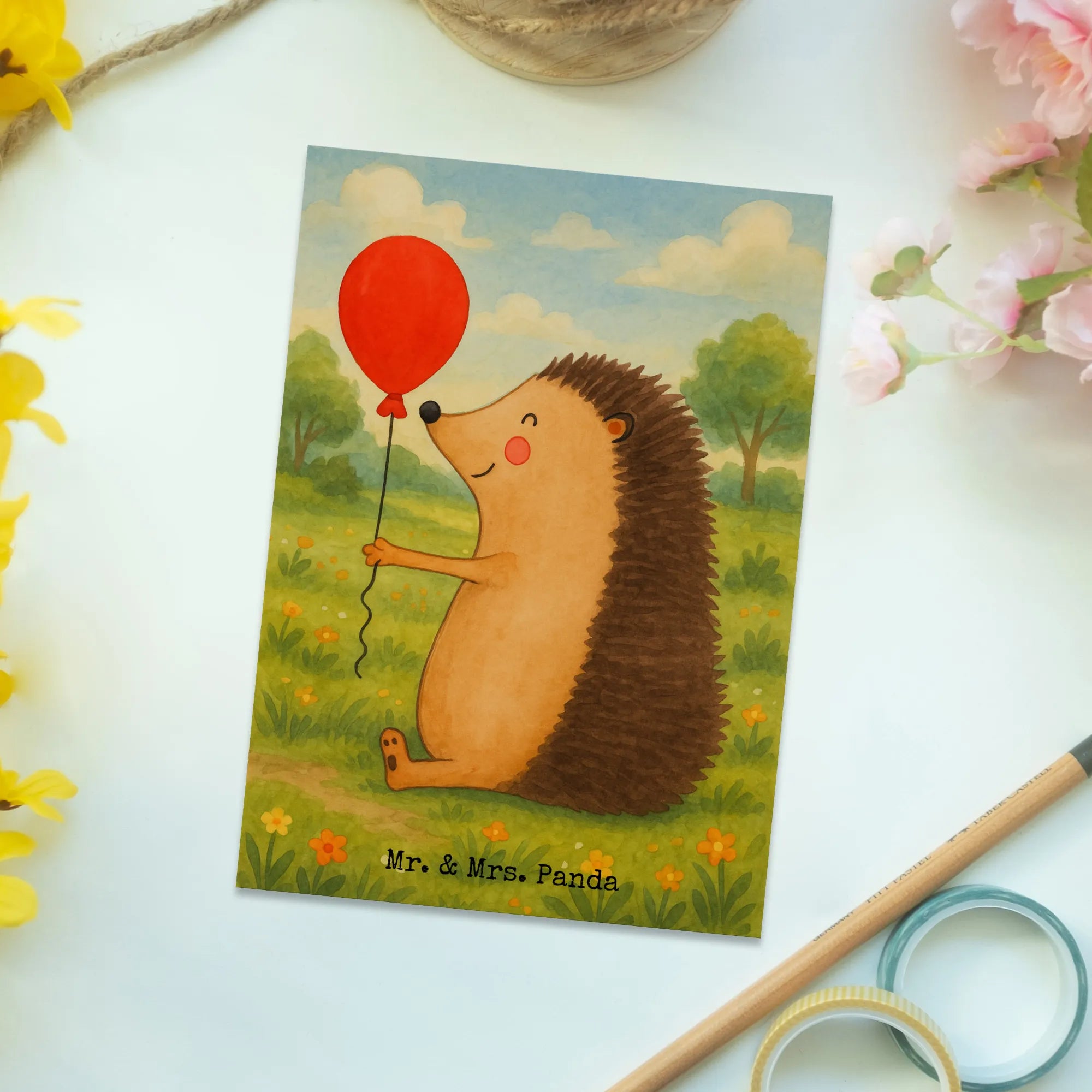 Postcard Hedgehog balloon Design - with a saying