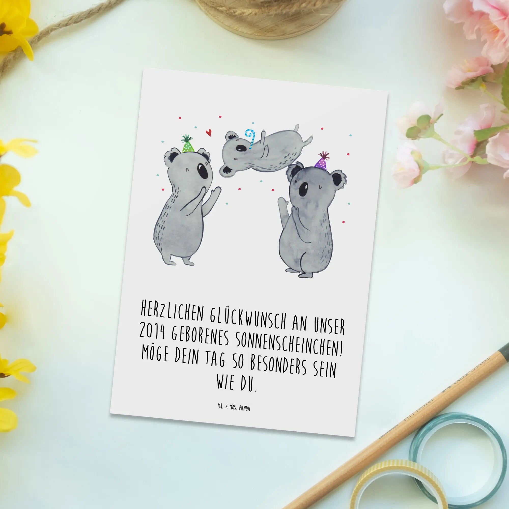 Postcard Herzlichen Glückwunsch an unser 2014 geborenes Sonnenscheinch – Mr. & Mrs. Panda