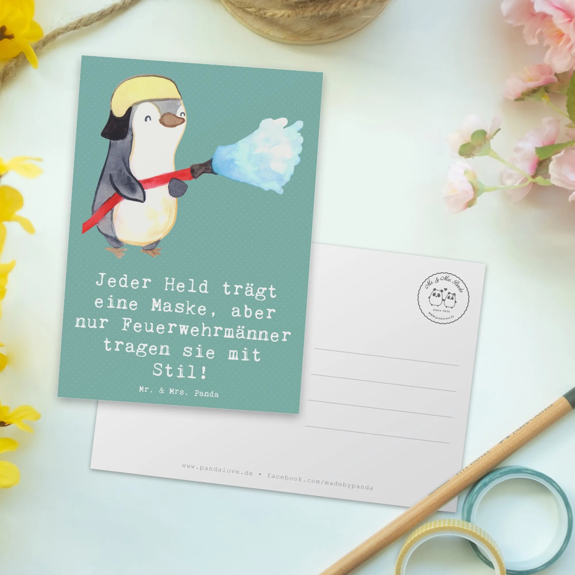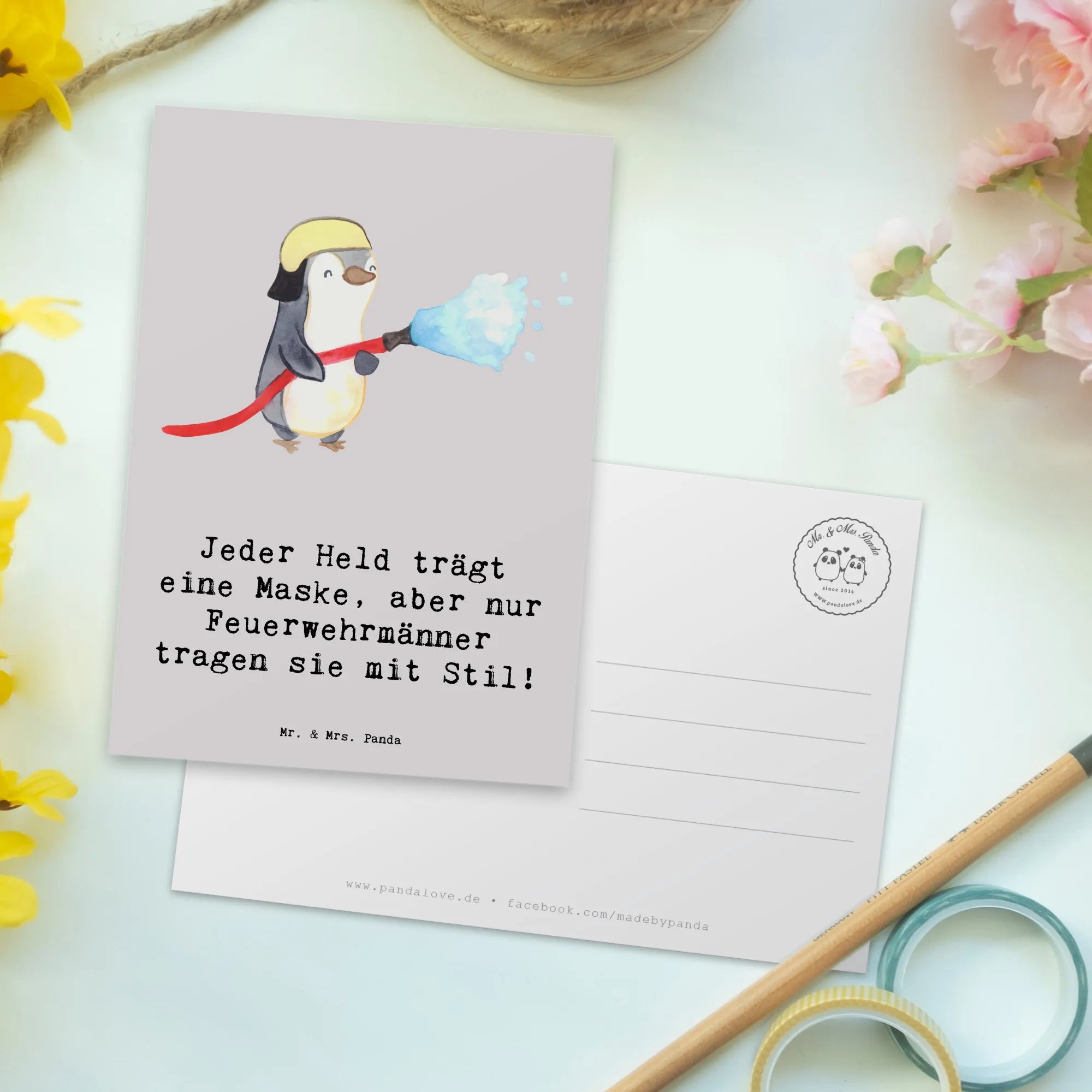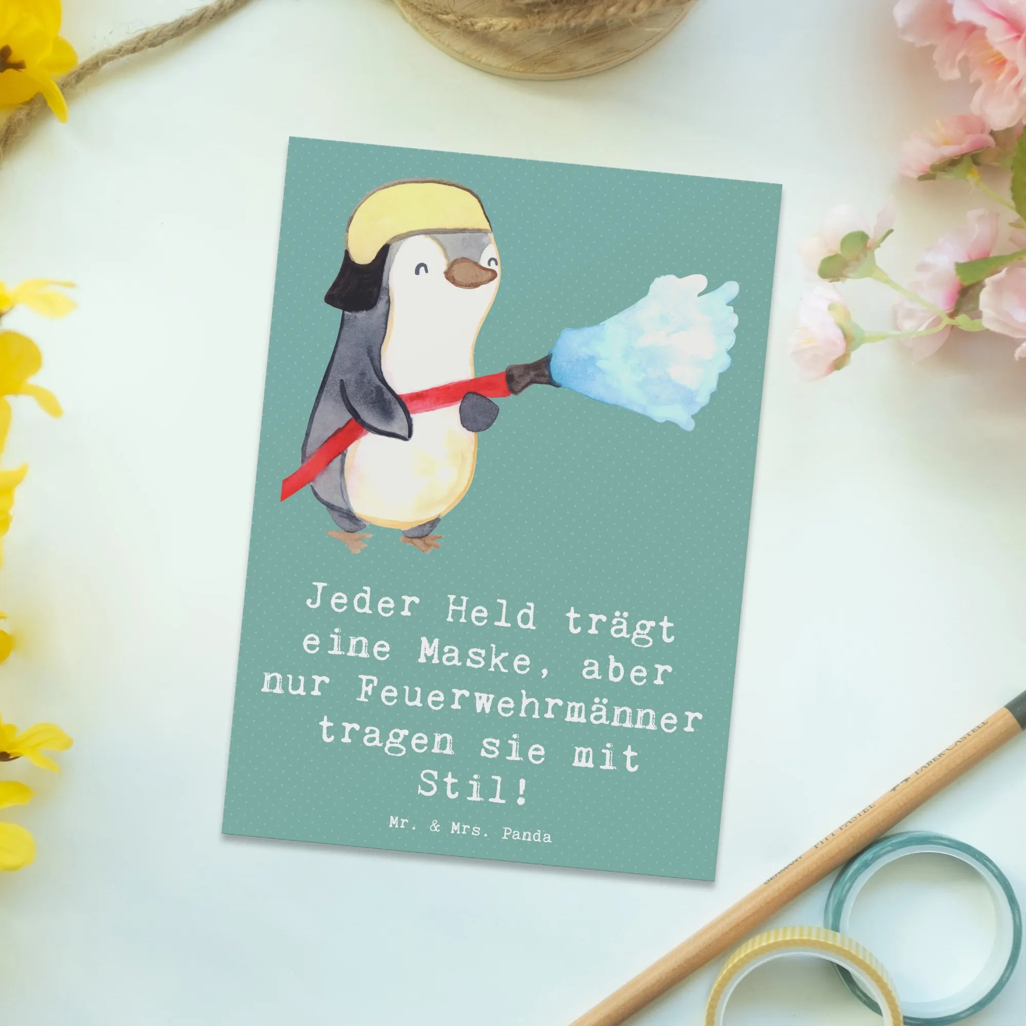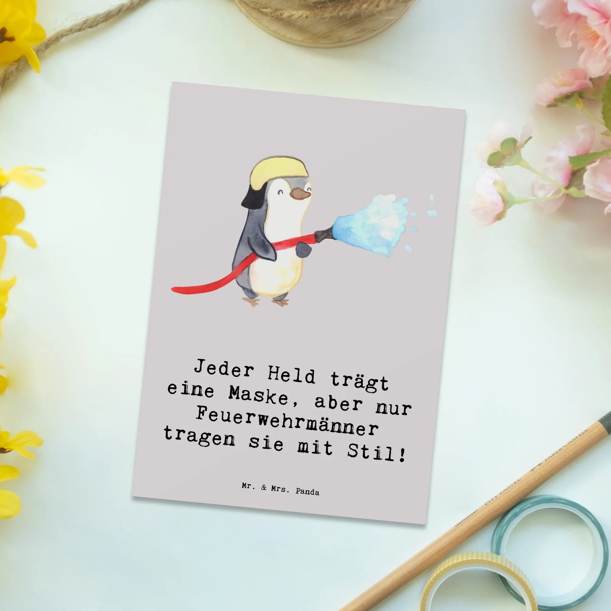 Postcard Jeder Held trägt eine Maske, aber nur Feuerwehrmänner tragen – Mr. & Mrs. Panda