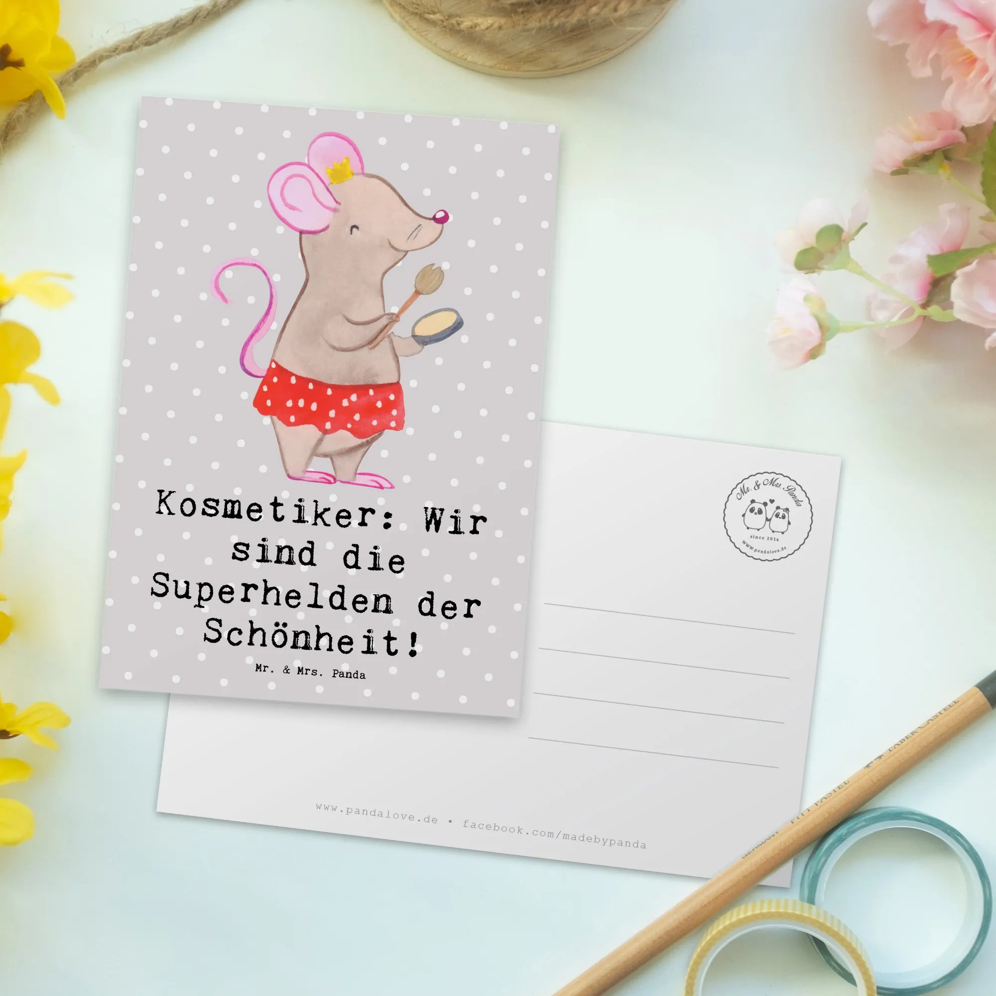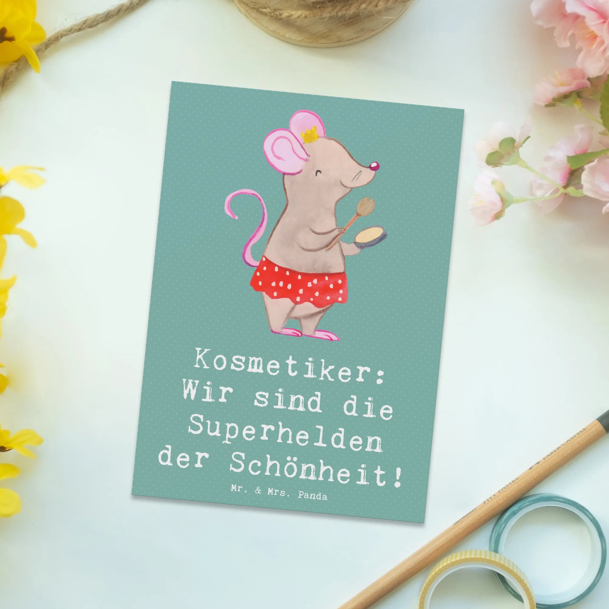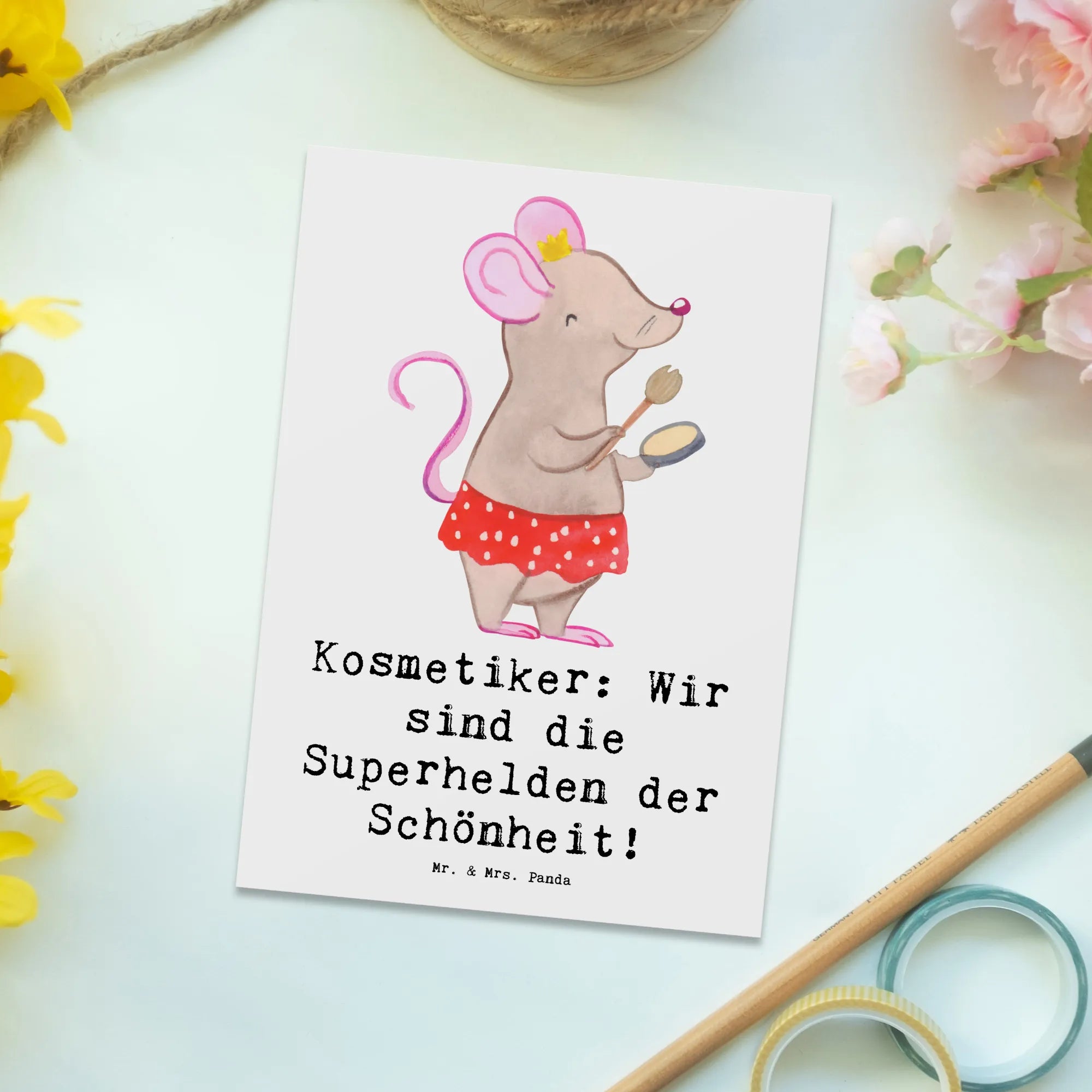Postcard Kosmetiker: Wir sind die Superhelden der Schönheit! - White