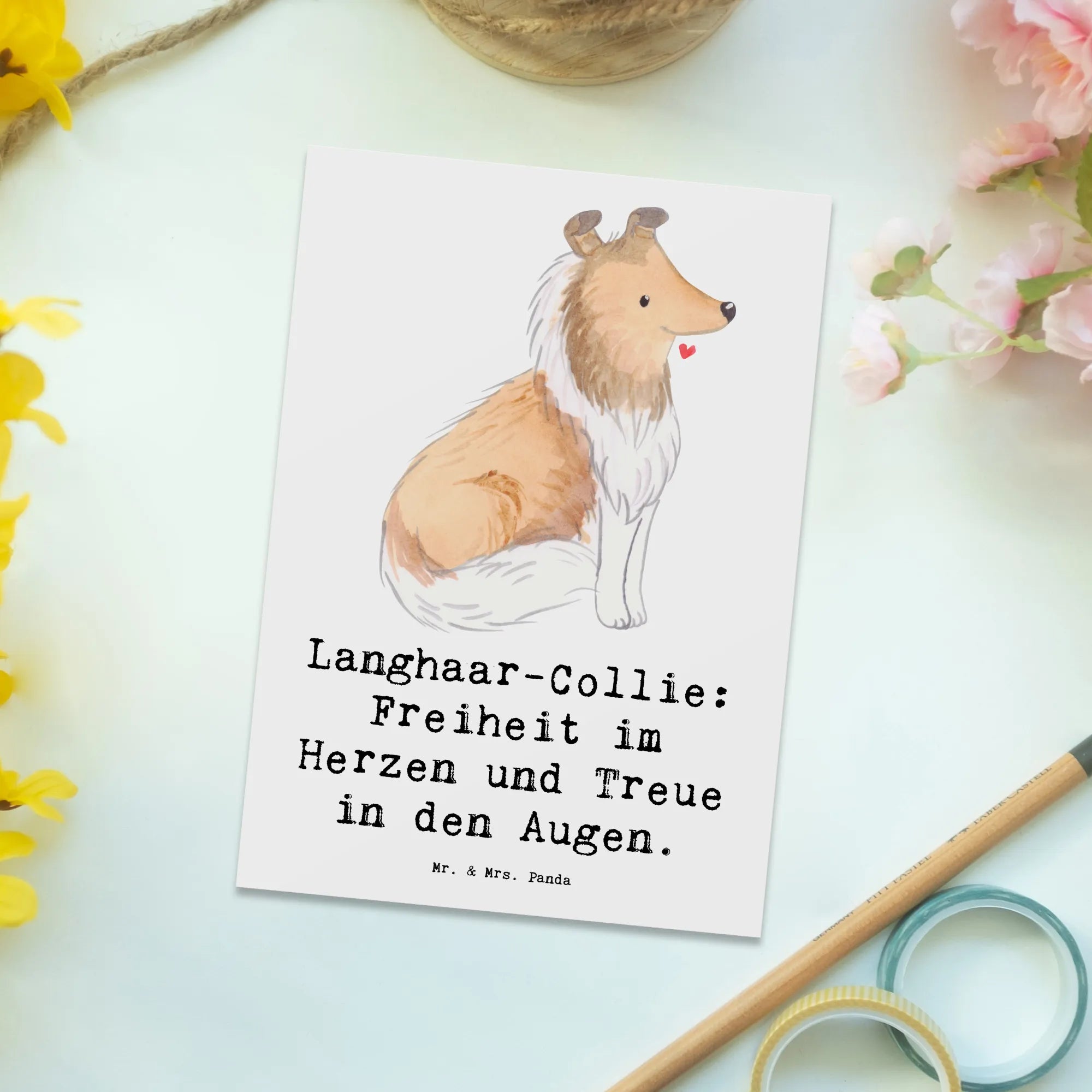 Postcard Langhaar-Collie: Freiheit im Herzen und Treue in den Augen. - White