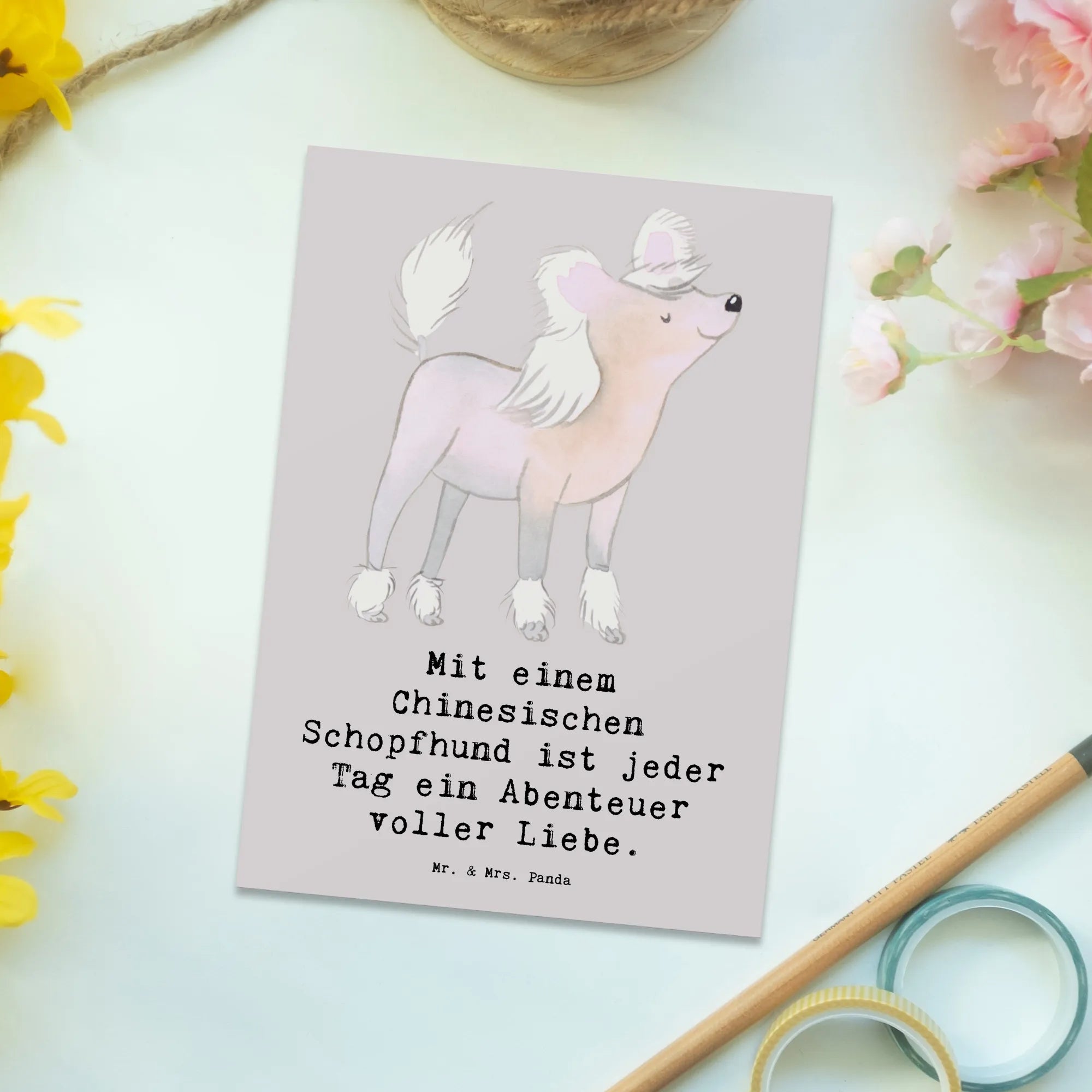 Postcard Mit einem Chinesischen Schopfhund ist jeder Tag ein Abenteuer voller Liebe. - White