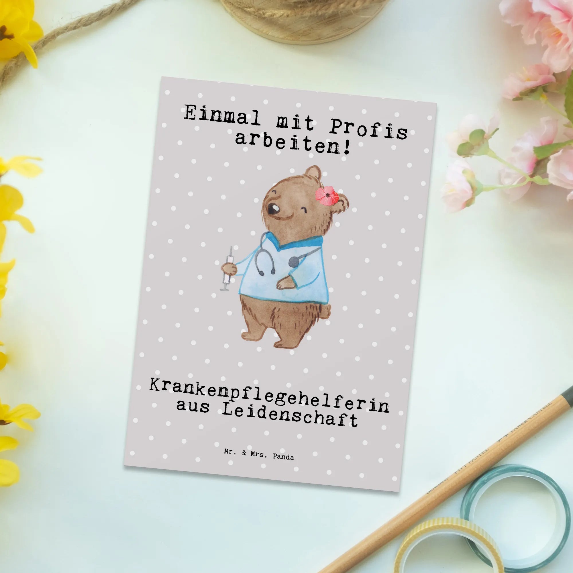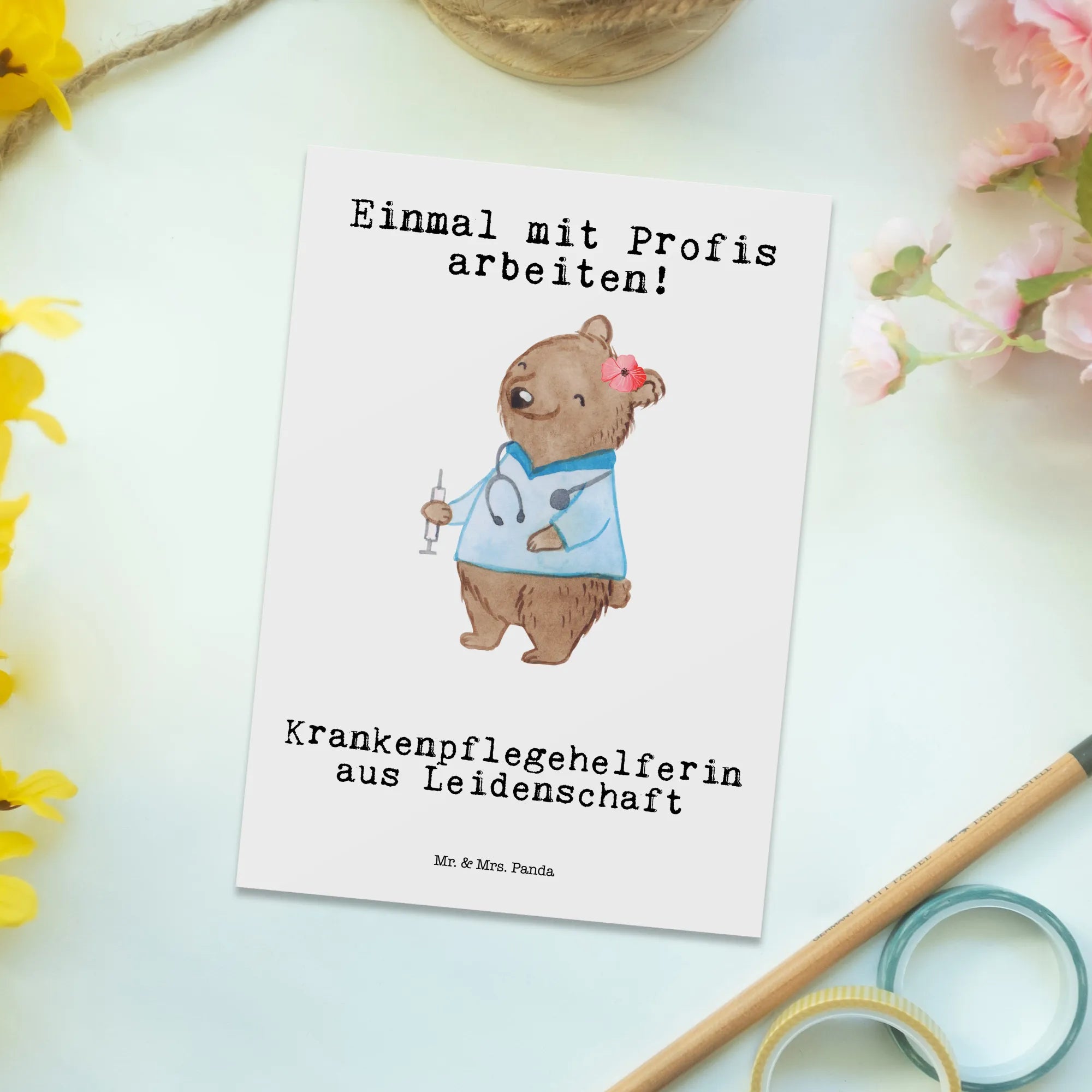 Postkarte „Krankenpflegehelferin aus Leidenschaft“ – Ein herzliches Danke von Mr. & Mrs. Panda