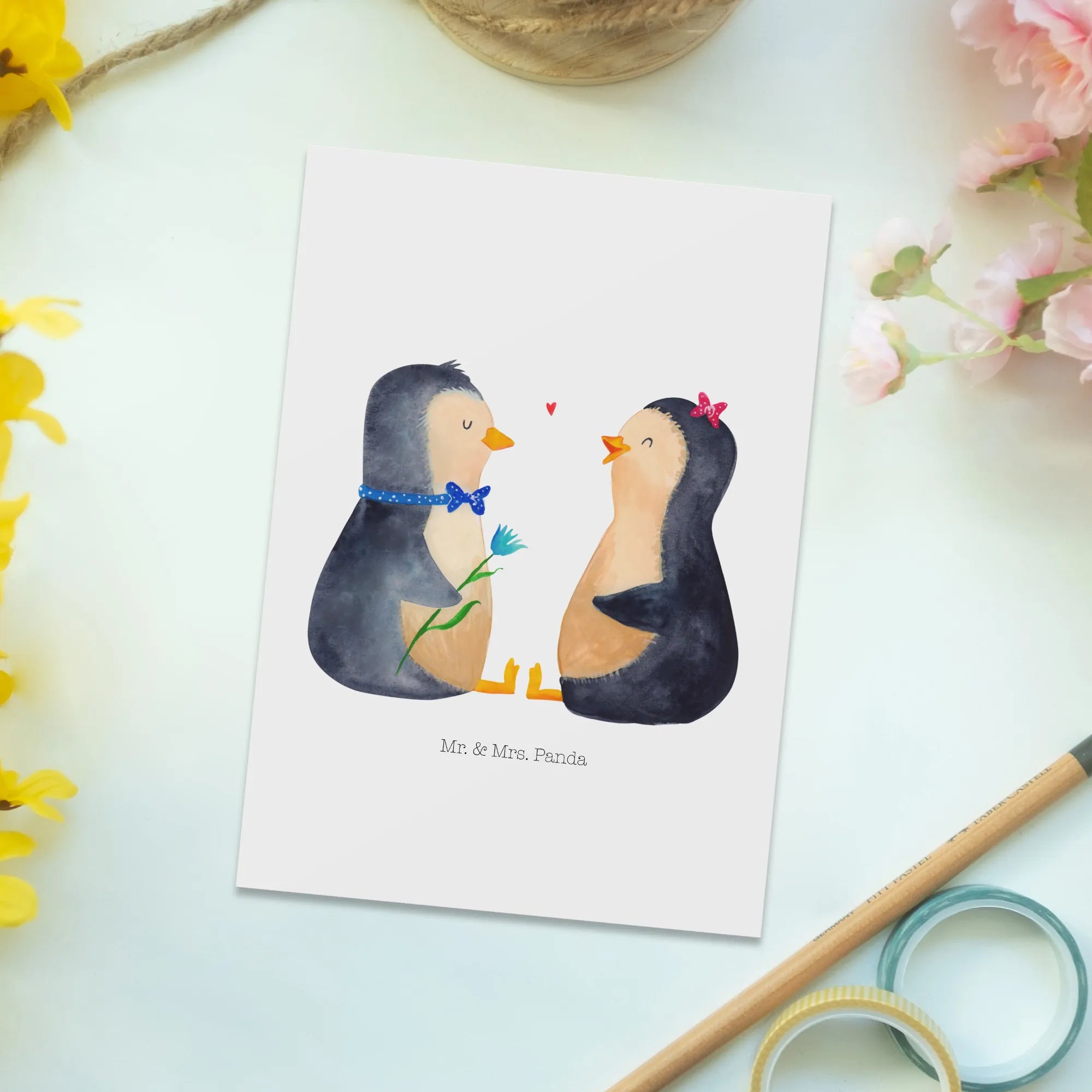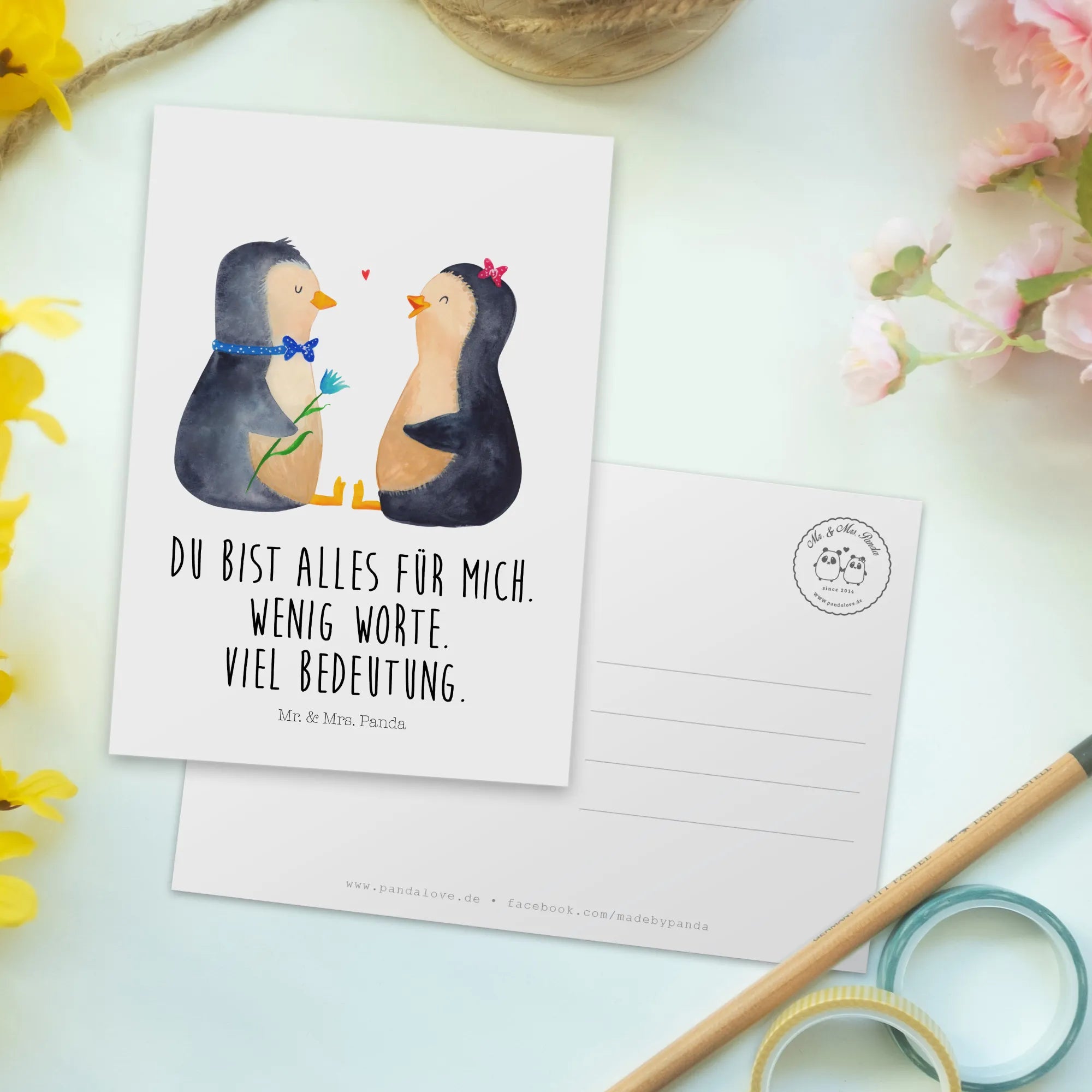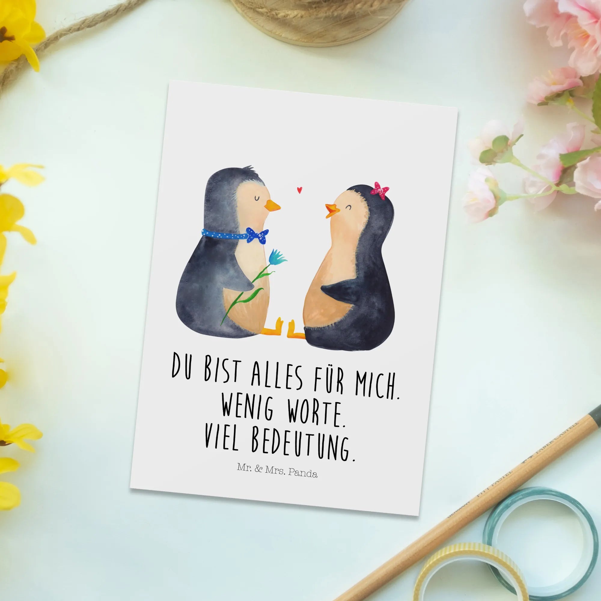 Introducing the delightful Postcard featuring a charming Penguin Couple from the beloved Penguin - Collection by Mr. & Mrs. Panda! This unique postcard is perfect for anyone looking to express their love and affection to a special someone. Whether it’s for an engagement, anniversary, wedding day, or just to say "I love you," this postcard captures the essence of true love with its adorable art.