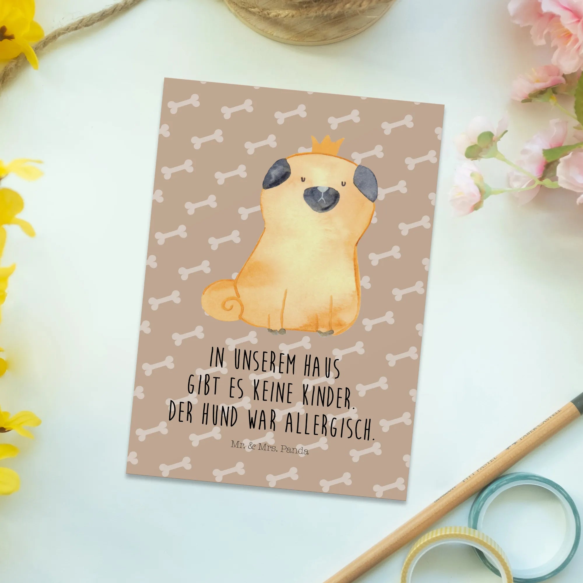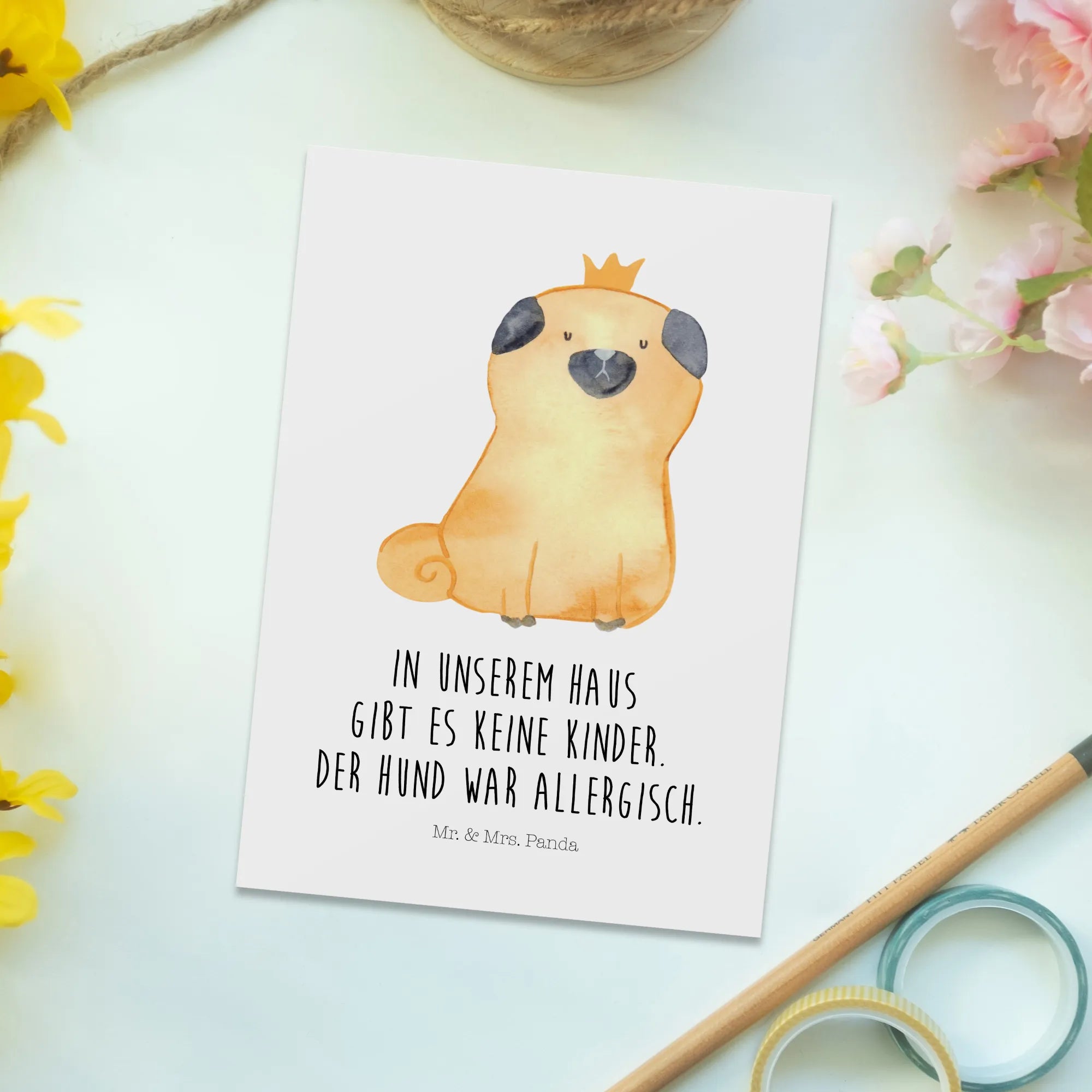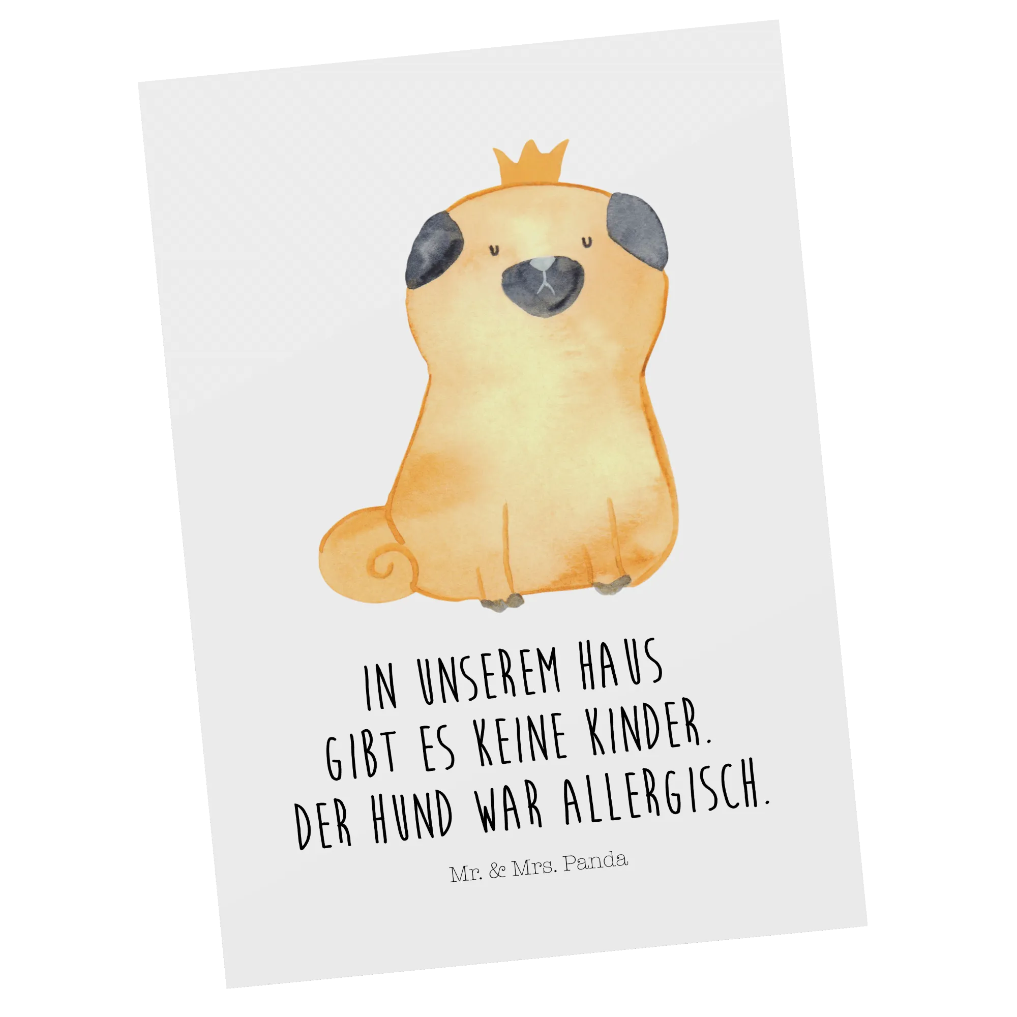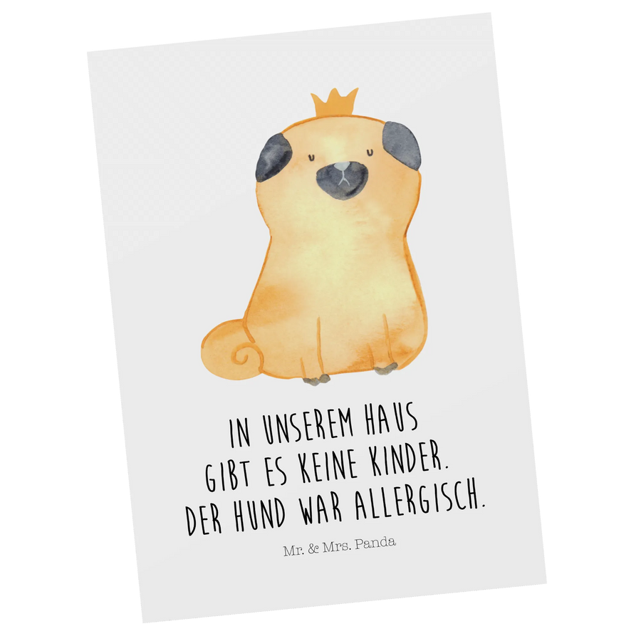 Postcard pug Crown - with a saying - White