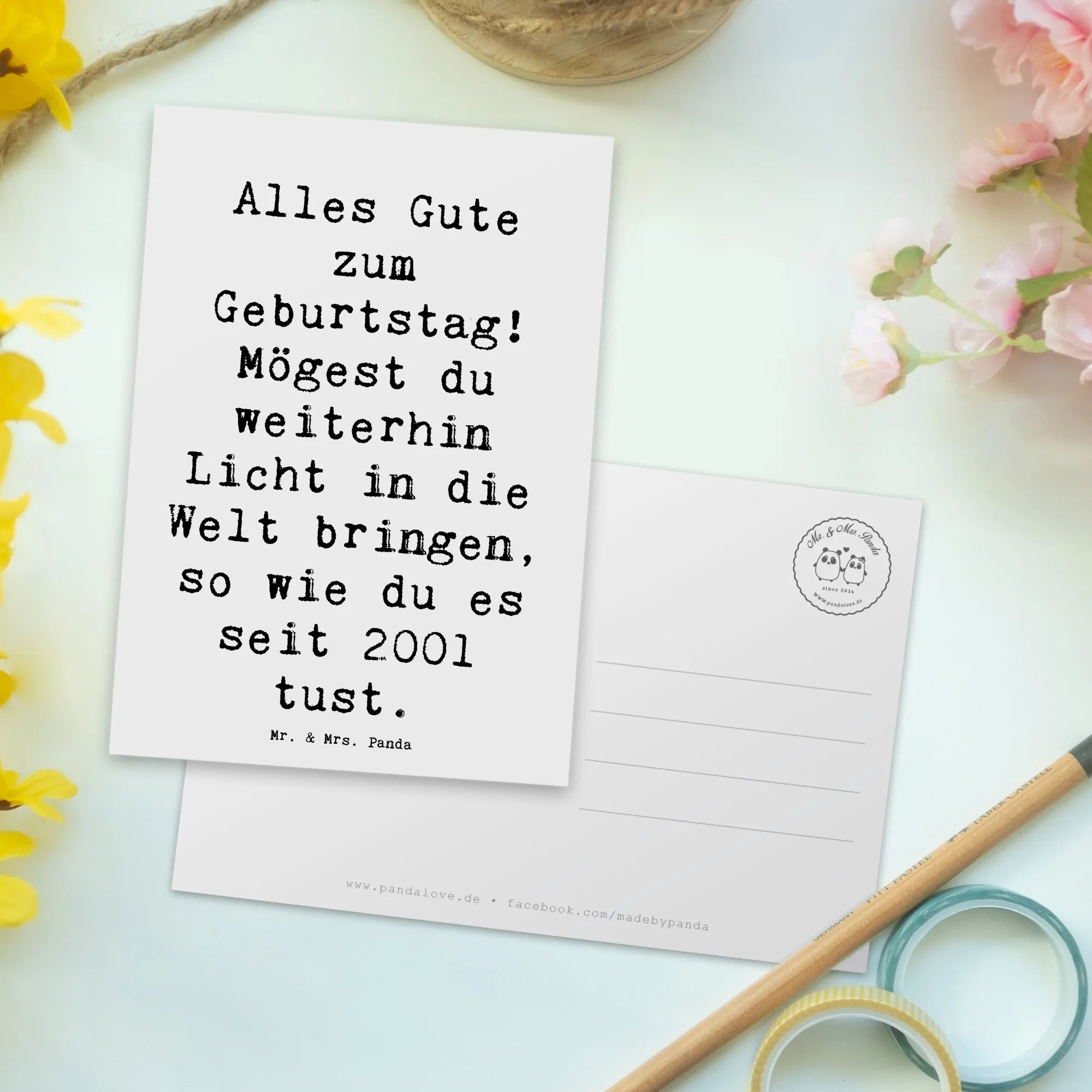 Our panda fans are also looking for: Alles Gute zum Geburtstag, Licht in die Welt bringen, seit 2001, herzlicher Geburtstagsgruß, besondere Momente feiern, liebevolle Geste, Anerkennung schenken, Freude machen, Geburtstagskind, positives Lebenszeichen