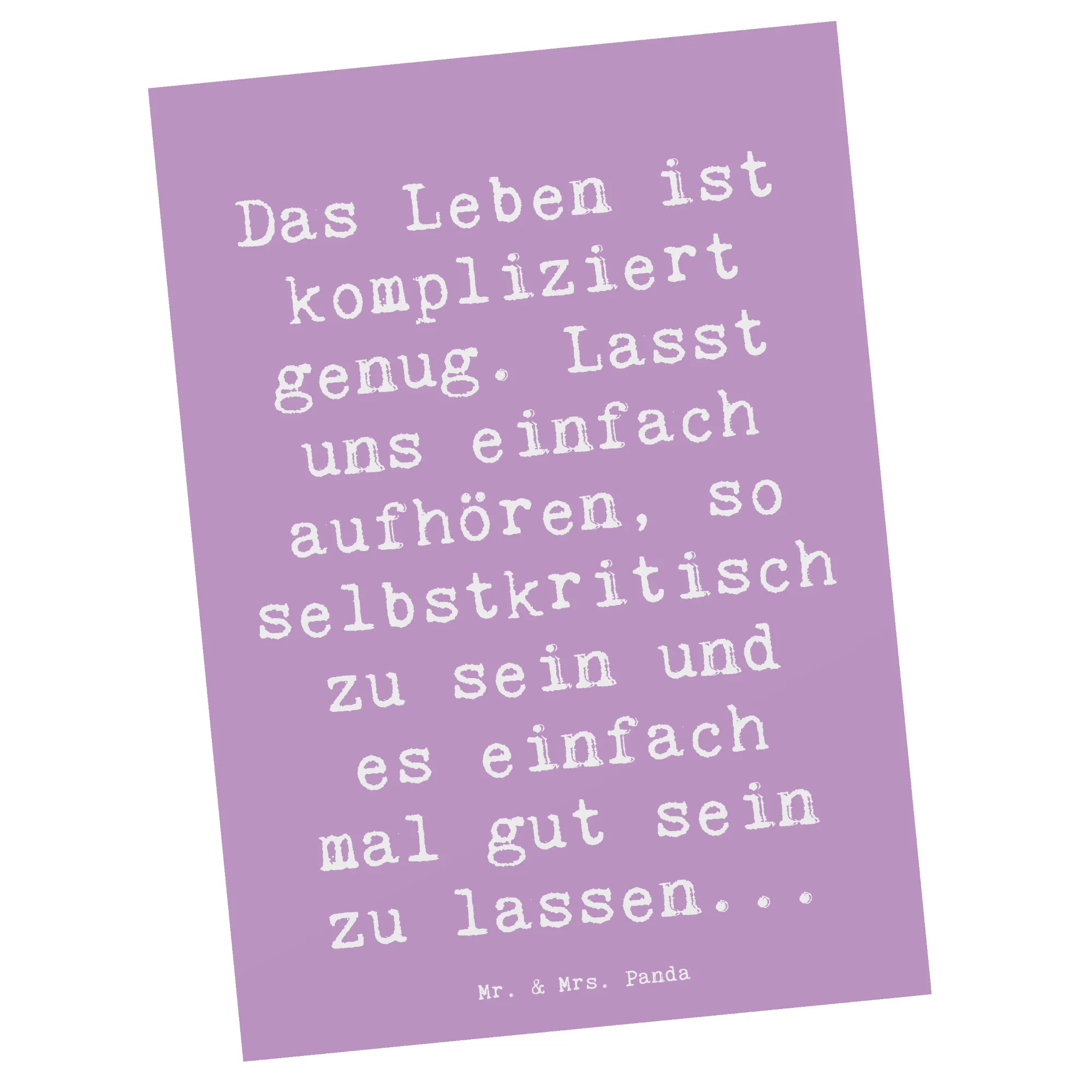 Postcard Saying Das Leben ist kompliziert genug. Lasst uns einfach aufhören, so selbstkritisch zu sein und es einfach mal gut sein zu lassen... - Sea Breeze