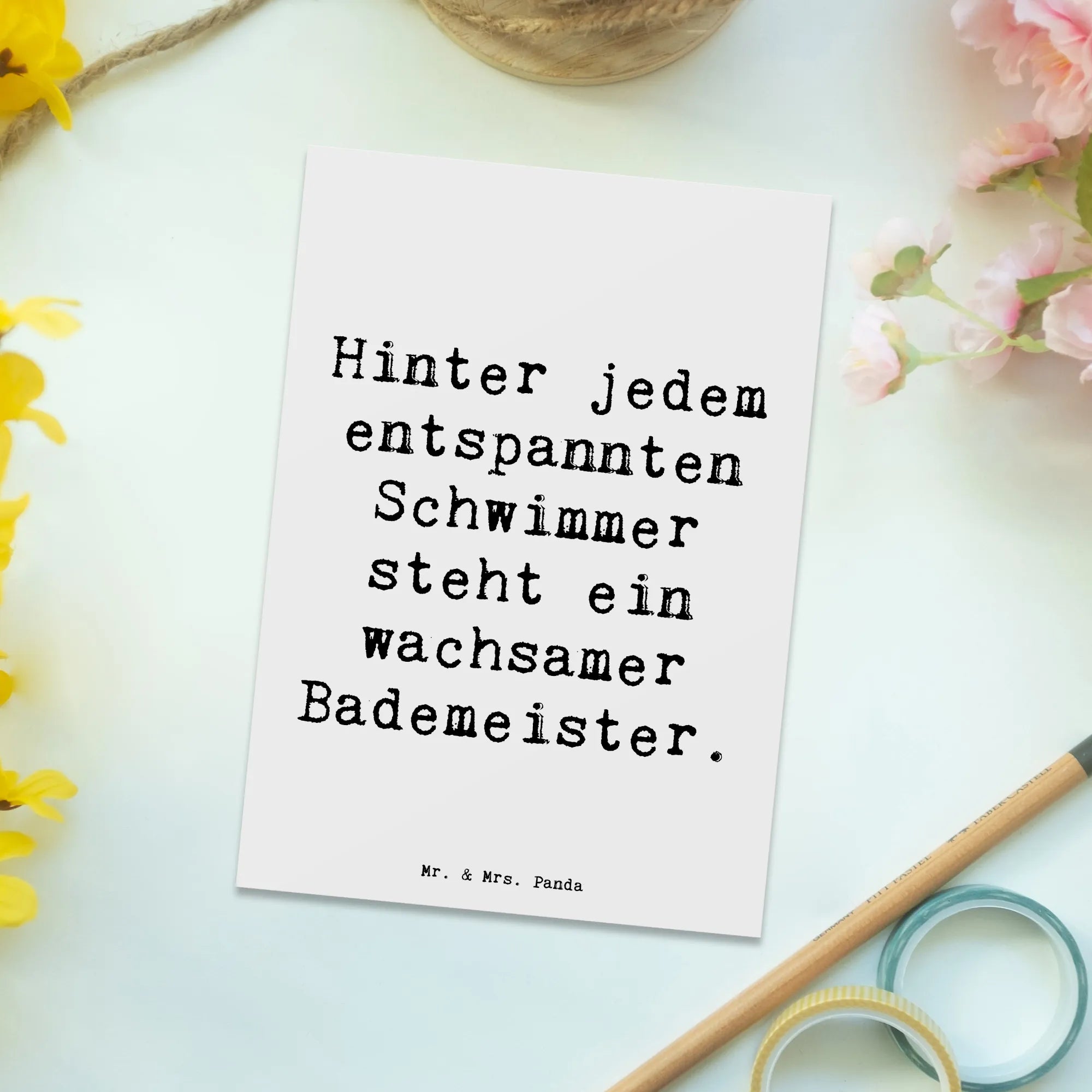 Postcard Saying Hinter jedem entspannten Schwimmer steht ein wachsamer Bademeister. - Sea Breeze