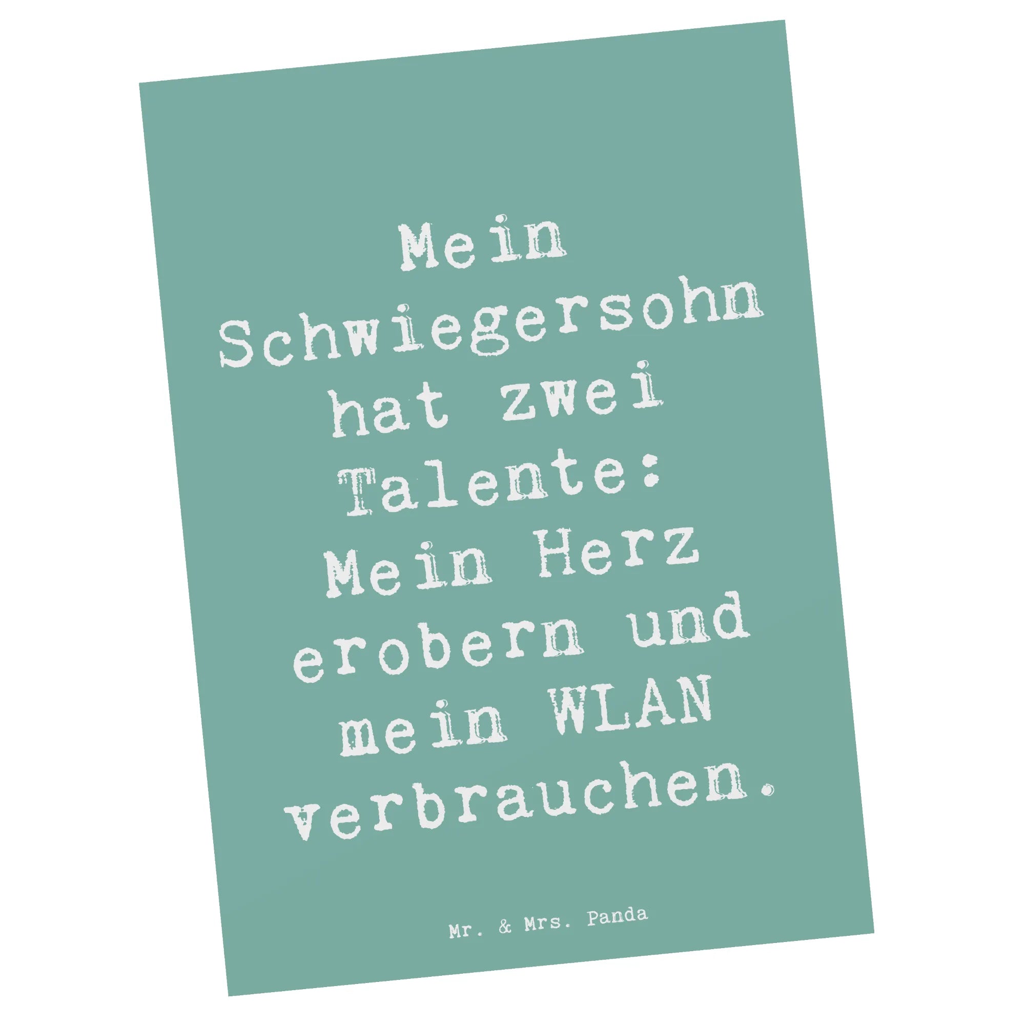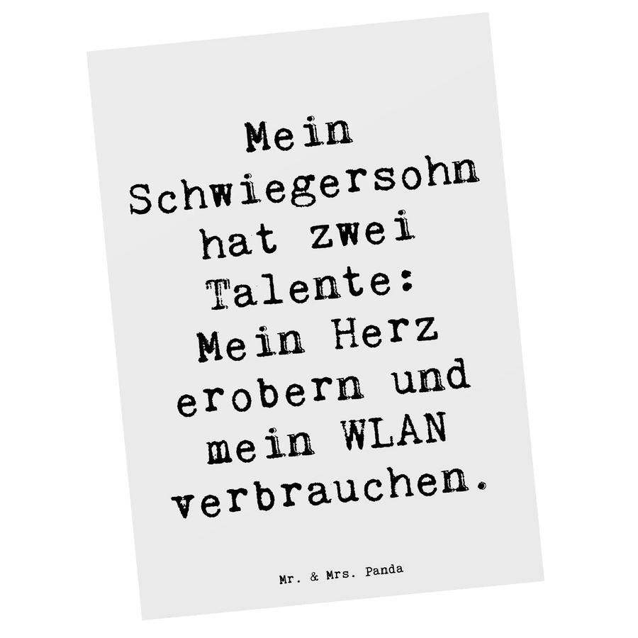 Postcard Saying Mein Schwiegersohn hat zwei Talente: Mein Herz erobern und mein WLAN verbrauchen.