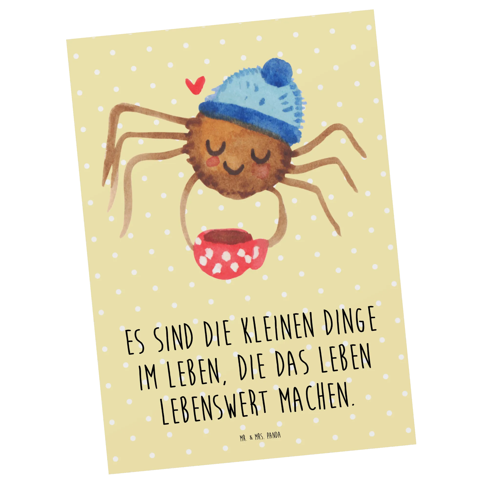 Postcard Spider Agathe coffee - with saying - Pastel Yellow