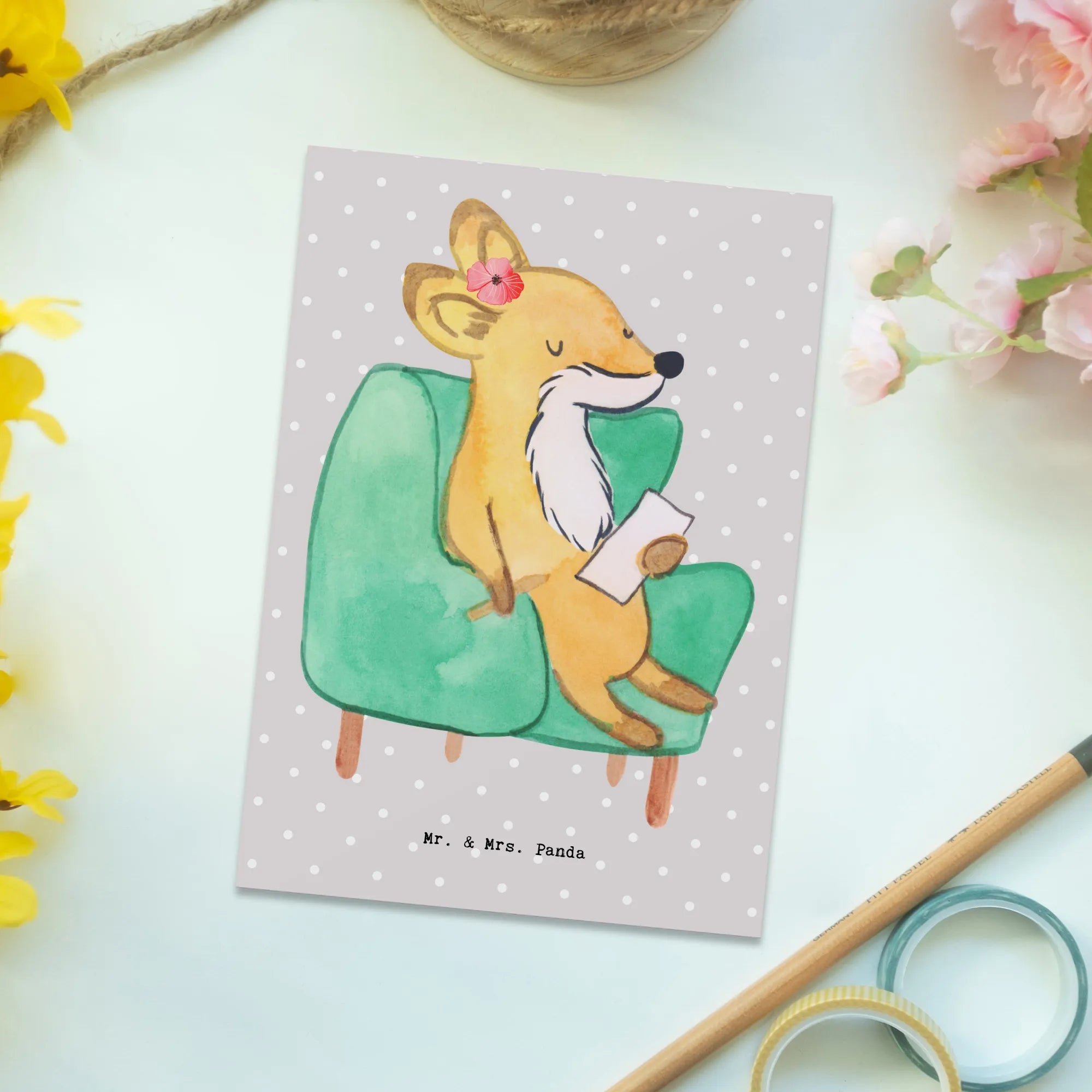 Finding the perfect gift for a therapist can be a delightful challenge! Our Mr. & Mrs. Panda Postcard featuring a charming therapist motif is the ideal solution. This unique postcard is not just a simple card; it holds a special message underneath its adorable design. With a beautifully hand-drawn illustration of a female fox sitting attentively in an armchair, ready to lend an ear, it perfectly symbolizes the nurturing and attentive nature of therapy. This postcard is a heartfelt way to celebrate every occasion in the life of a therapist, whether you're recognizing a job start, a well-deserved promotion, an anniversary, or saying farewell to a cherished colleague.