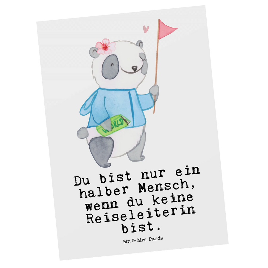 Suchst Du eine liebevolle Geschenkkarte oder Grußkarte für eine besondere Reiseleiterin? Unsere Postkarte aus der Berufe-Kollektion von Mr. & Mrs. Panda bringt genau das richtige Maß an Wärme, Humor und Stil mit. Das Motiv zeigt einen süßen Panda in einem Windbreaker, der eine Fahne hochhält, damit er gefunden wird, und einen Städteplan in der Hand trägt. Dazu der freche Spruch: „Du bist nur ein halber Mensch, wenn du keine Reiseleiterin bist.“