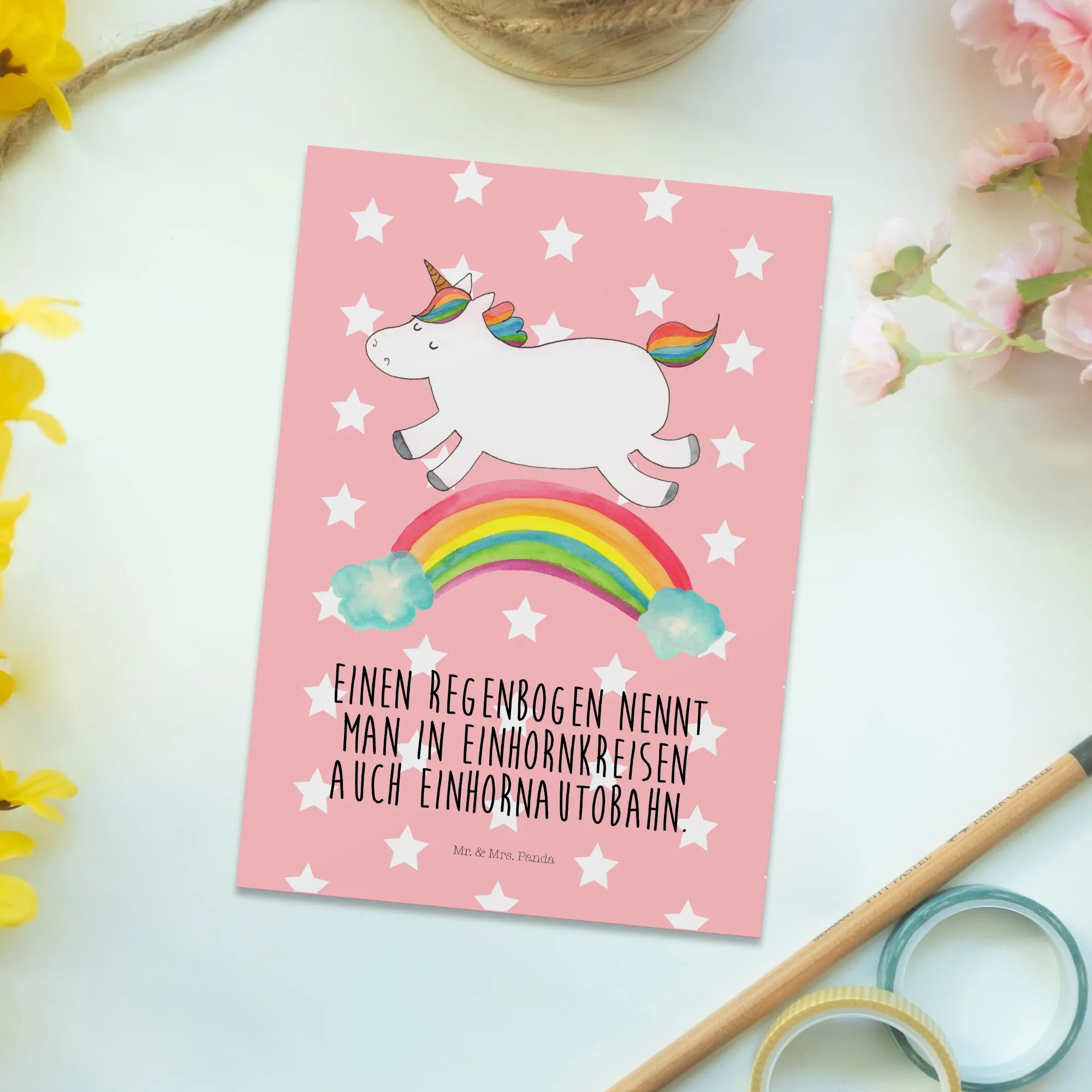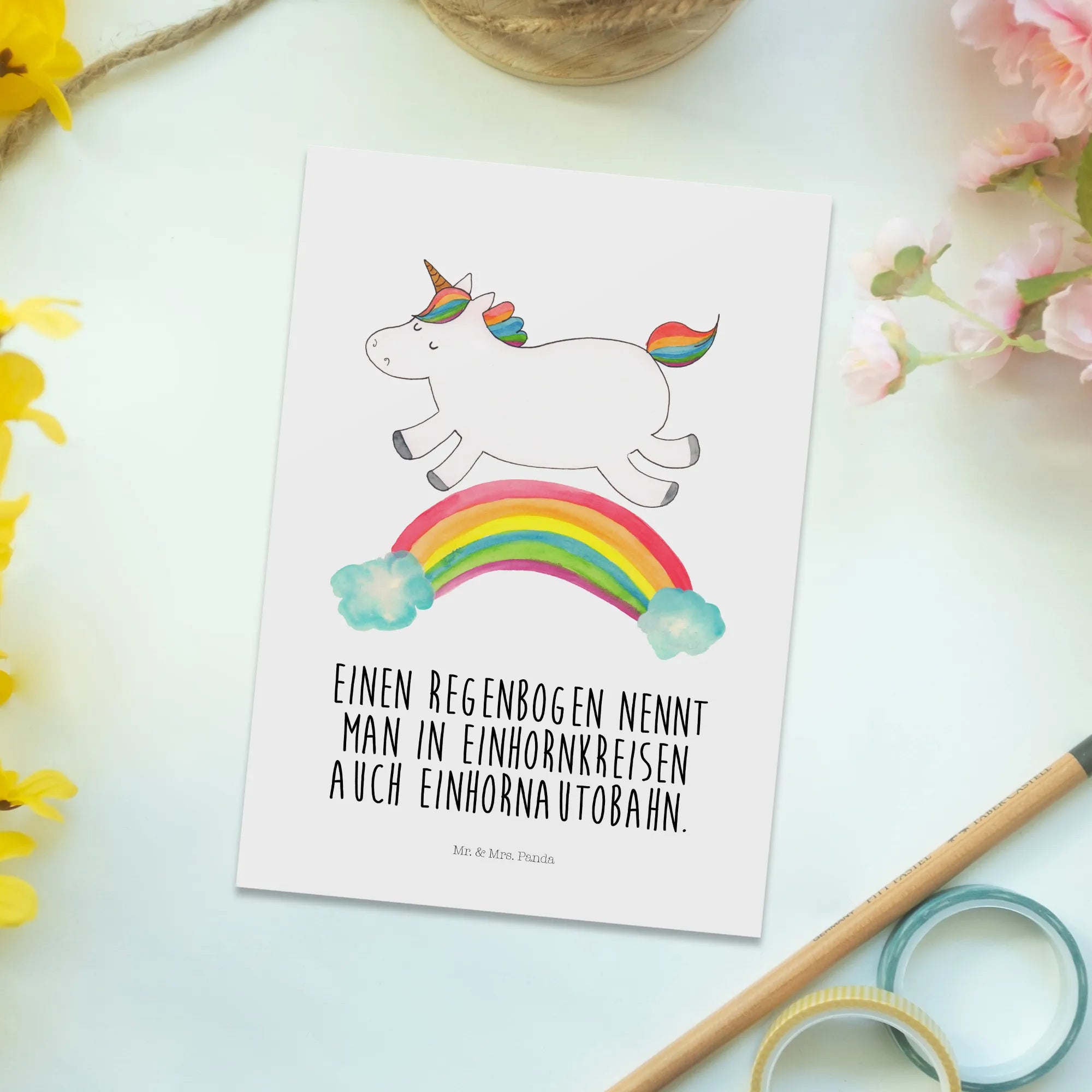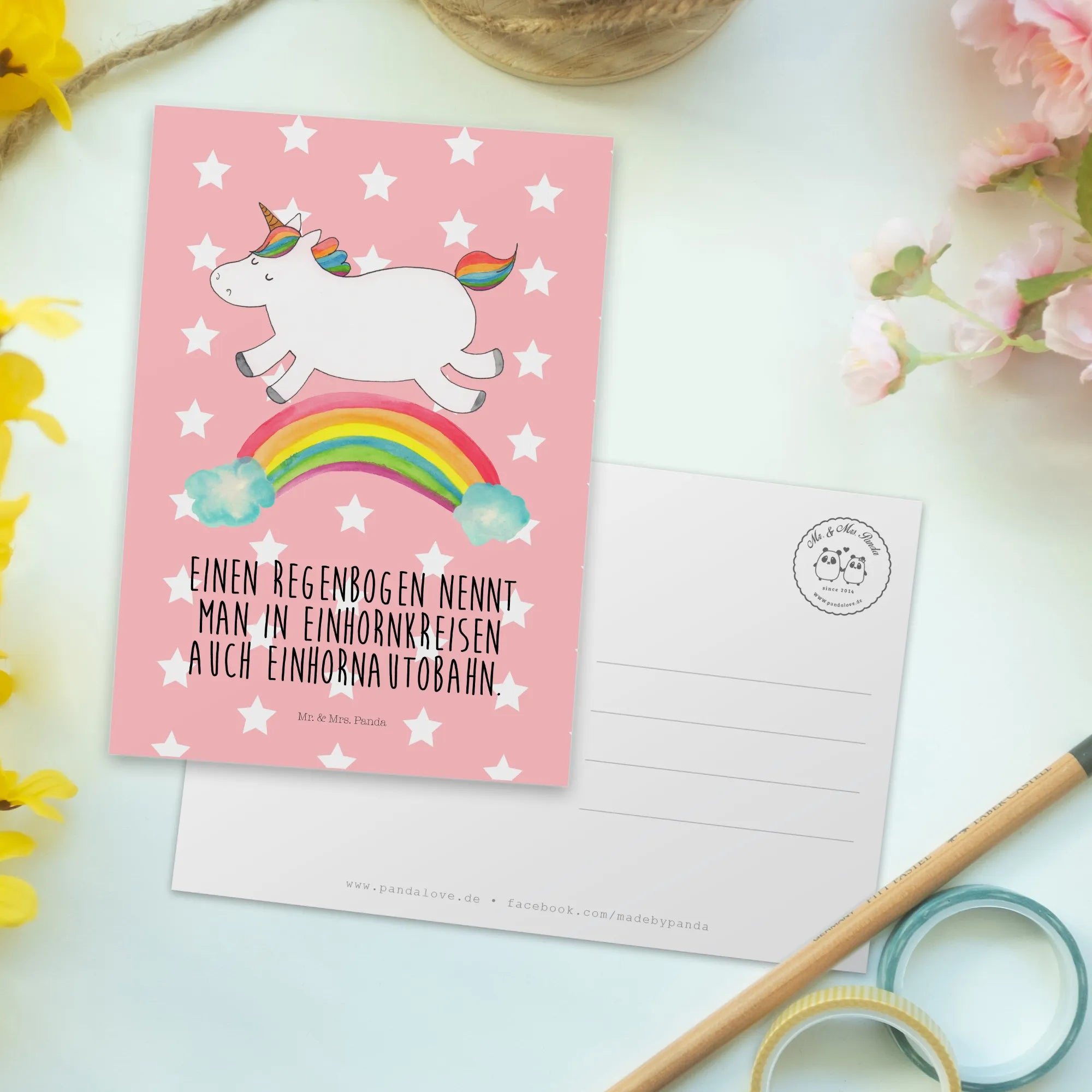 Designed with love and care in Hanover, Germany, each card reflects the magical artistry of Mrs. Panda, who draws every motif by hand. This makes the Unicorn Rainbow Postcard a unique treasure that stands out from typical gift cards. It presents an opportunity to share heartfelt sentiments, laughter, and whimsicality with those loved ones who admire the extraordinary.