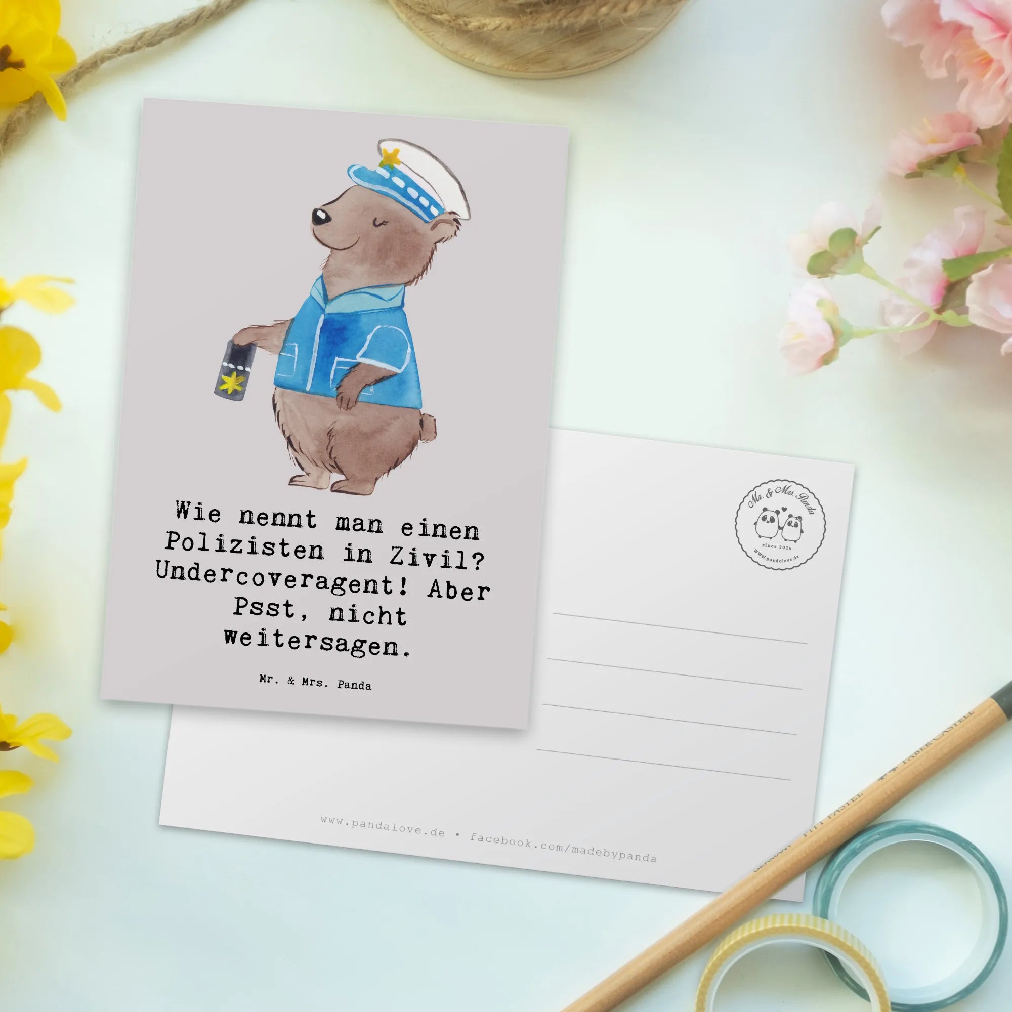 Postcard Wie nennt man einen Polizisten in Zivil? Undercoveragent! Aber Psst, nicht weitersagen. - Grey Pastel