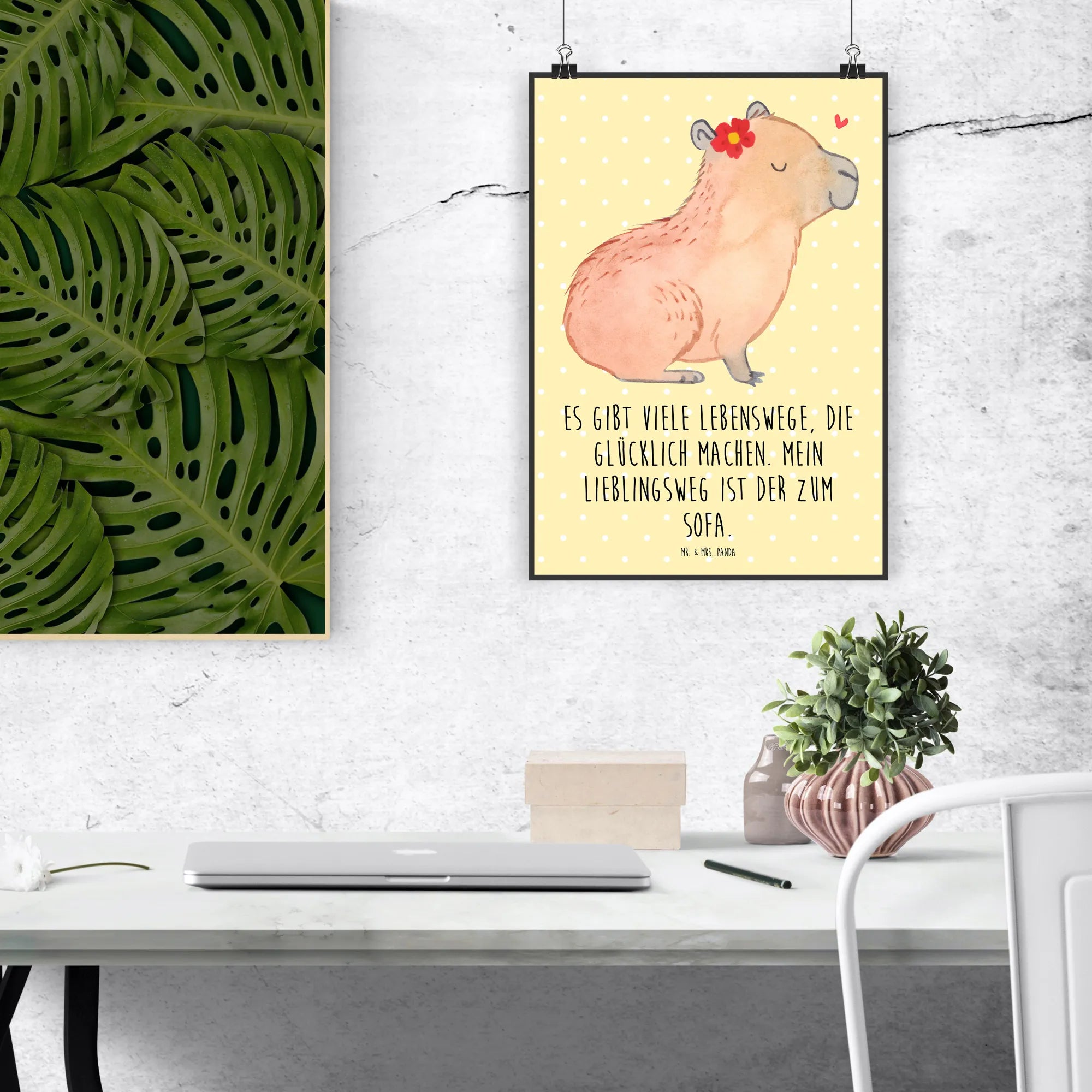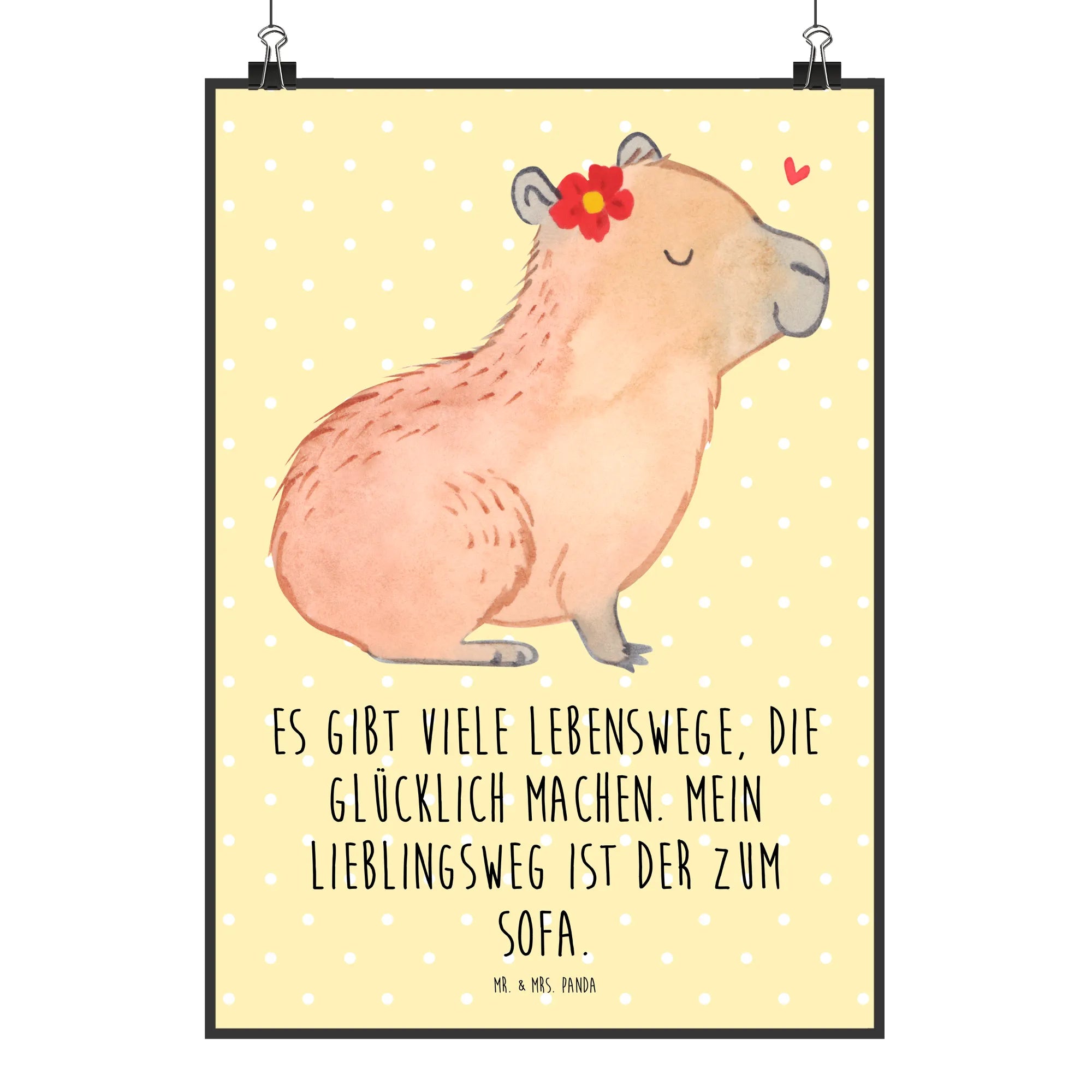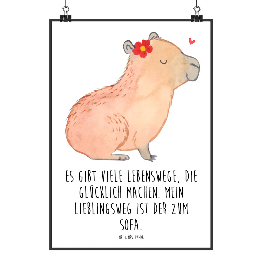 Allow us to present the charming Capybara Flower! The relaxed capybara, eyes closed and smiling, is gracefully adorned with a vibrant red flower featuring a cheerful yellow center. Above it, a floating heart showcases the love and warmth of life’s little moments. This motif is a picturesque representation of our belief that Es gibt viele Lebenswege, die glücklich machen. Mein Lieblingsweg ist der zum Sofa. So let’s celebrate the joy of pure stillness and gentle happiness in our everyday lives!