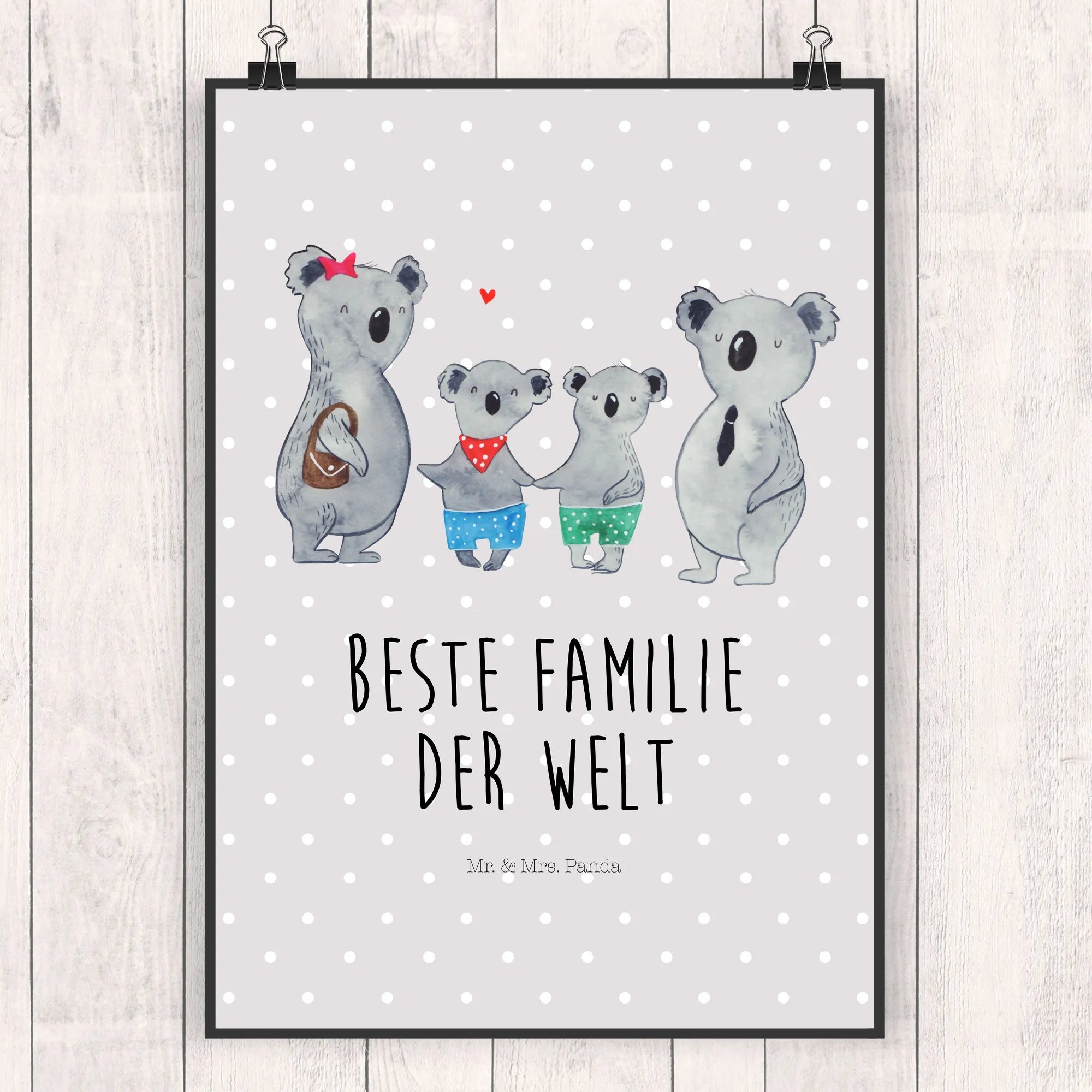 Poster Koala family with two kids - DIN A5 - with saying - White