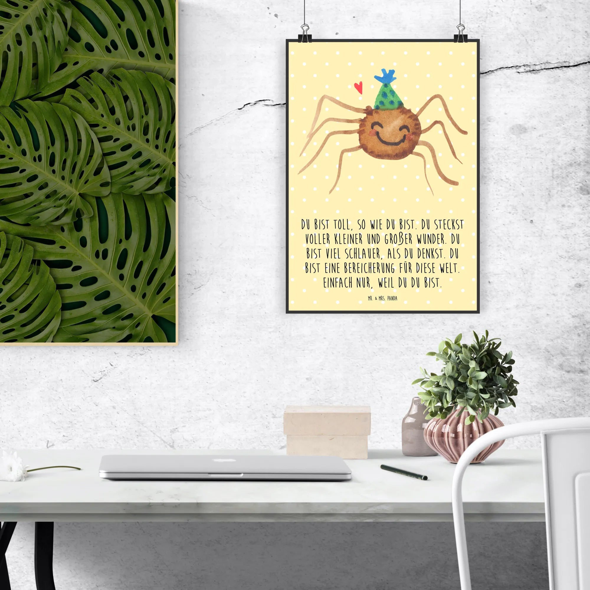Poster Spider Agathe Party - DIN A0 - with saying - Yellow Pastel