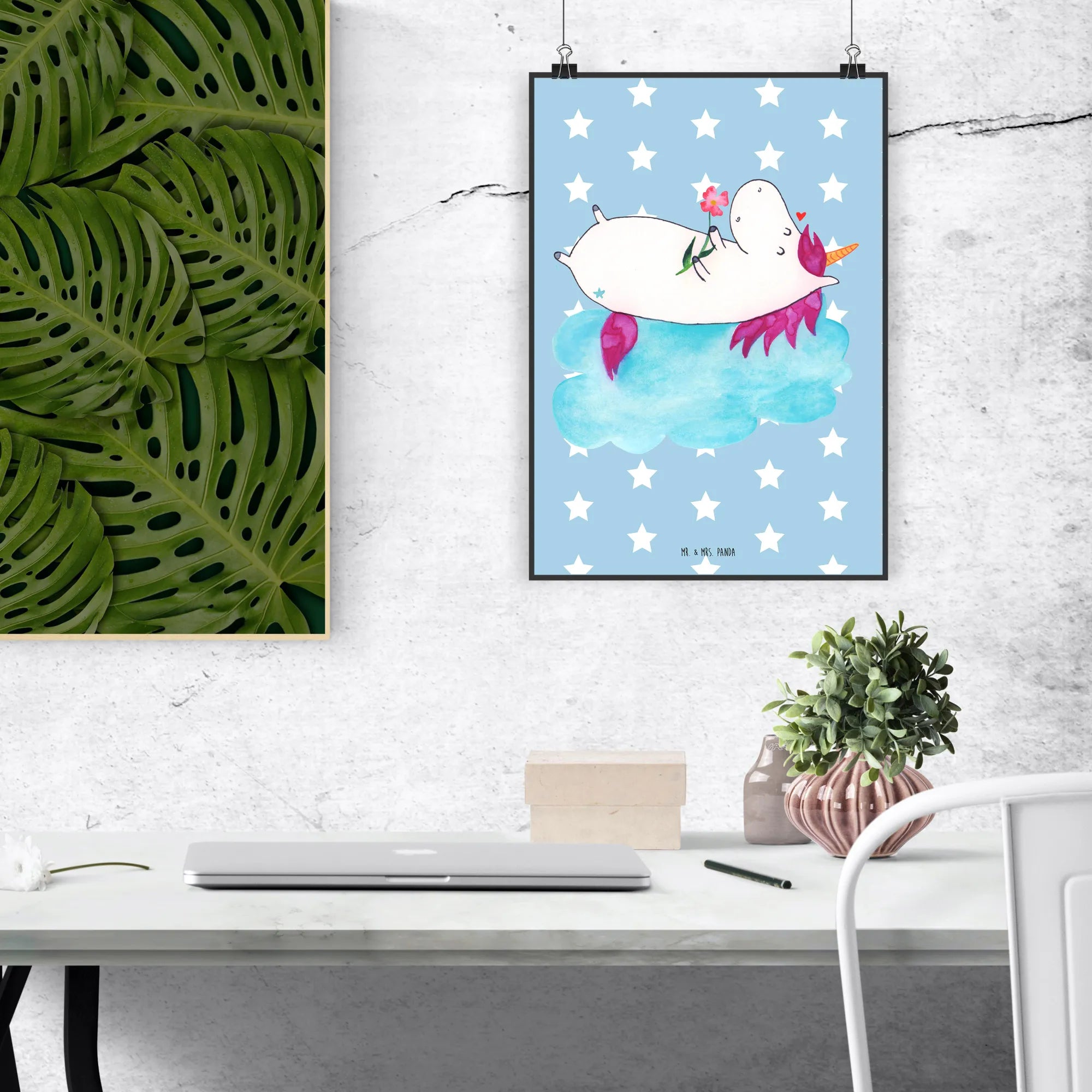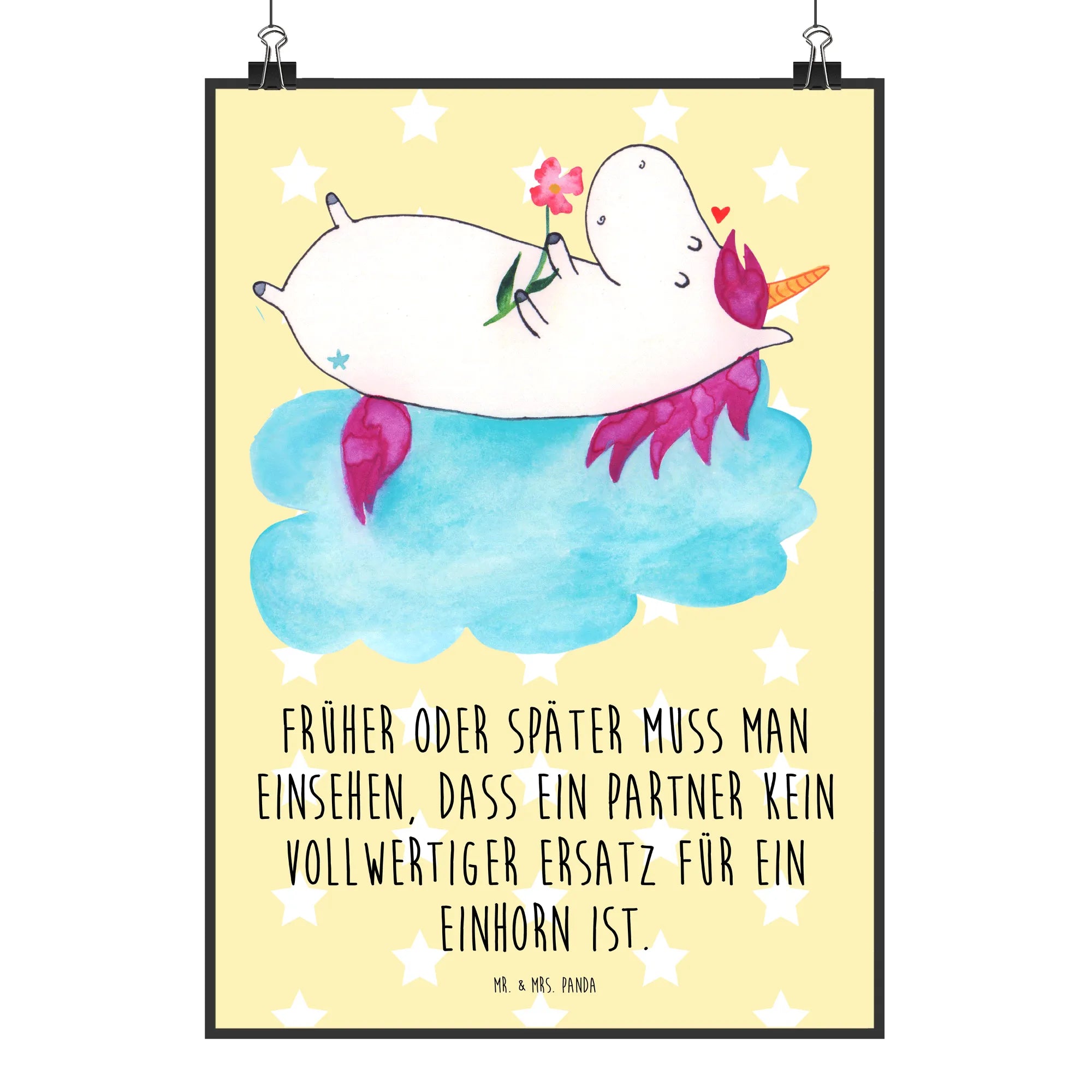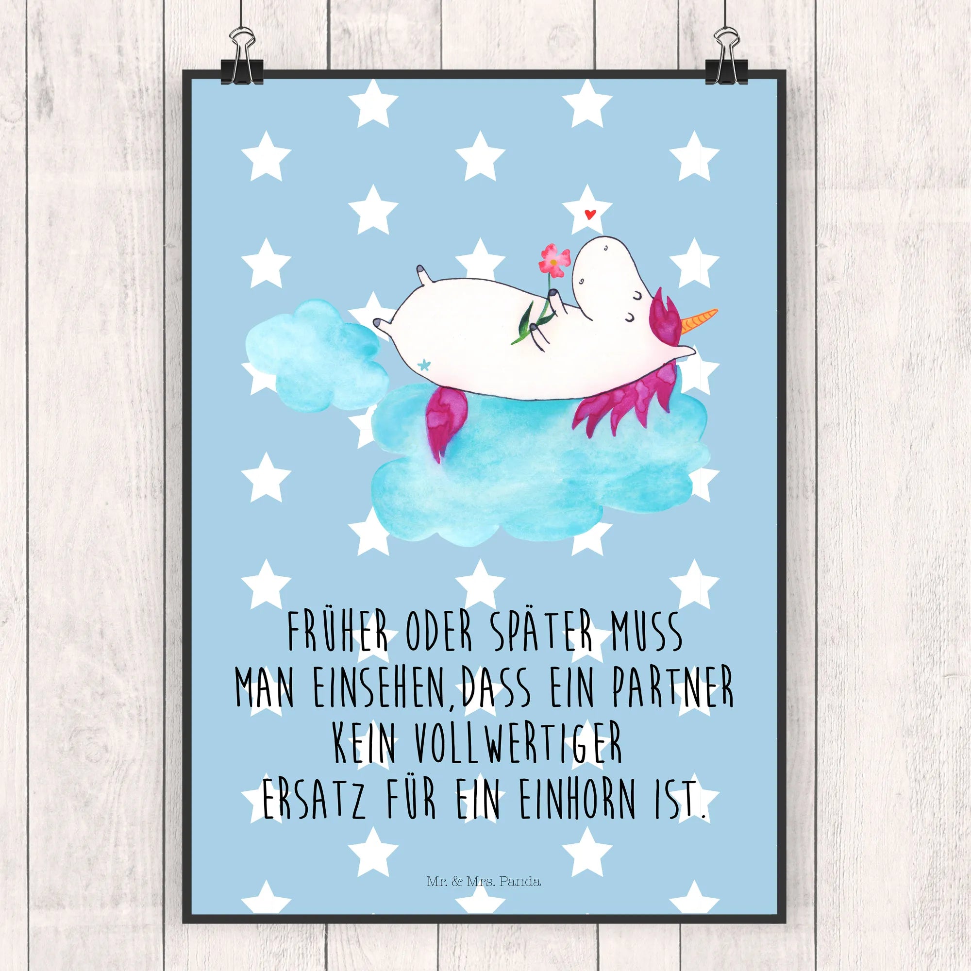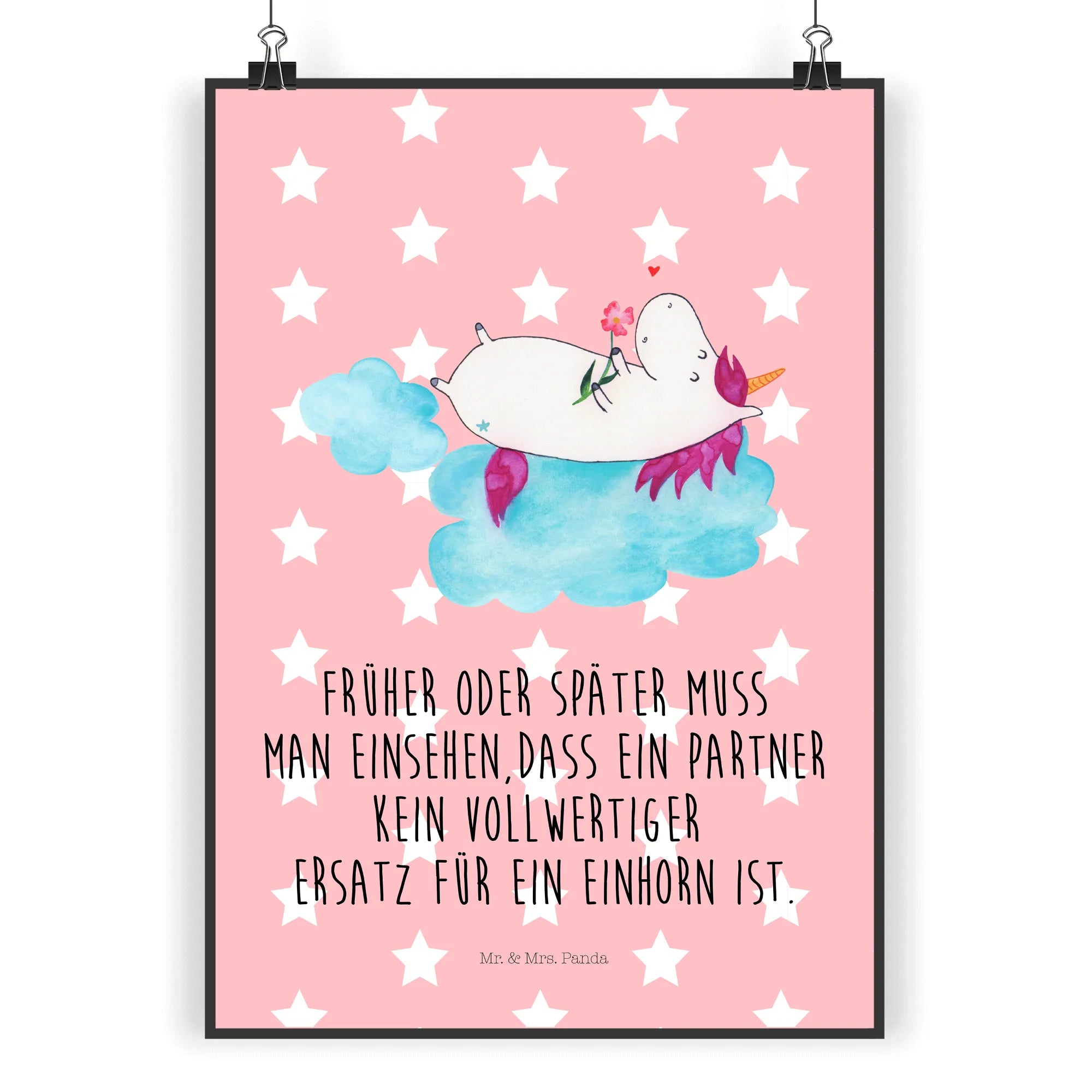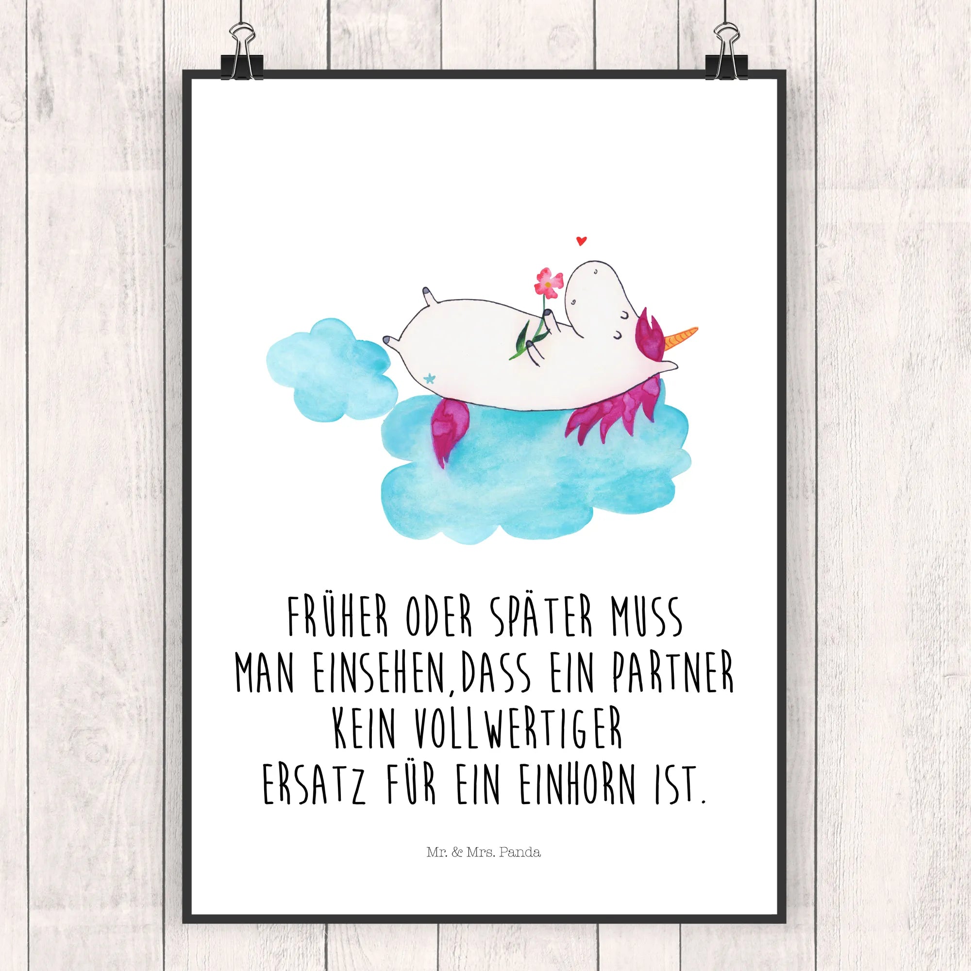 Mr. & Mrs. Panda – Poster „Einhorn verliebt auf Wolke“
