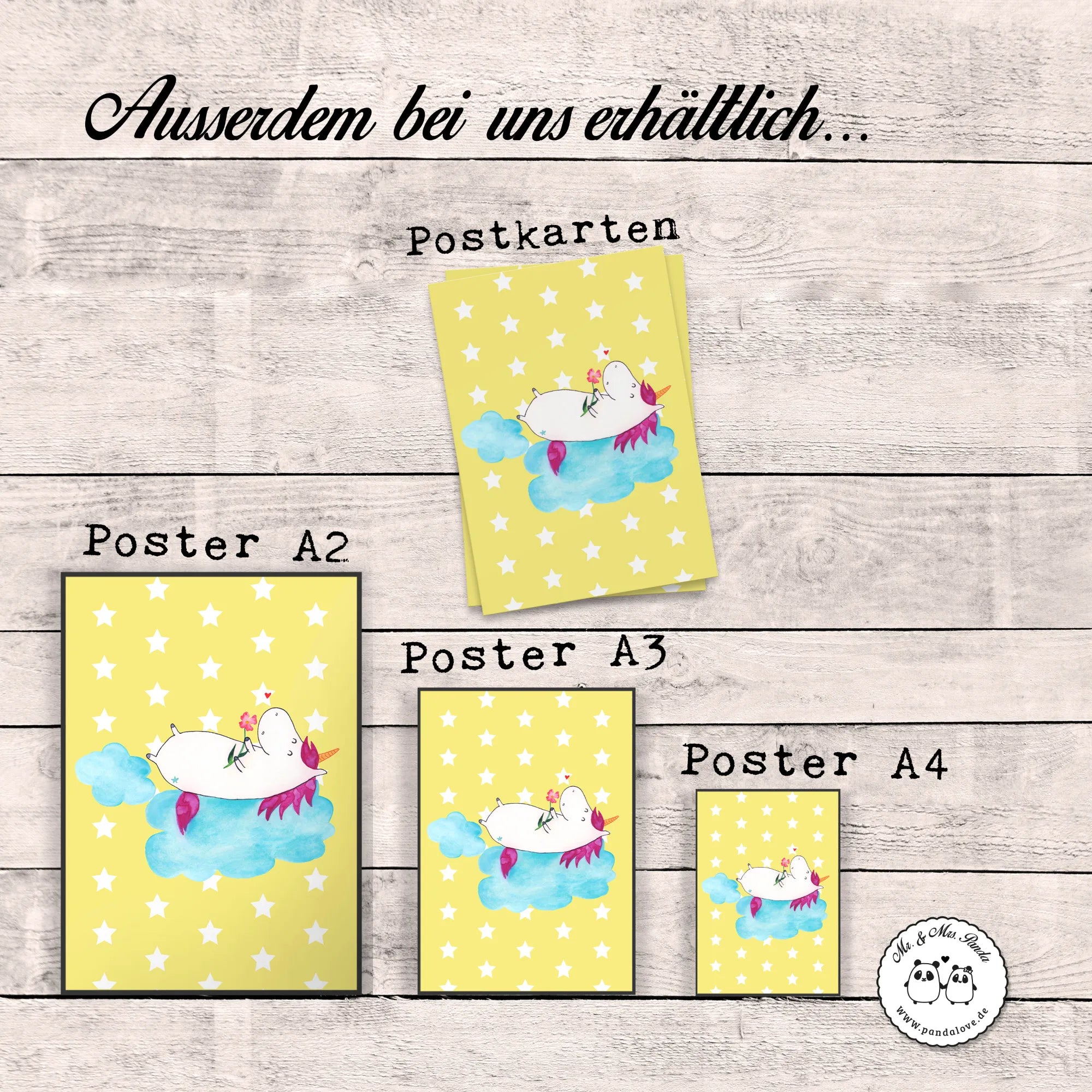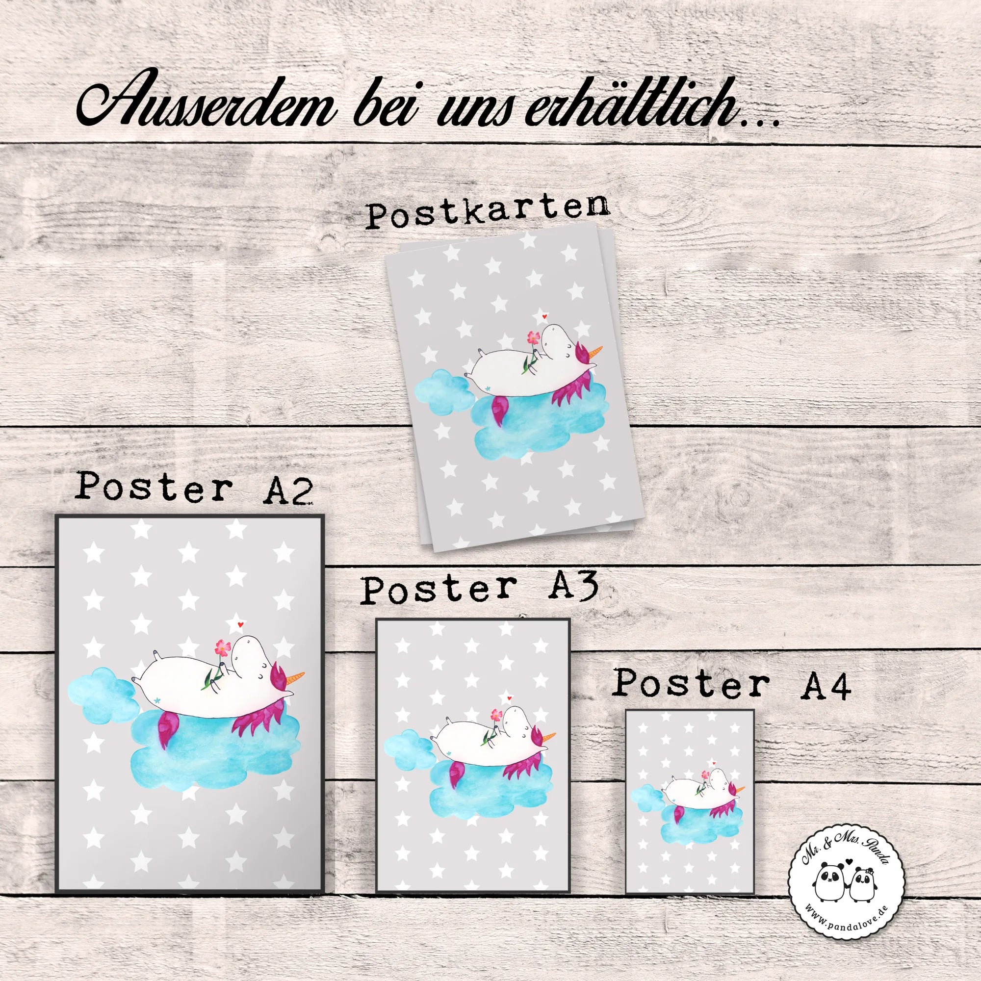 Unser liebevoll handgezeichnetes Einhorn-Poster aus der Einhorn - Kollektion bringt zauberhafte Stimmung an Deine Wände. Das verträumte Einhorn sitzt verliebt auf einer Wolke und strahlt mit sanften Aquarellfarben, die von Mrs. Panda persönlich entworfen wurden. Dieses Design ist perfekt als Wandposter, Kinderposter oder Deko Bild für Schlafzimmer und Kinderzimmer.