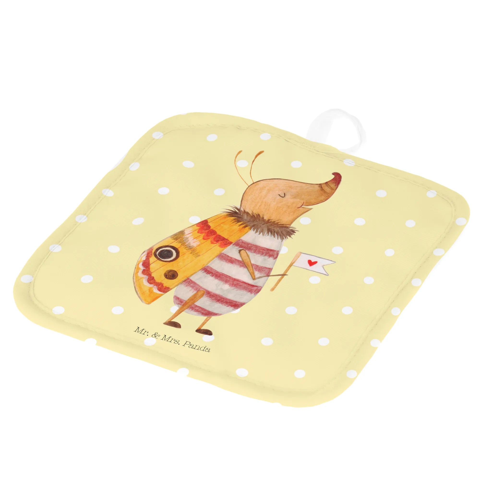Pot holder Moth flag - with a saying - Pastel Yellow