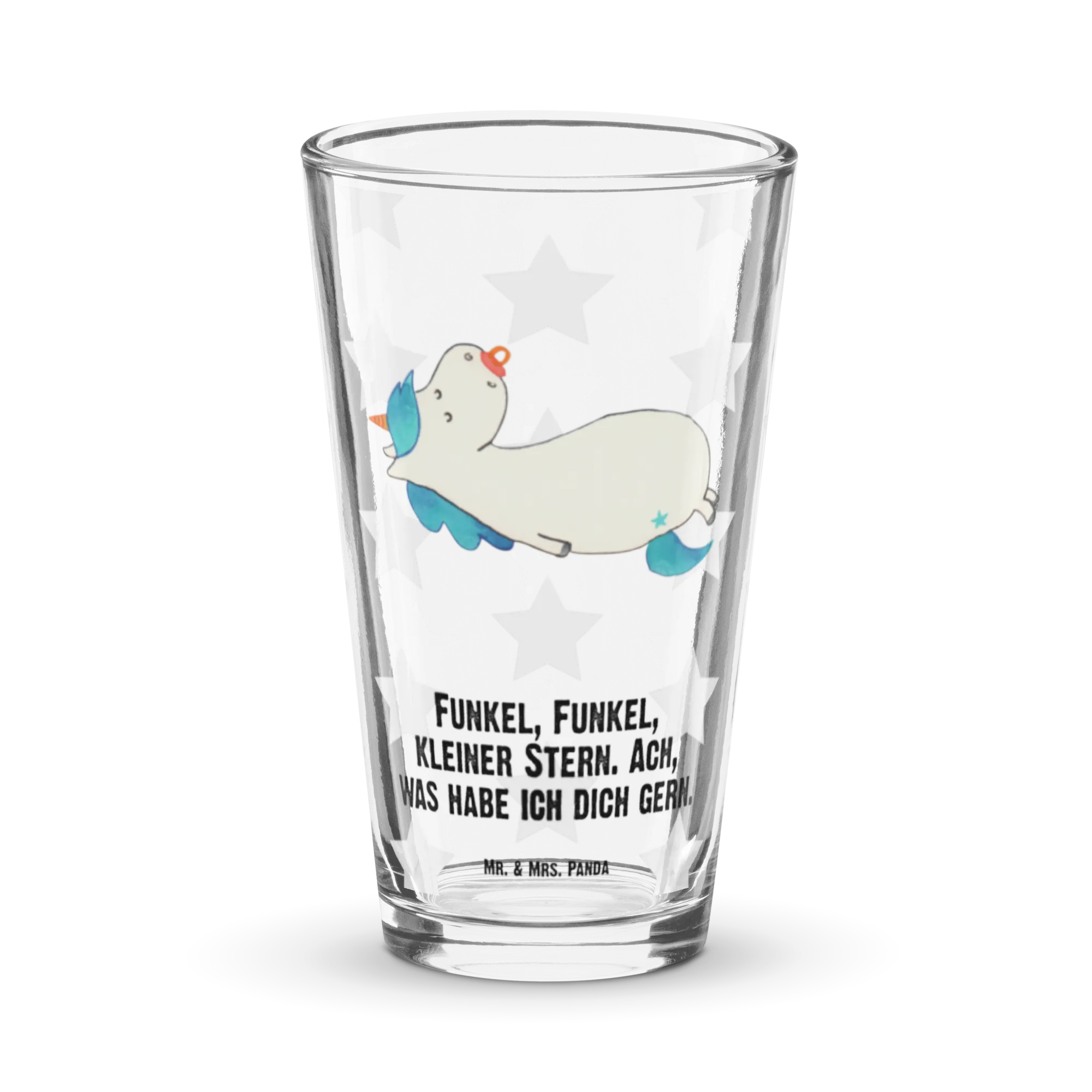 Welcome to a world of wonder with our adorable unicorn baby motif! Picture a charming little infant, sound asleep, with a pacifier hugging its mouth—a pure sight of tranquility. The saying 'Funkel, Funkel, kleiner Stern. Ach, was habe ich dich gern,' perfectly captures the joy and love a mother feels for her newborn. This design is not just for looks; it's a perfect gift for those magical moments of birth, merging whimsy with practicality. It tells a story of new beginnings, hopes, and dreams, wrapped in pastel colors and sweet innocence. Whether it’s a gift for your toddler or a thoughtful surprise for a friend, this unicorn motif is a treasure that aligns beautifully with the love and joy that such a wonderful occasion brings.