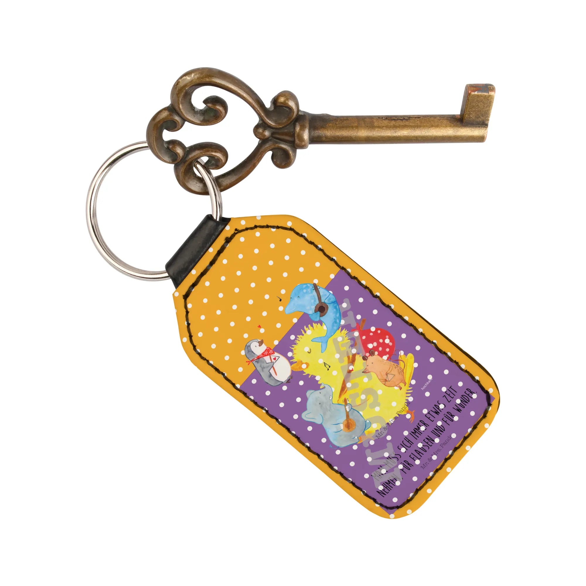 Elevate your daily routine with the enchanting Rectangular Key Ring from Mr. & Mrs. Panda! Sized at 70 mm by 40 mm (3 inch x 2 inch), this classy accessory is made out of luxurious synthetic leather and designed with adorable illustrations and motivational sayings that embody happiness. It’s more than just a handy key holder; it's a small token of good luck to brighten your everyday life. Perfect for keys or as a little charm for your handbag, this key ring is a lovely gift option for friends and family or as a cheerful souvenir of special moments. Gift-wrapped beautifully, it adds an extra touch of thoughtfulness. Keep your keys organized and styled with this delightful accessory that truly makes every key special!